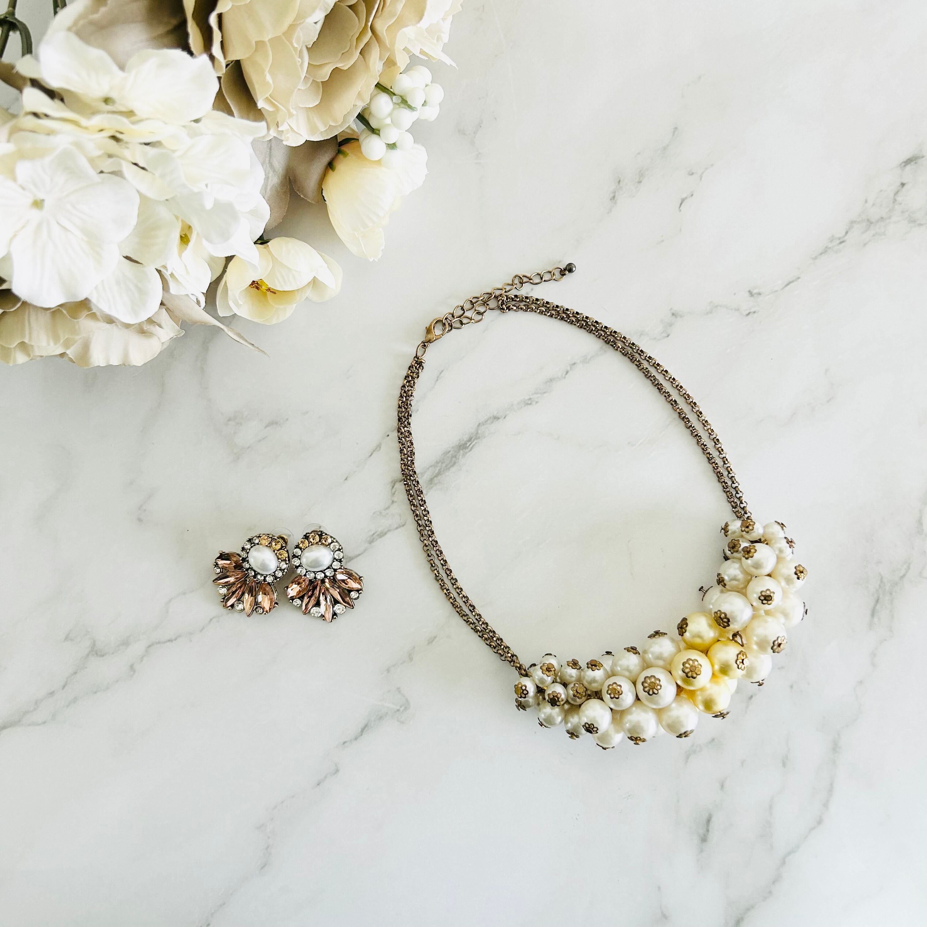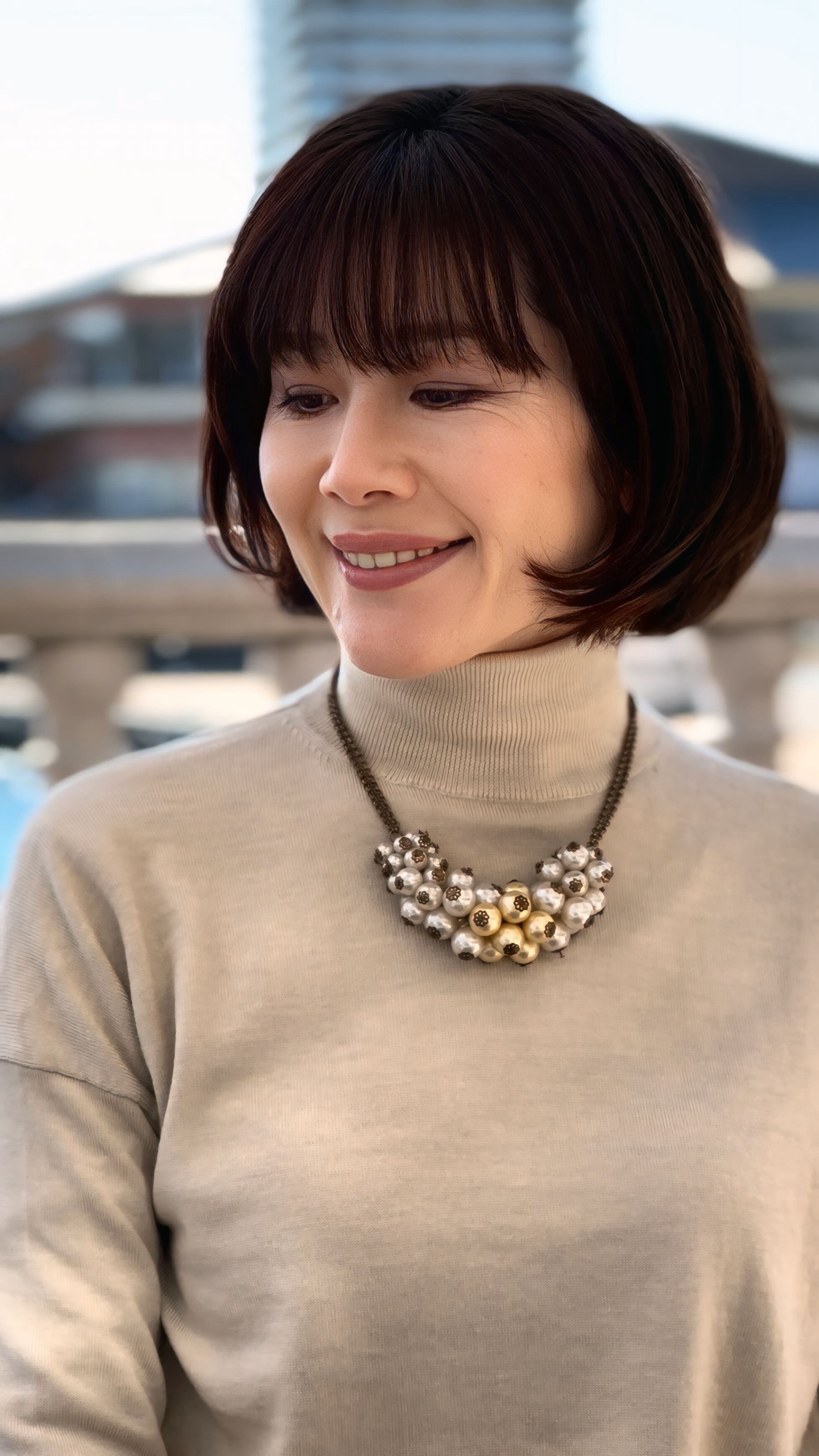 パールホワイト✖️アンティークゴールドカラーのネックレスです。