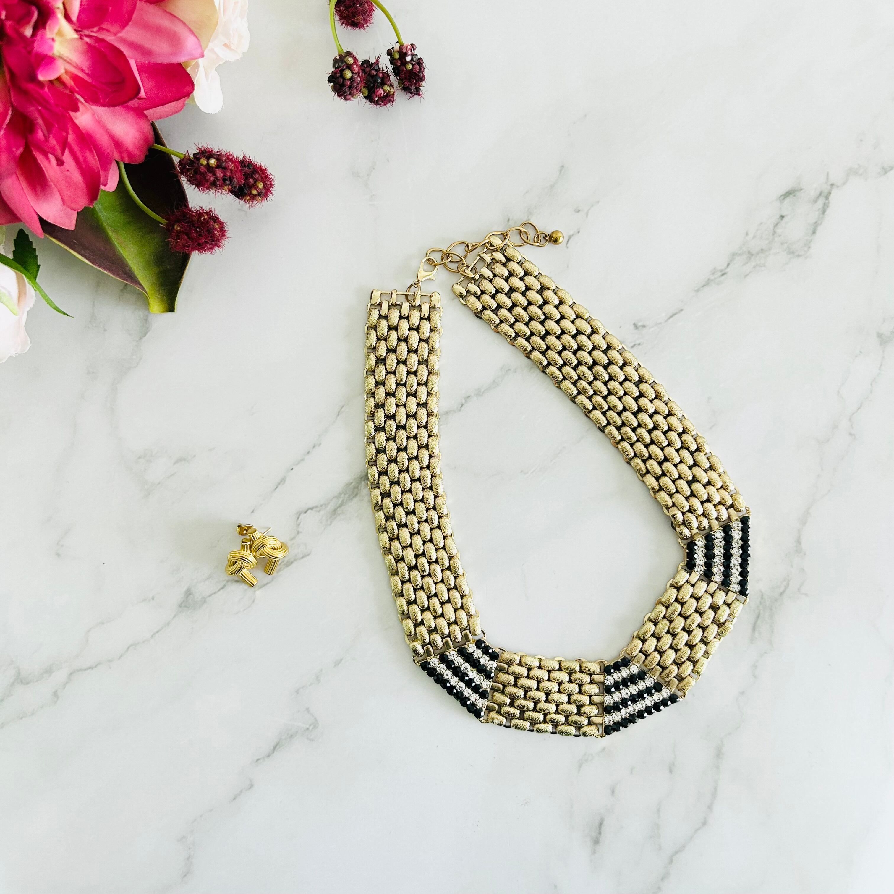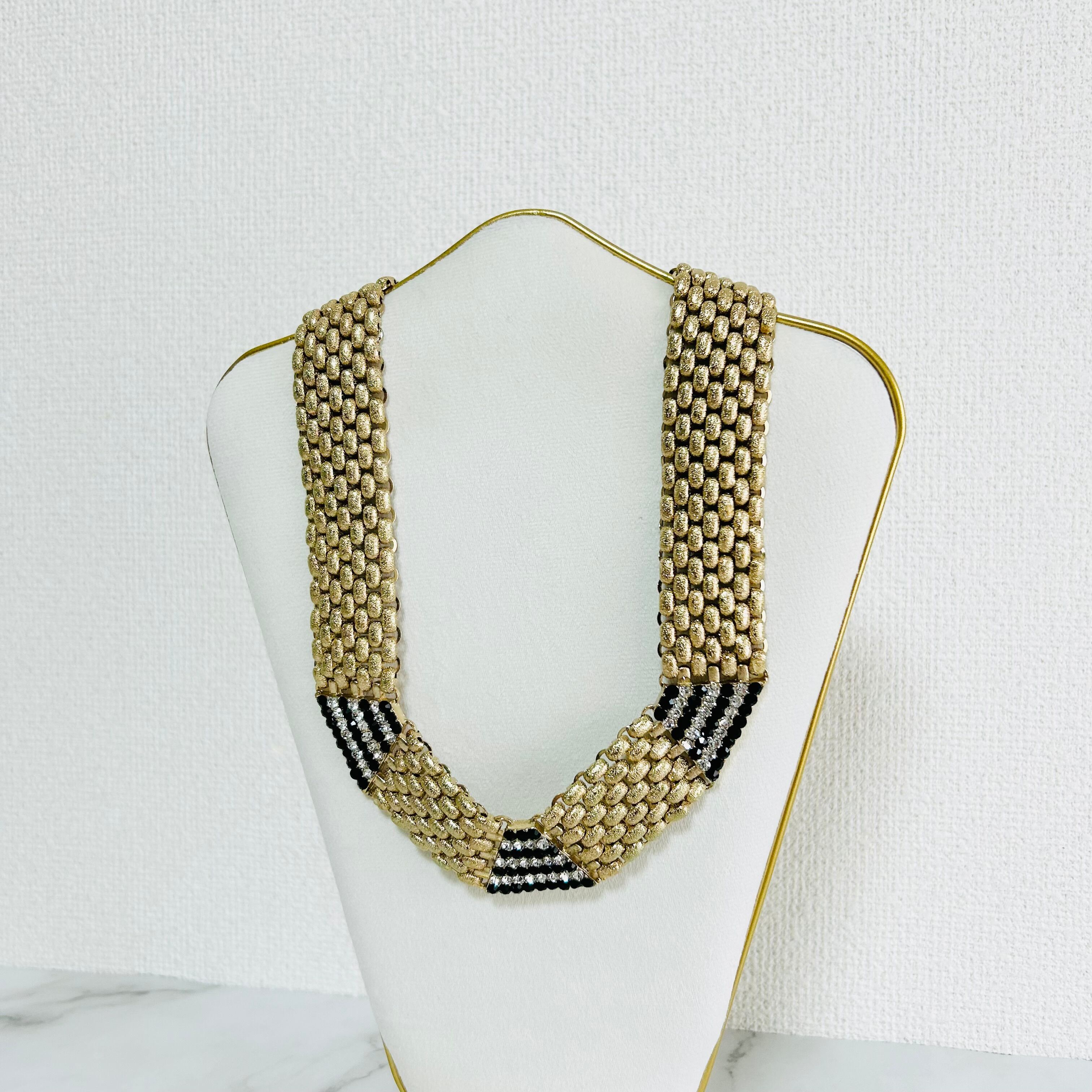 ブラック、クリスタルカラー✖️アンティークゴールドカラーのネックレスです。