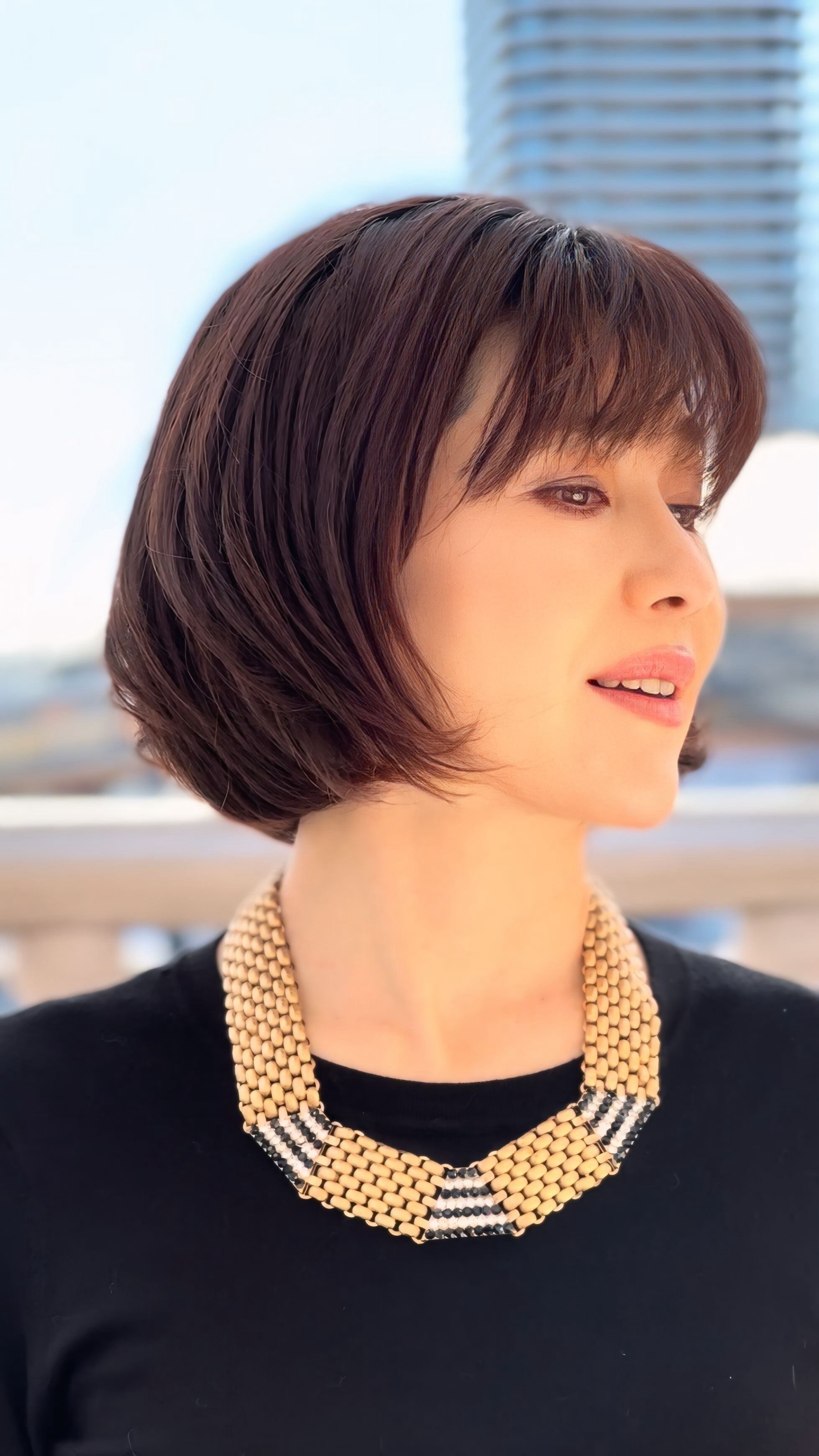 高さのない合わせやすいデザインはどんなお襟元ともマッチし、シャツやニット、ワンピースなどさまざまなアイテムで楽しんでいただけるアイテムです。