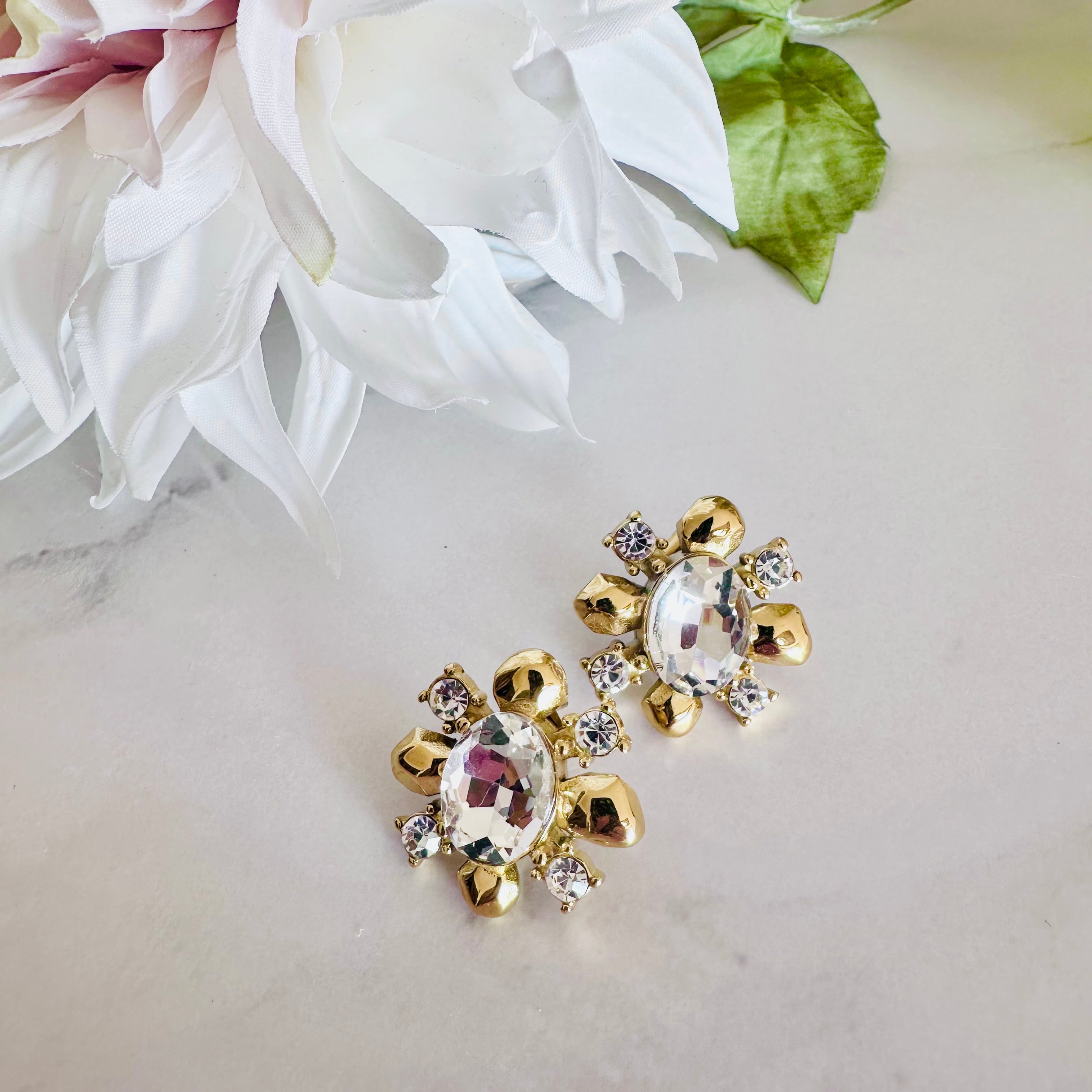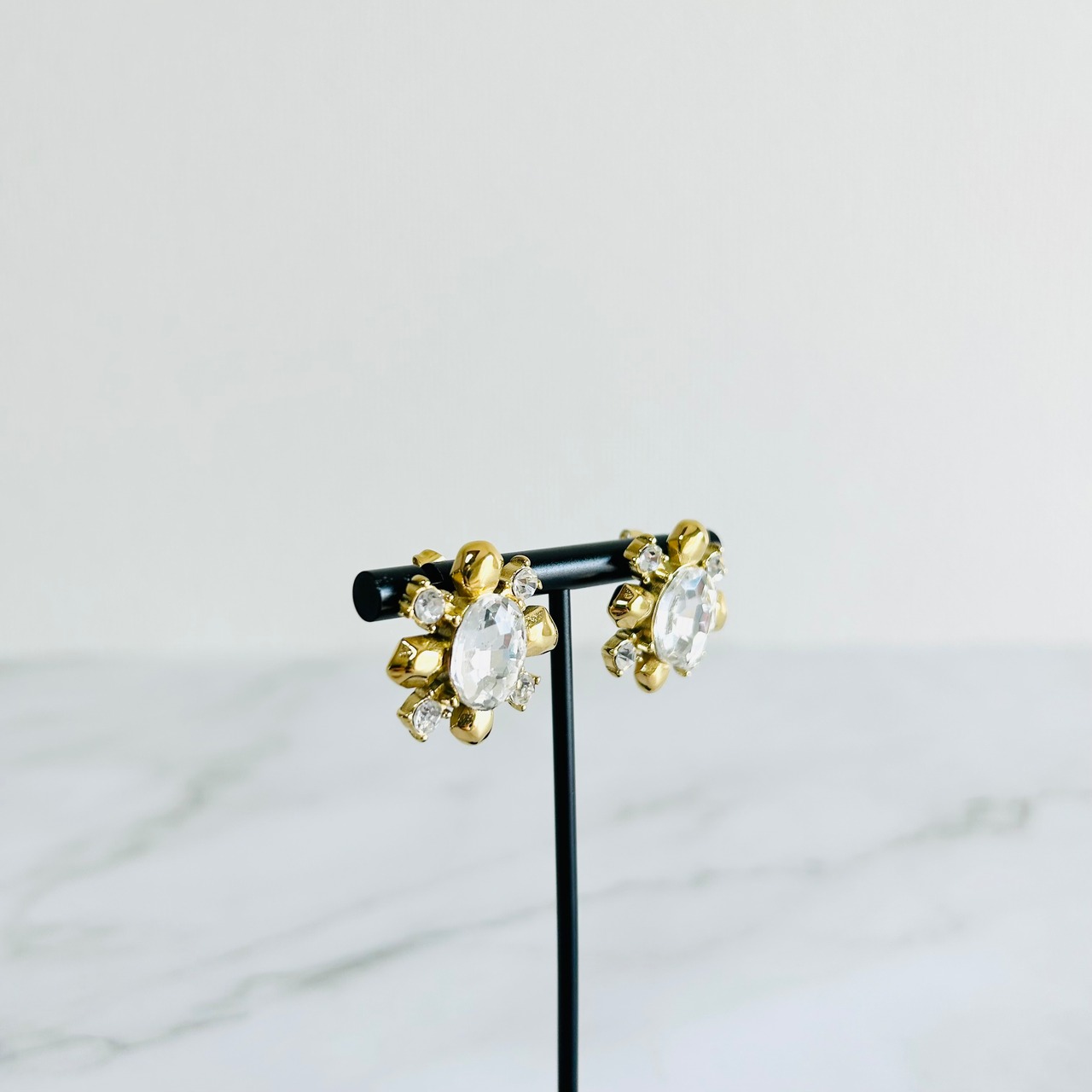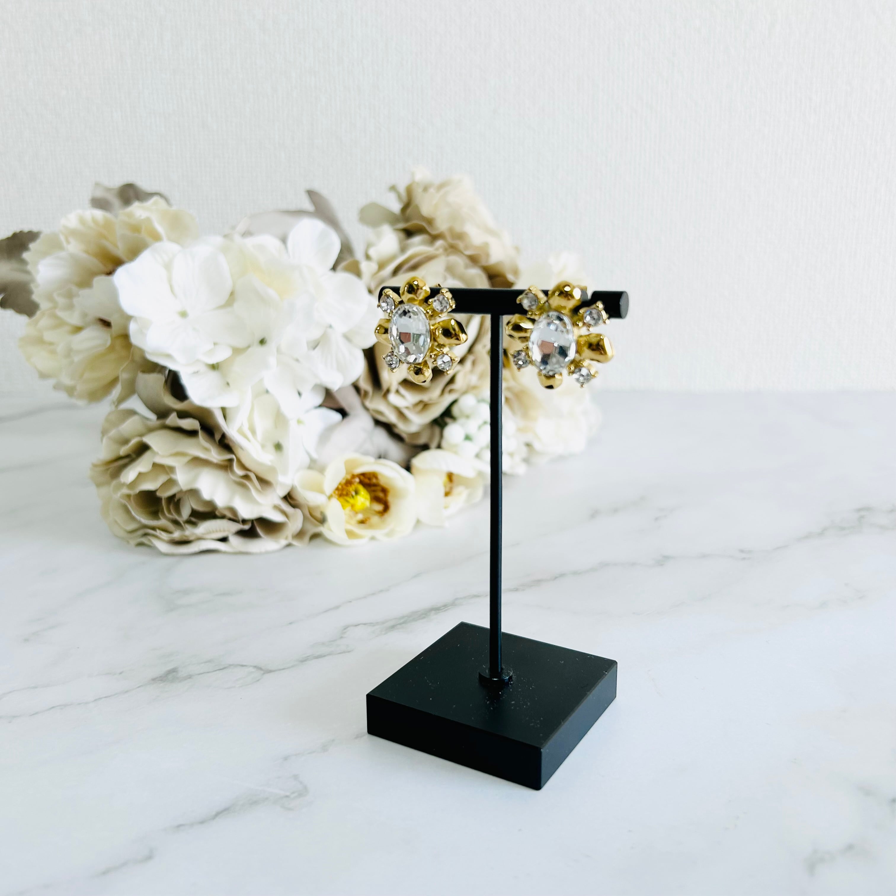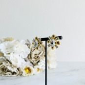 表面にカットを入れたシャイニーなキュービックジルコニアを使用し、輝くゴールドカラーと組み合わせたフラワーモチーフのデザインです。