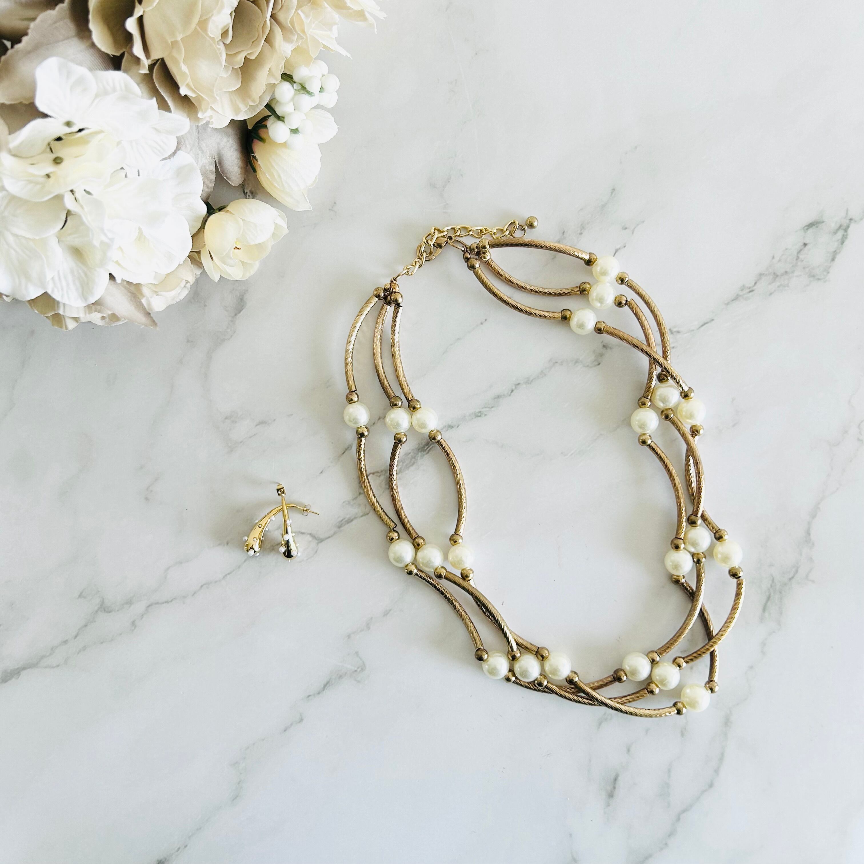 パール✖️アンティークゴールドカラーのネックレスです。