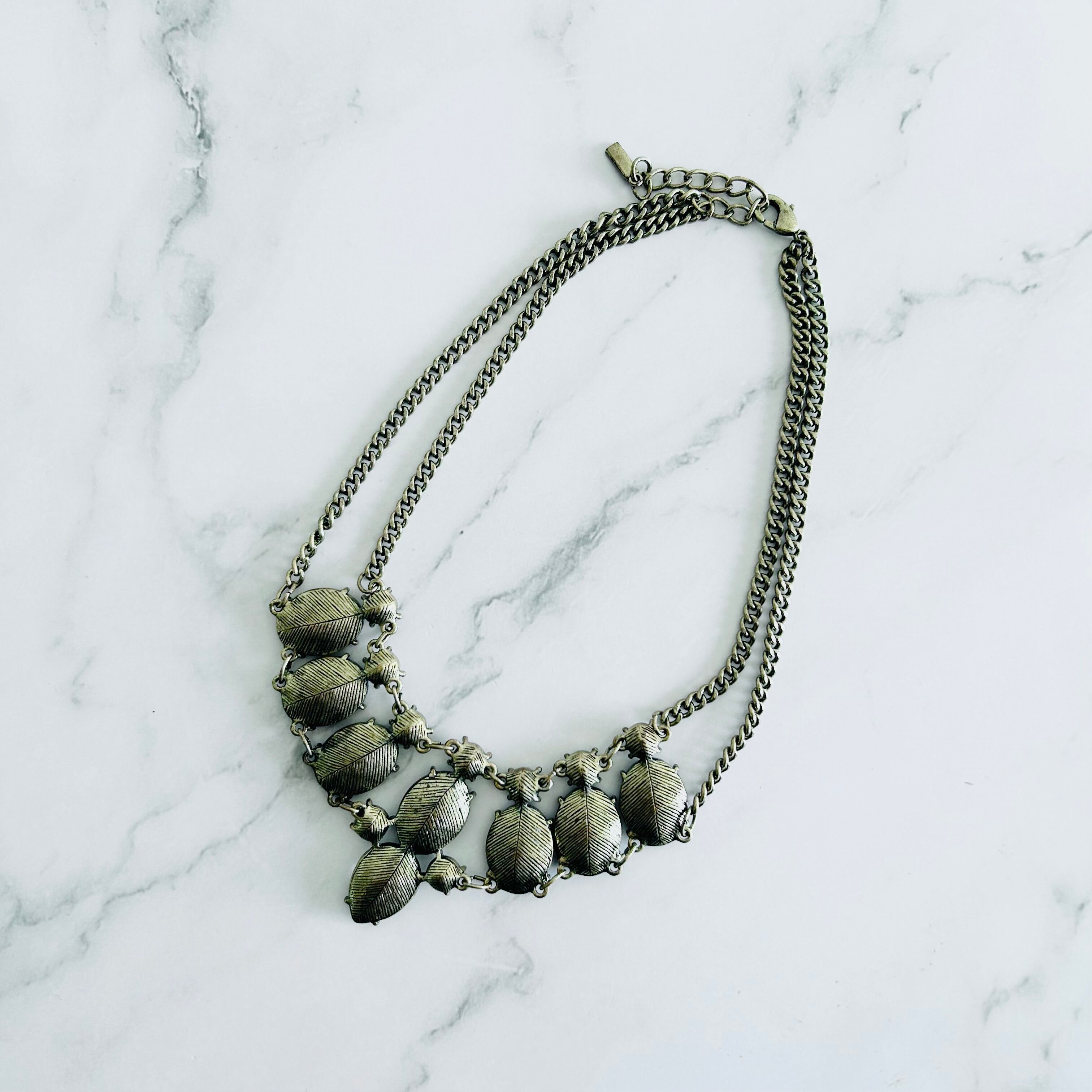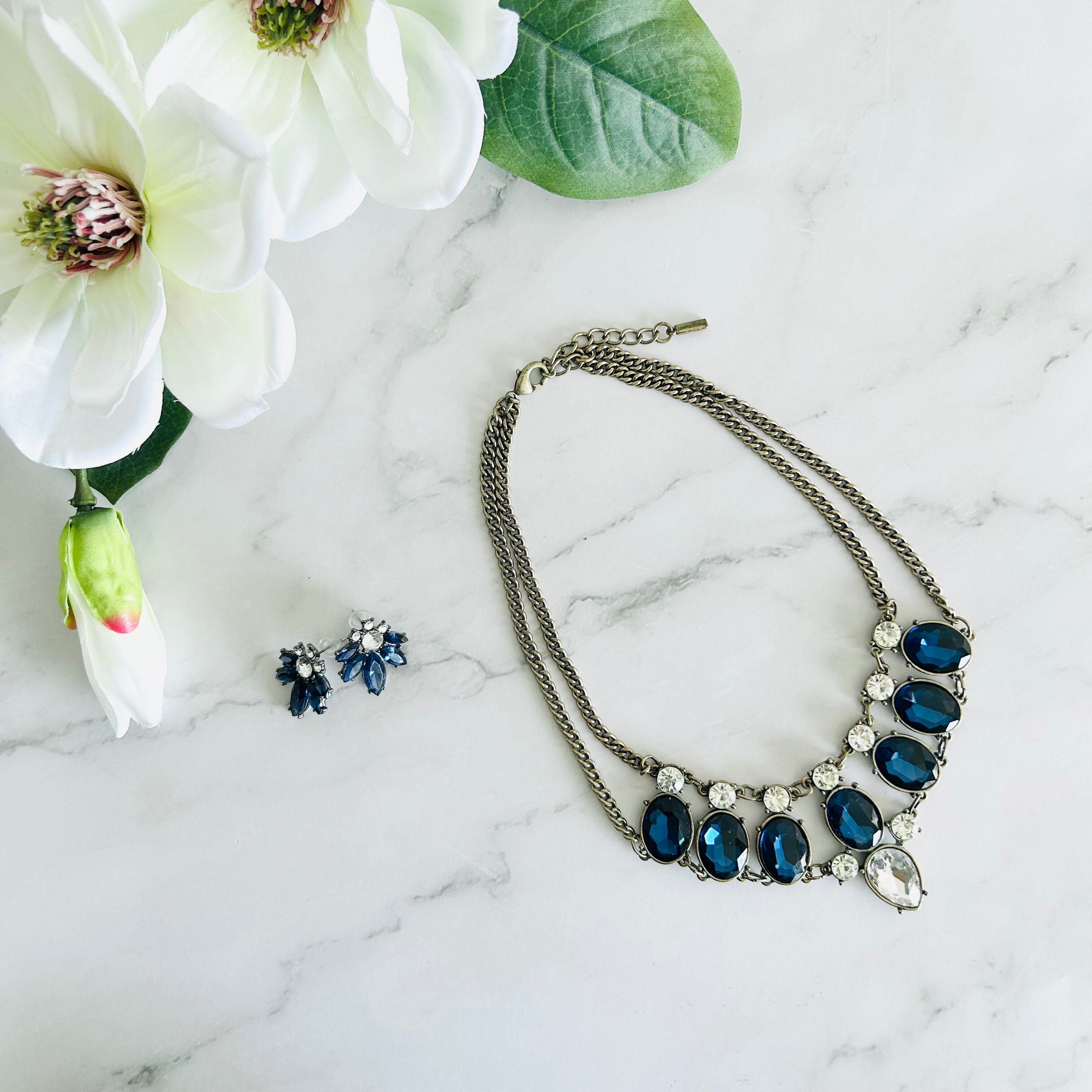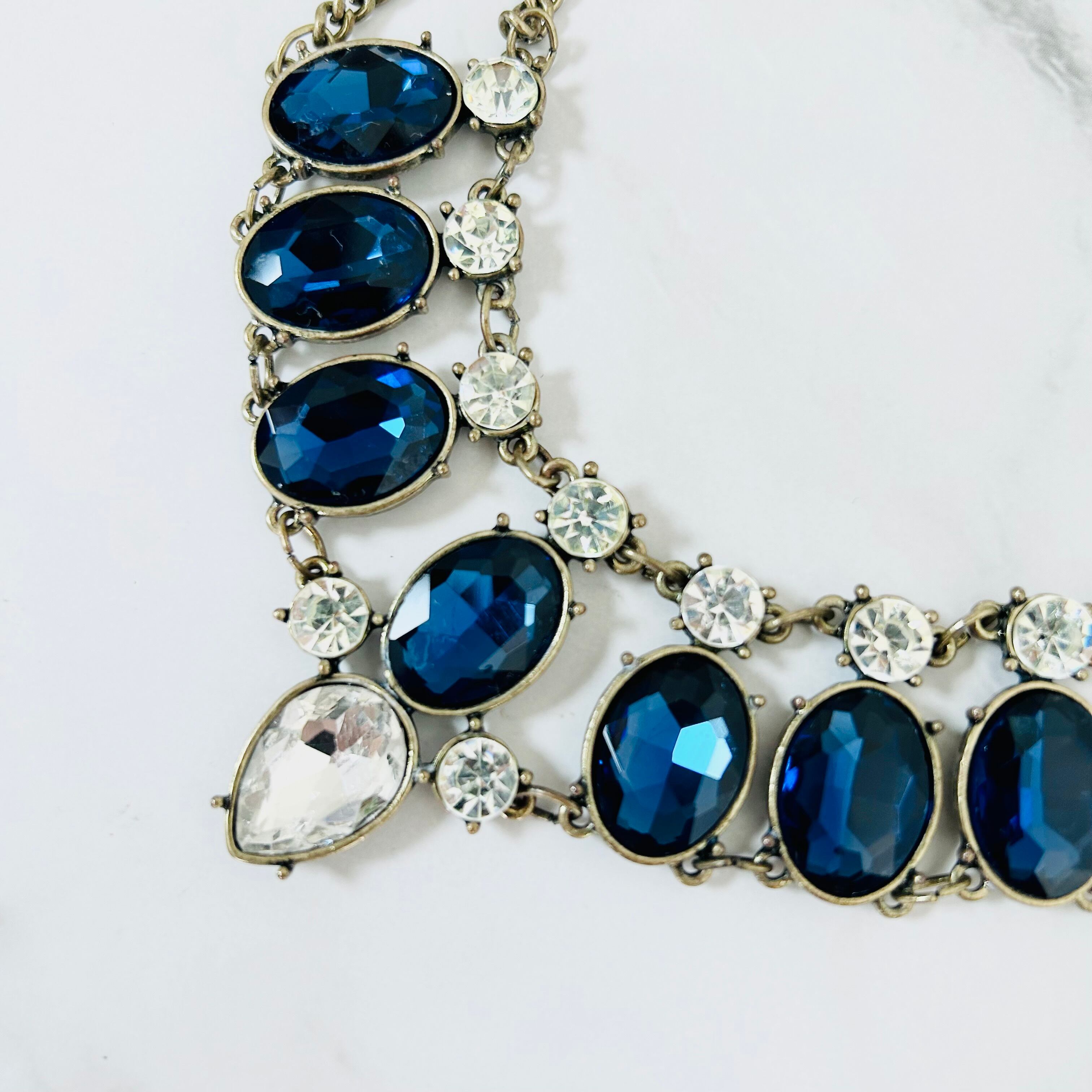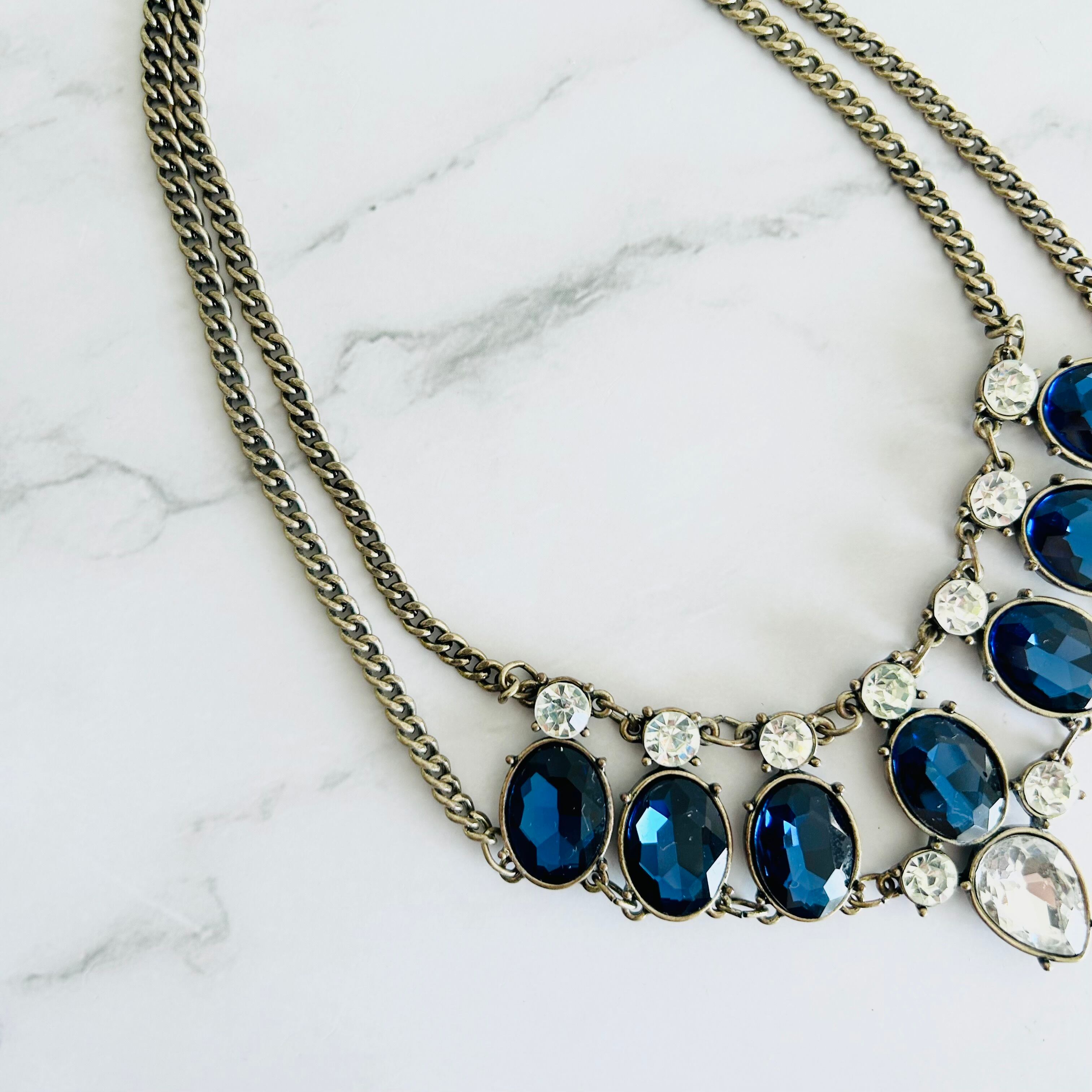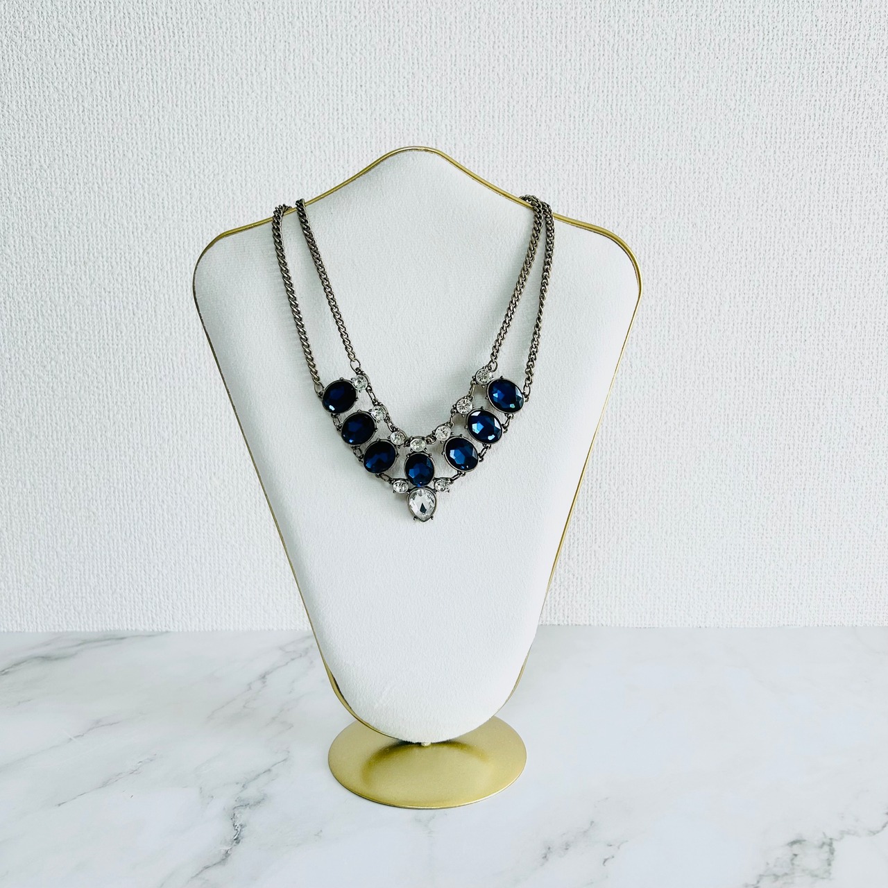 ネイビーブルー、クリスタルカラー✖️アンティークゴールドカラーのネックレスです。