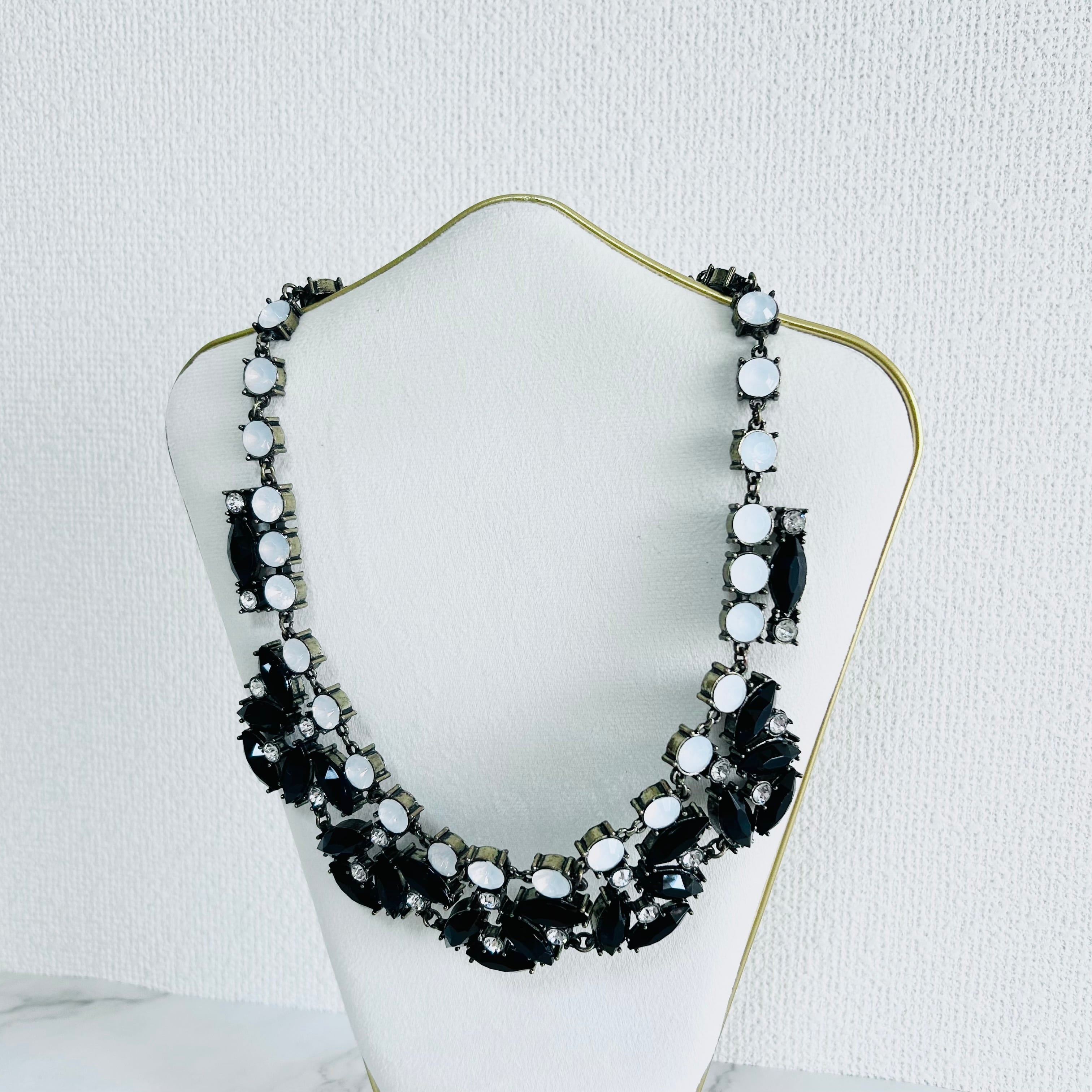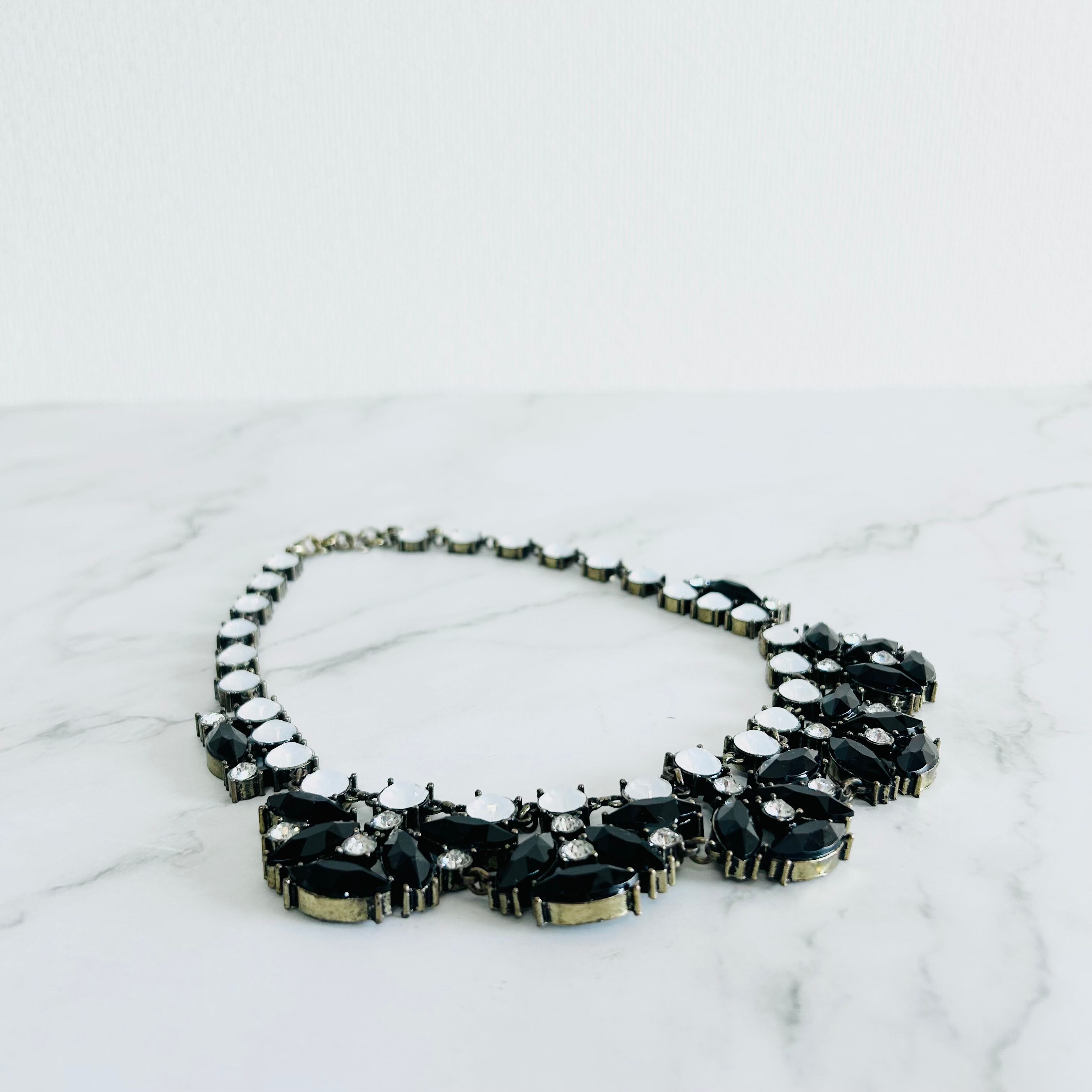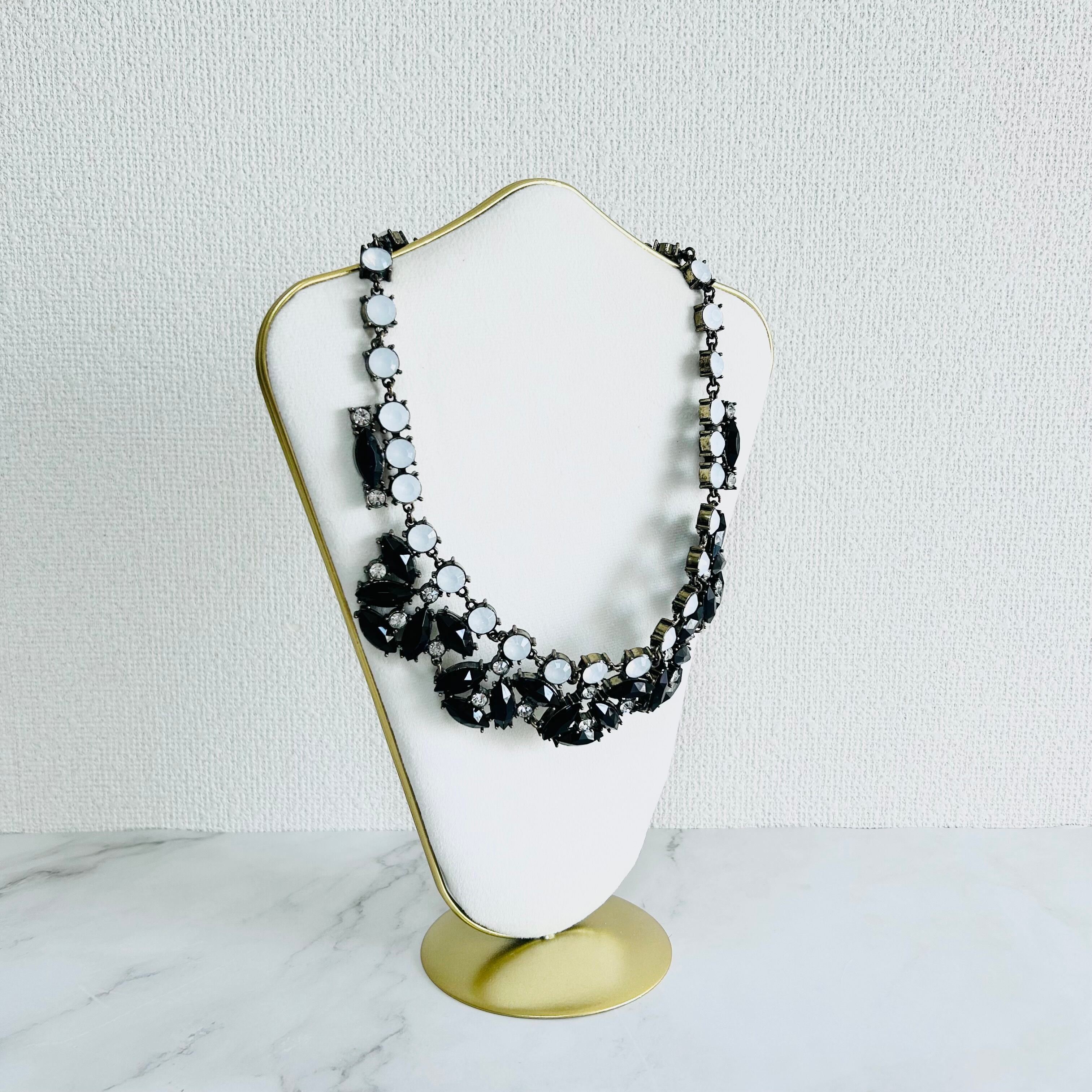 ブラック、ホワイト、クリスタル✖️アンティークゴールドカラーのネックレスです。
