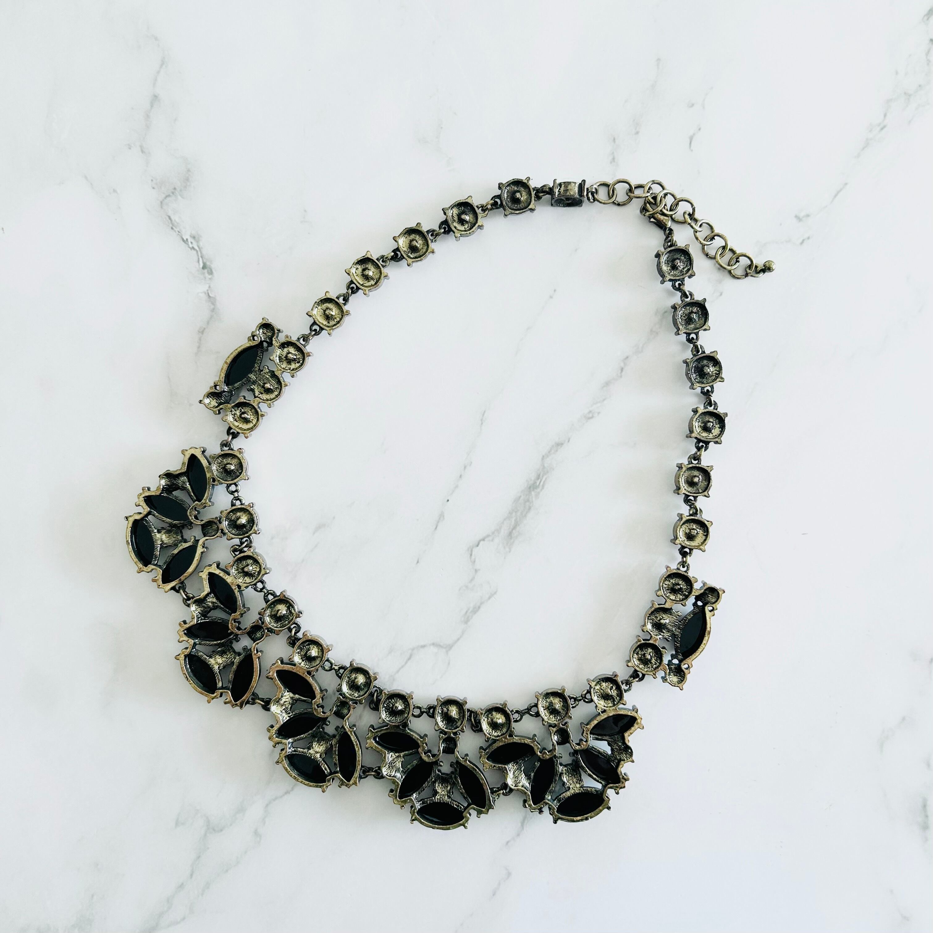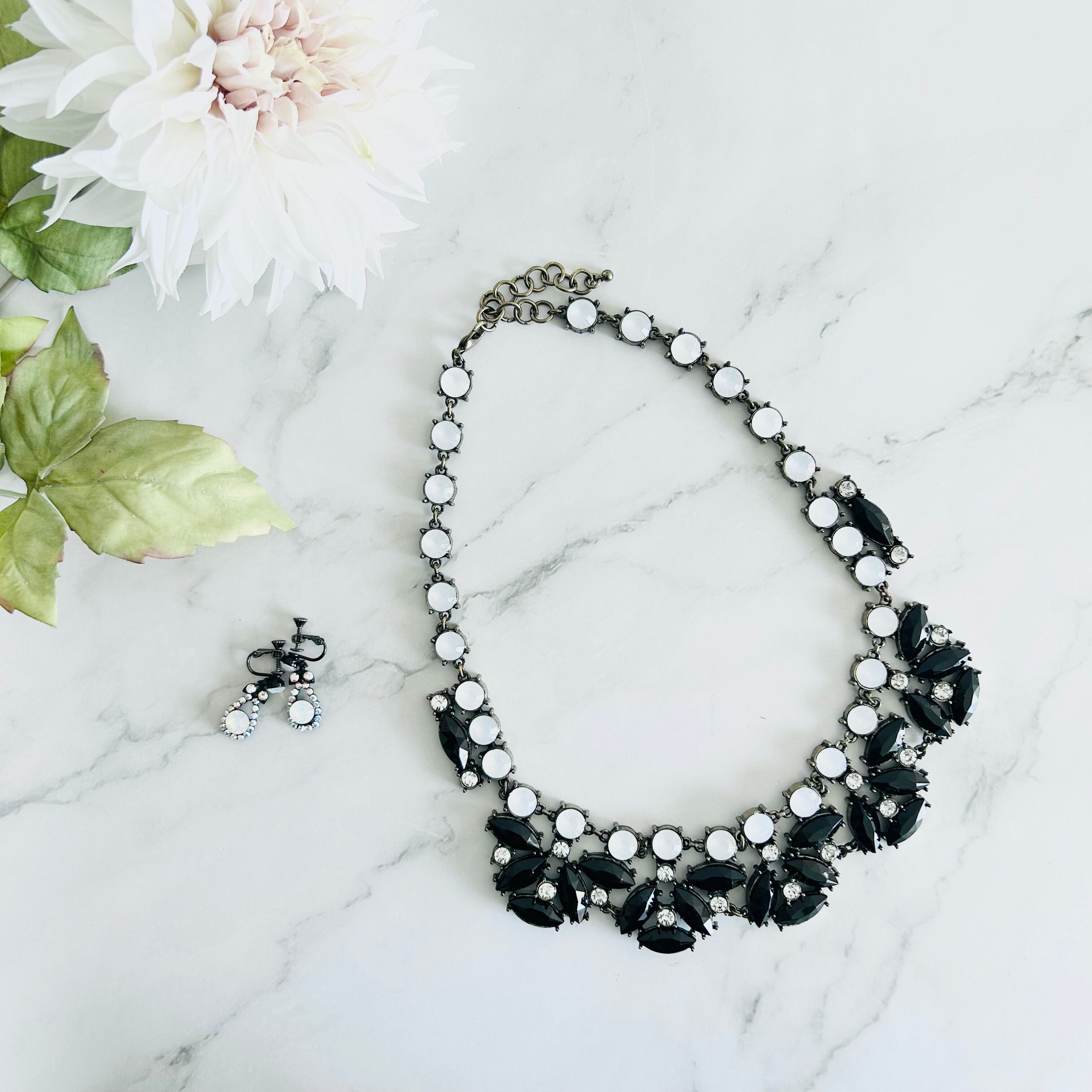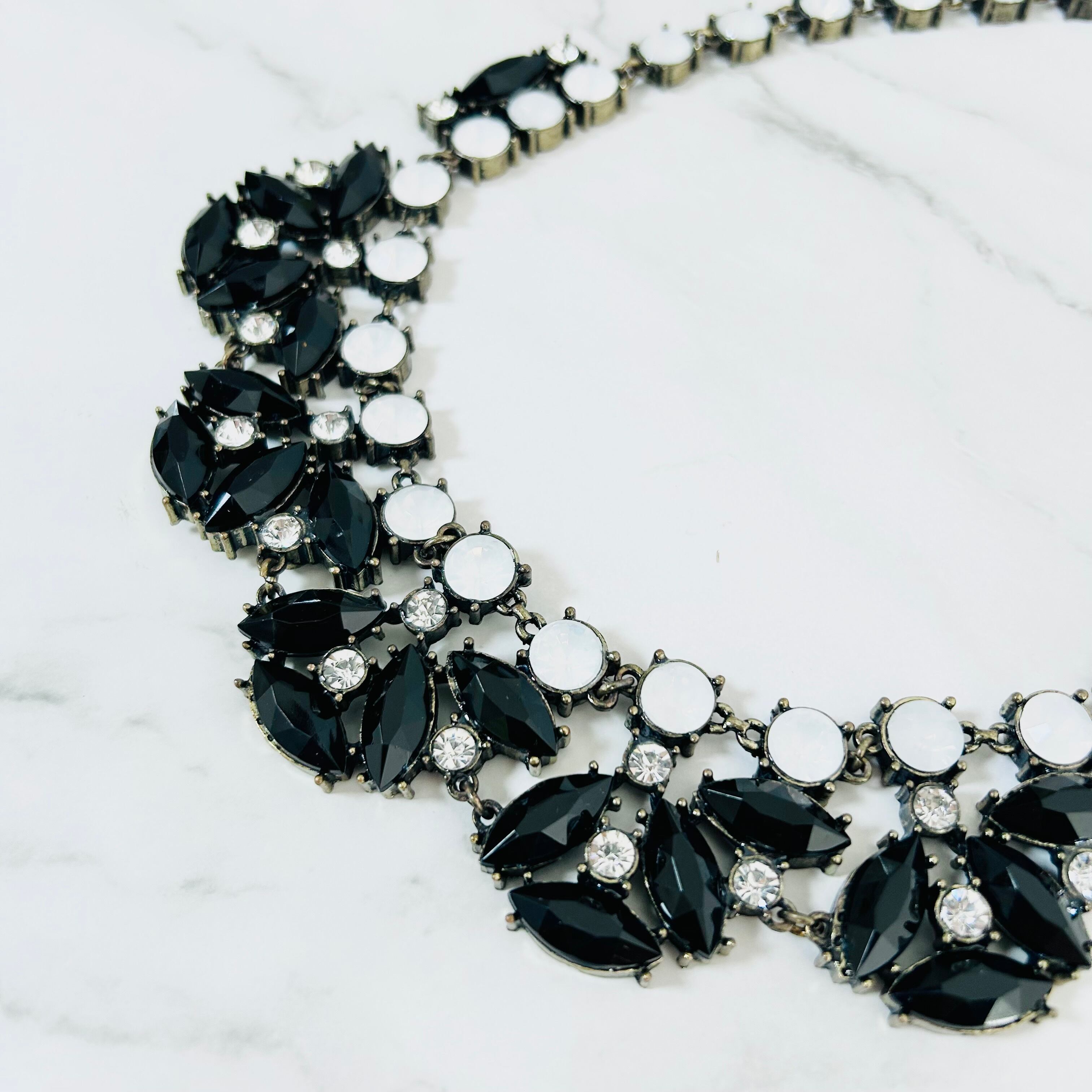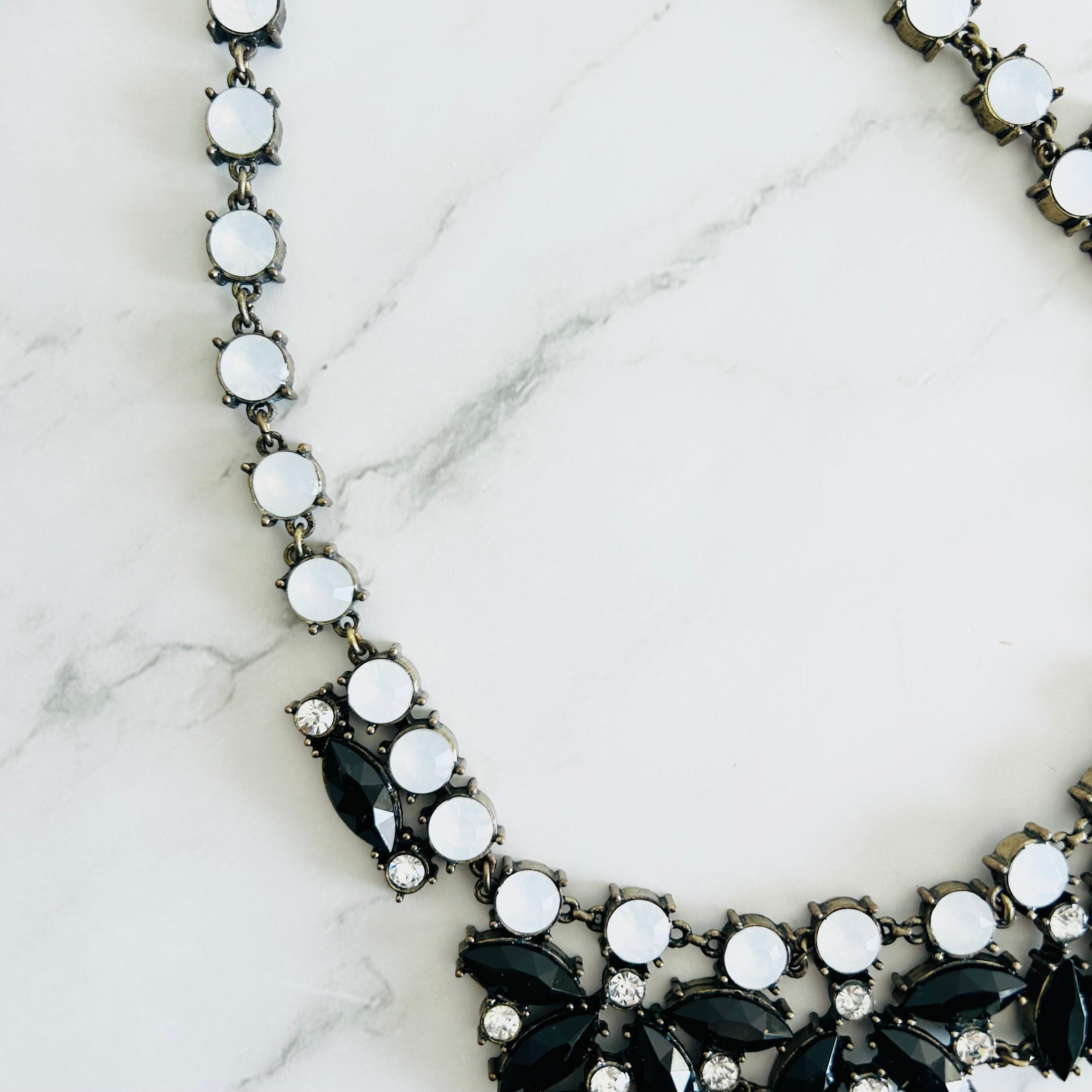 ブラック、ホワイト、クリスタル✖️アンティークゴールドカラーのネックレスです。