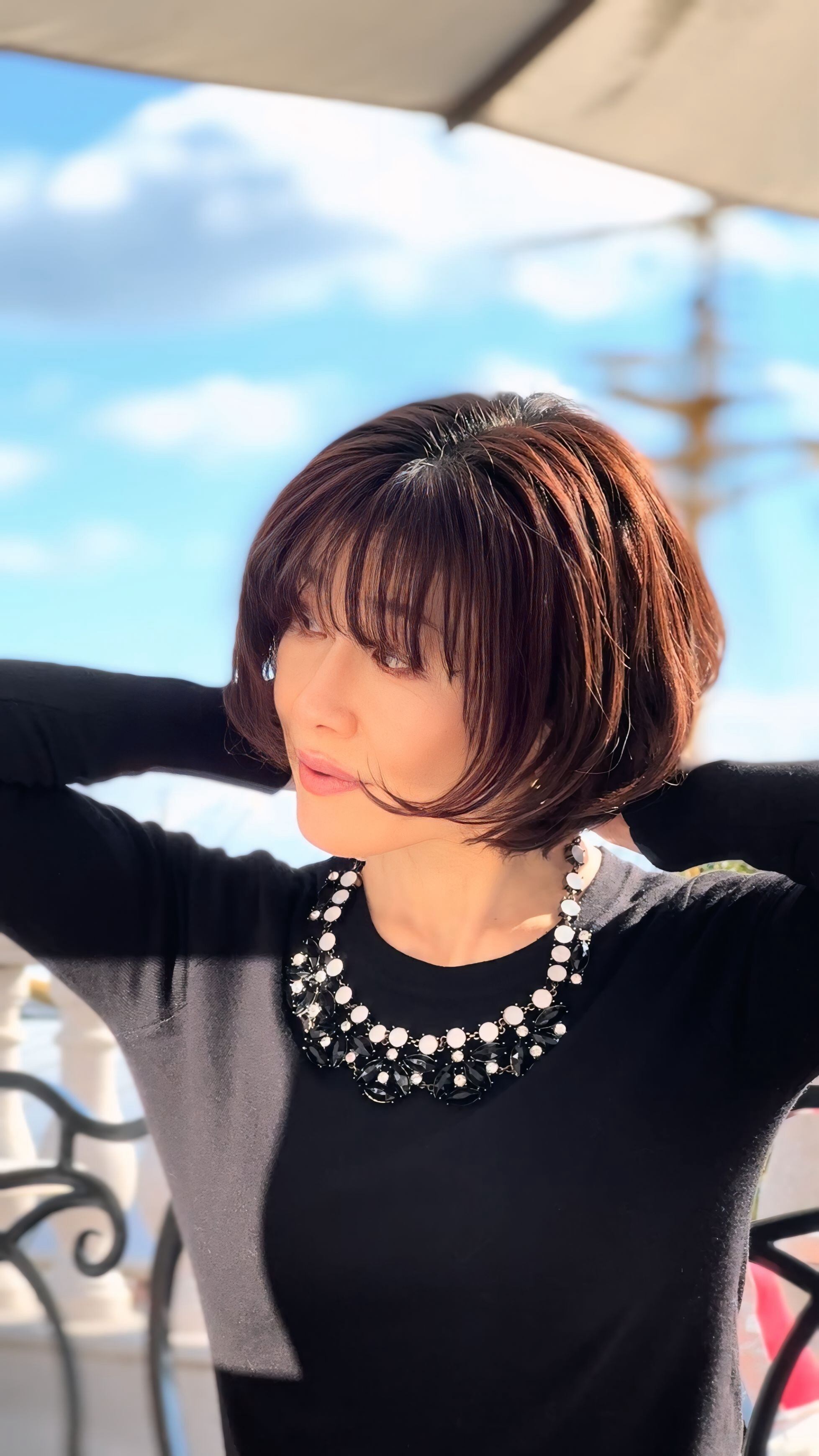 お首まわりまで彩るホワイトビジューはお顔まわりを一気に華やかに映し、目を惹くボリューム感でいつものスタイリングをグッとクラスアップしてくれます☆