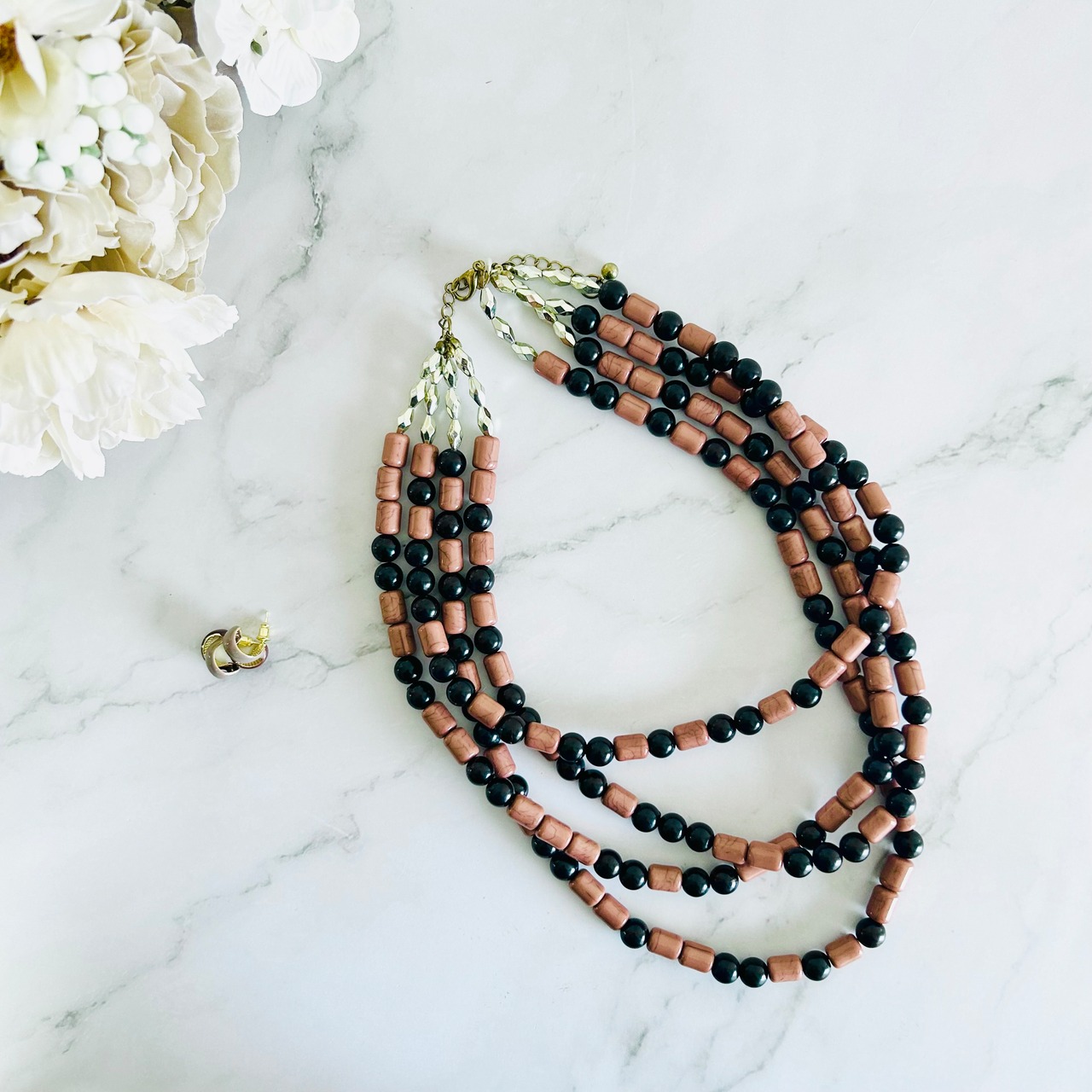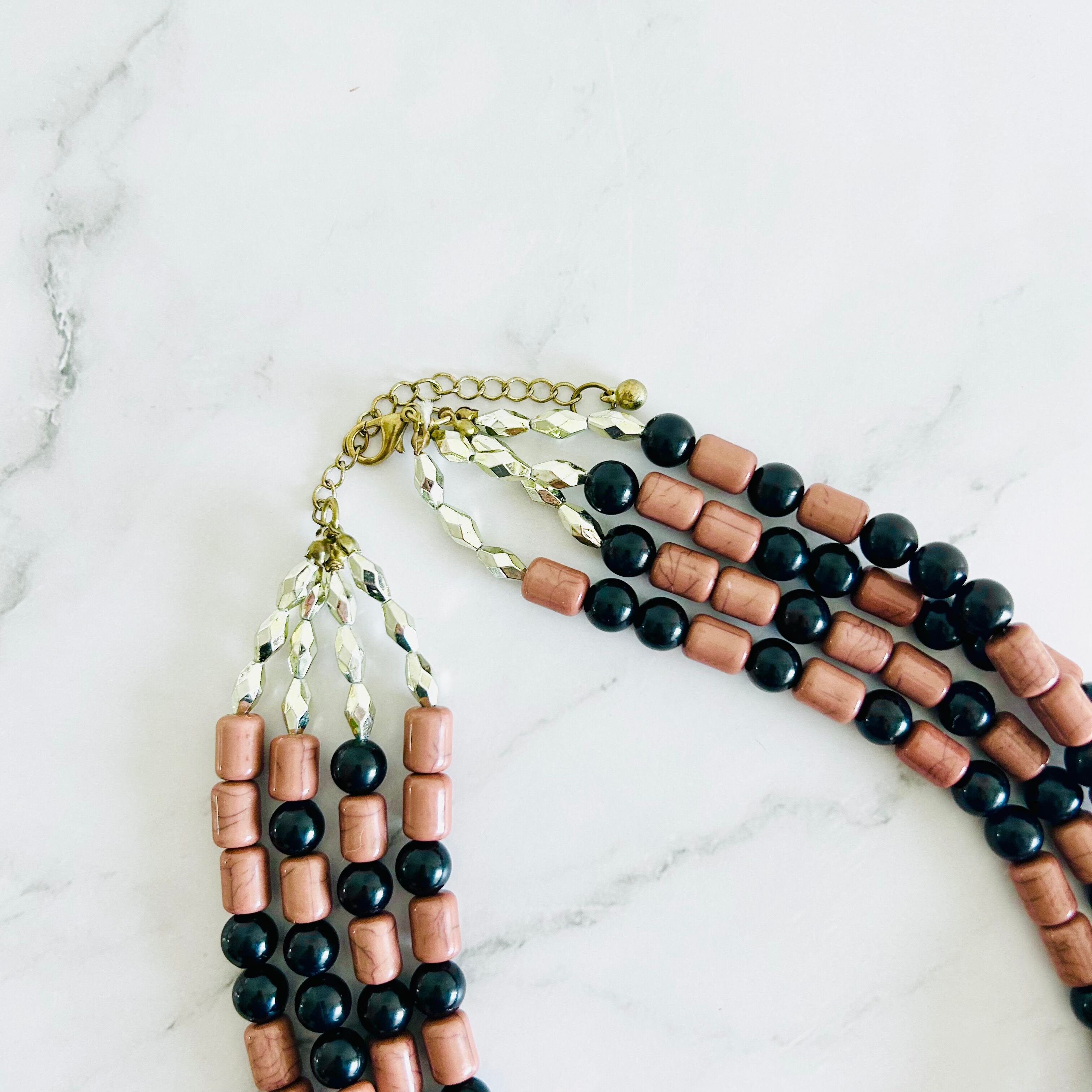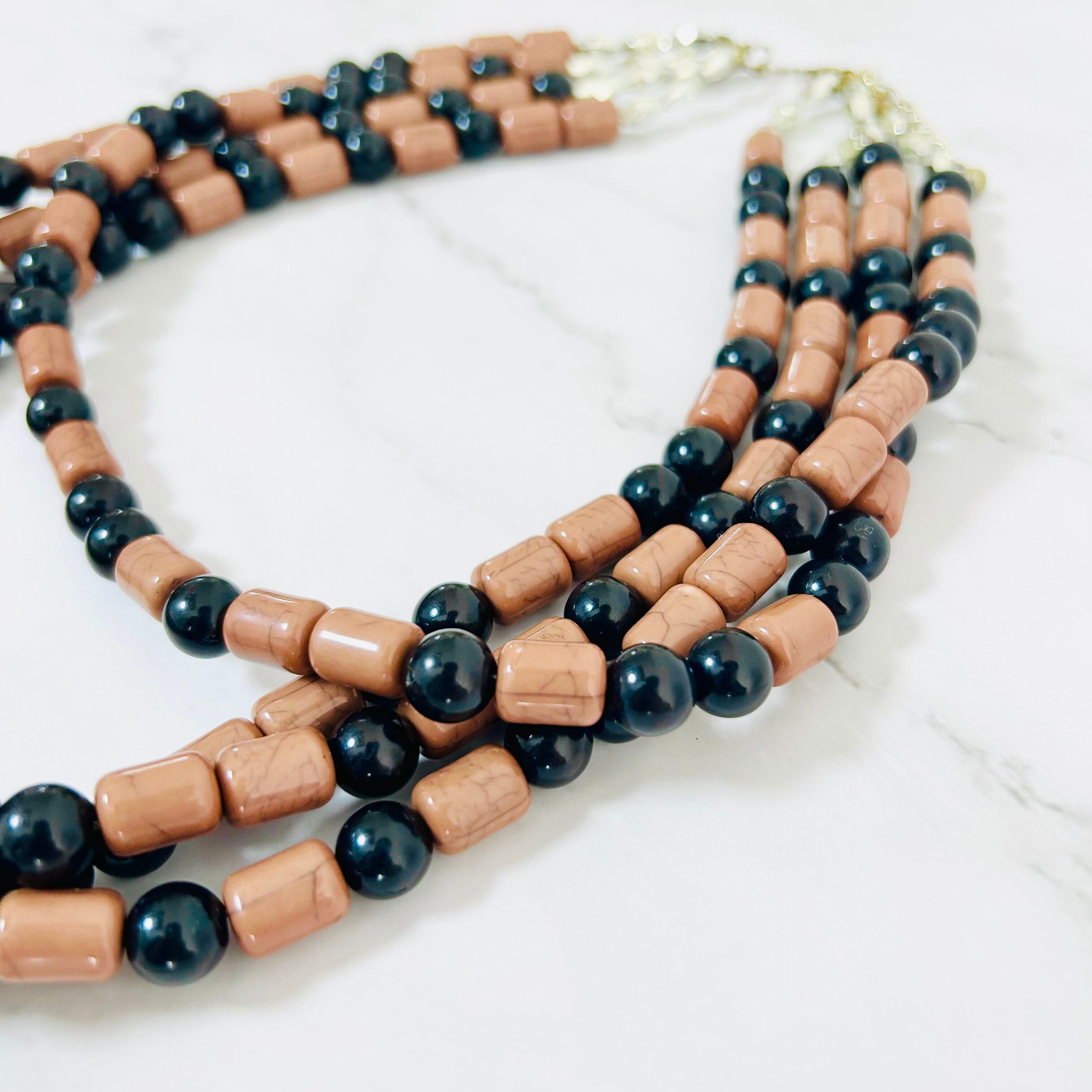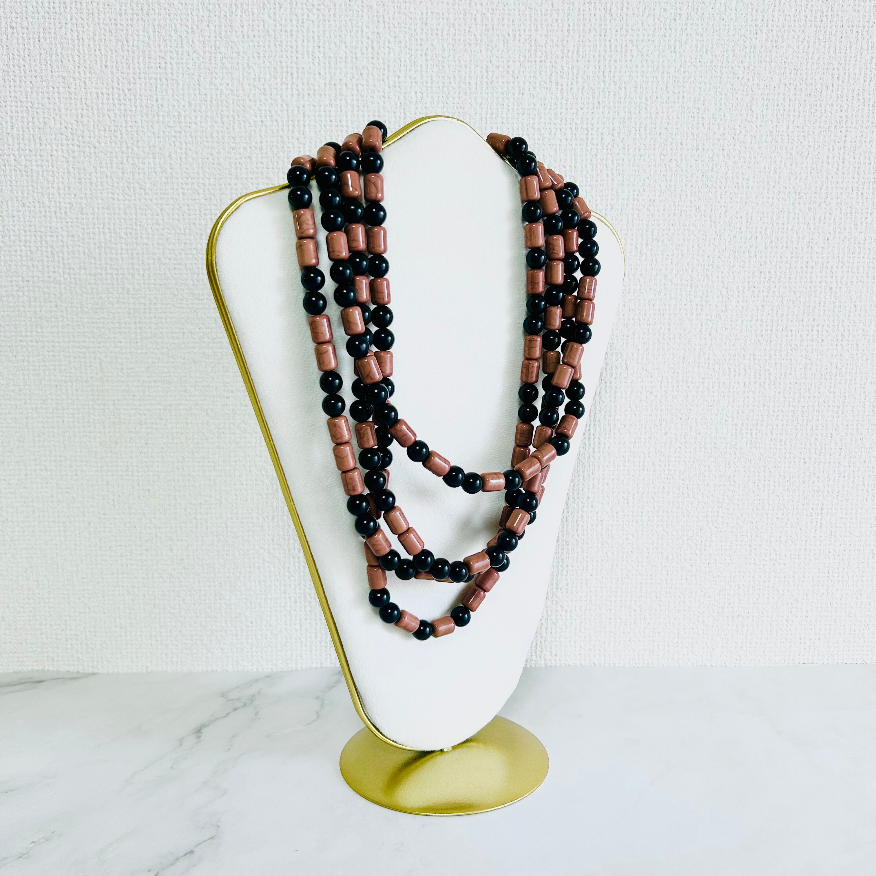ピンクブラウン、ブラック、ゴールドカラー✖️アンティークゴールドカラーのネックレスです。