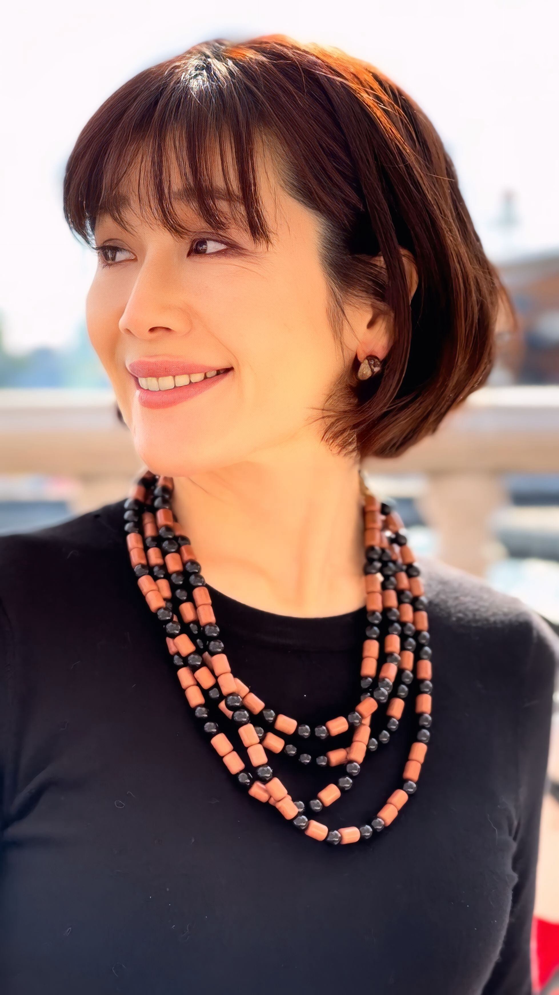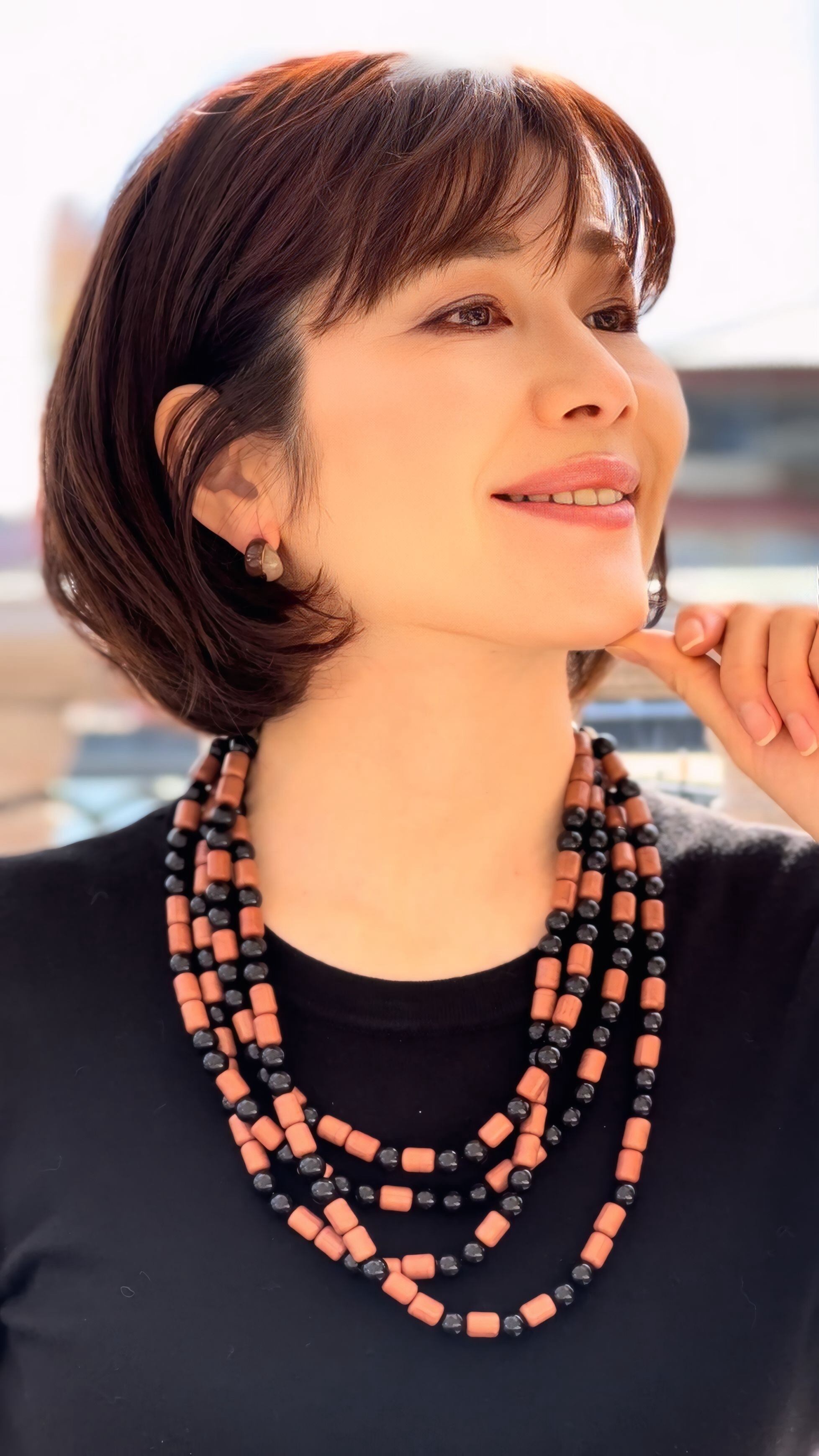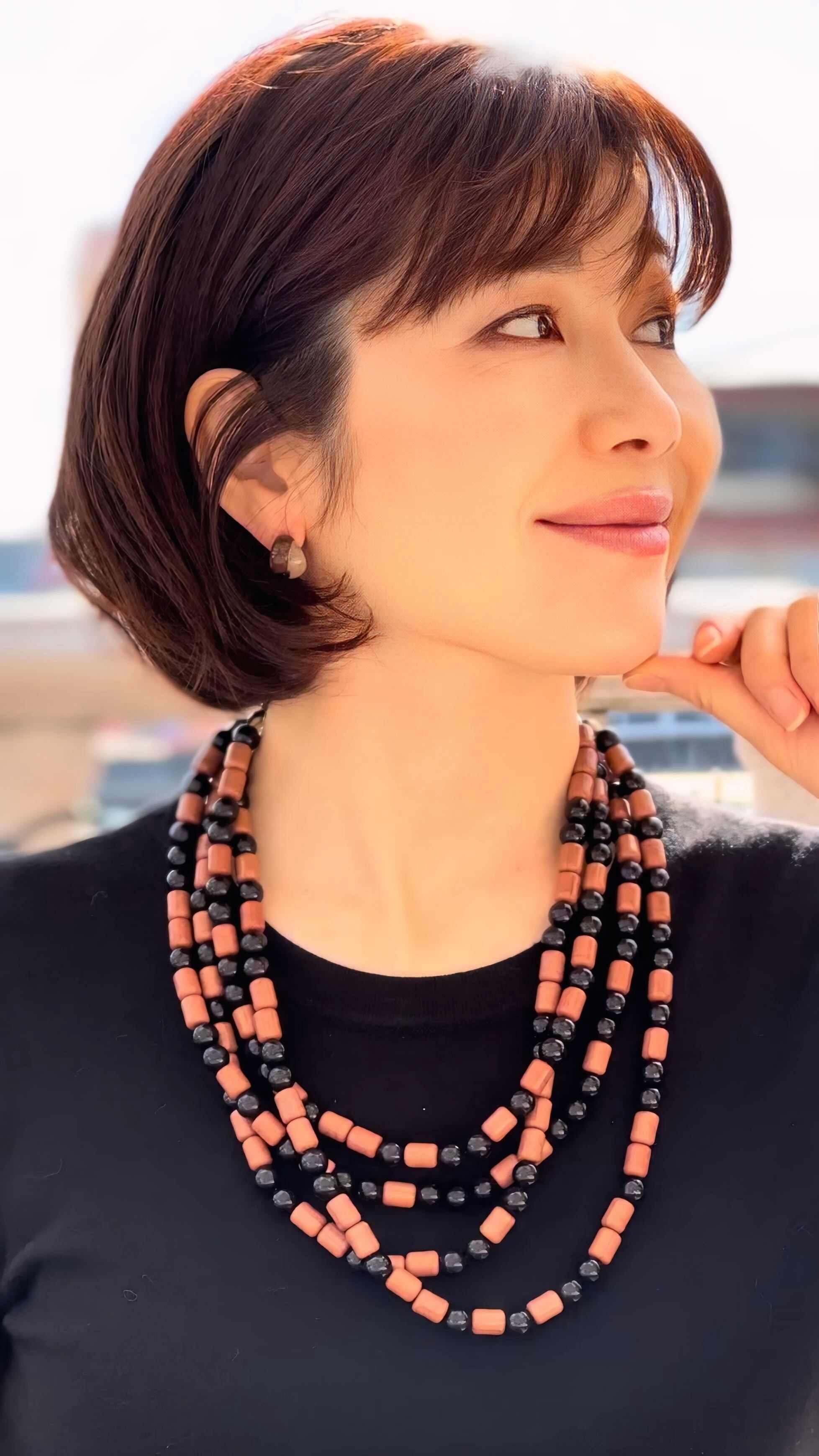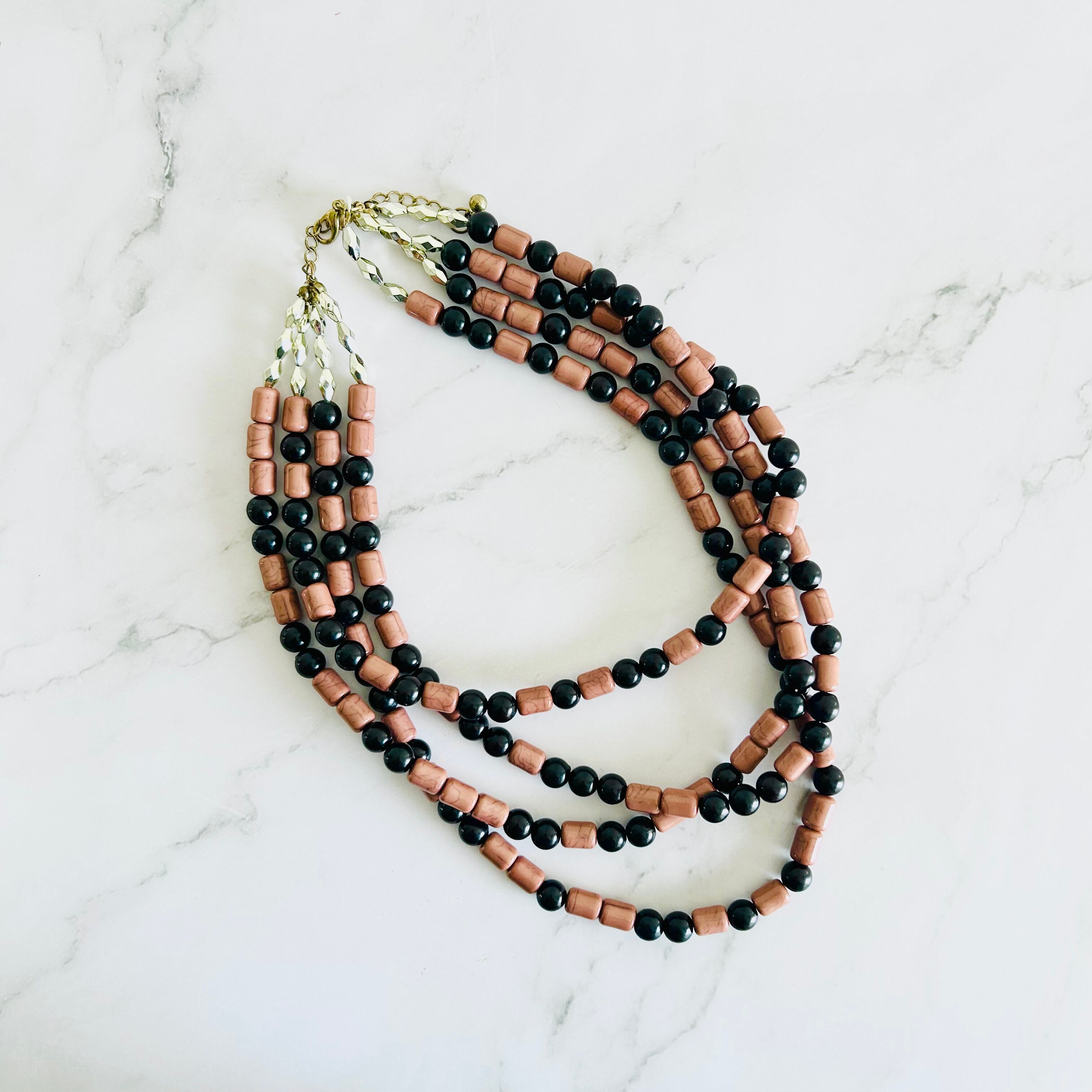 ピンクブラウン、ブラック、ゴールドカラー✖️アンティークゴールドカラーのネックレスです。