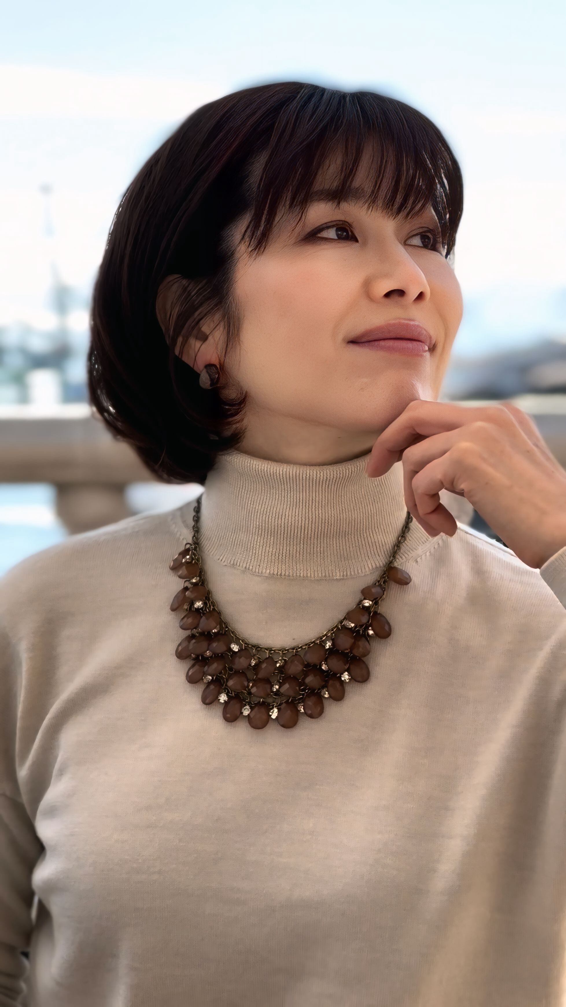 コート下につけても目を惹く華やぎは、着けるシーンを選ばずカジュアルから特別な日の装いまで、いつものコーディネートに上品で華やかなアクセントをプラスします♪