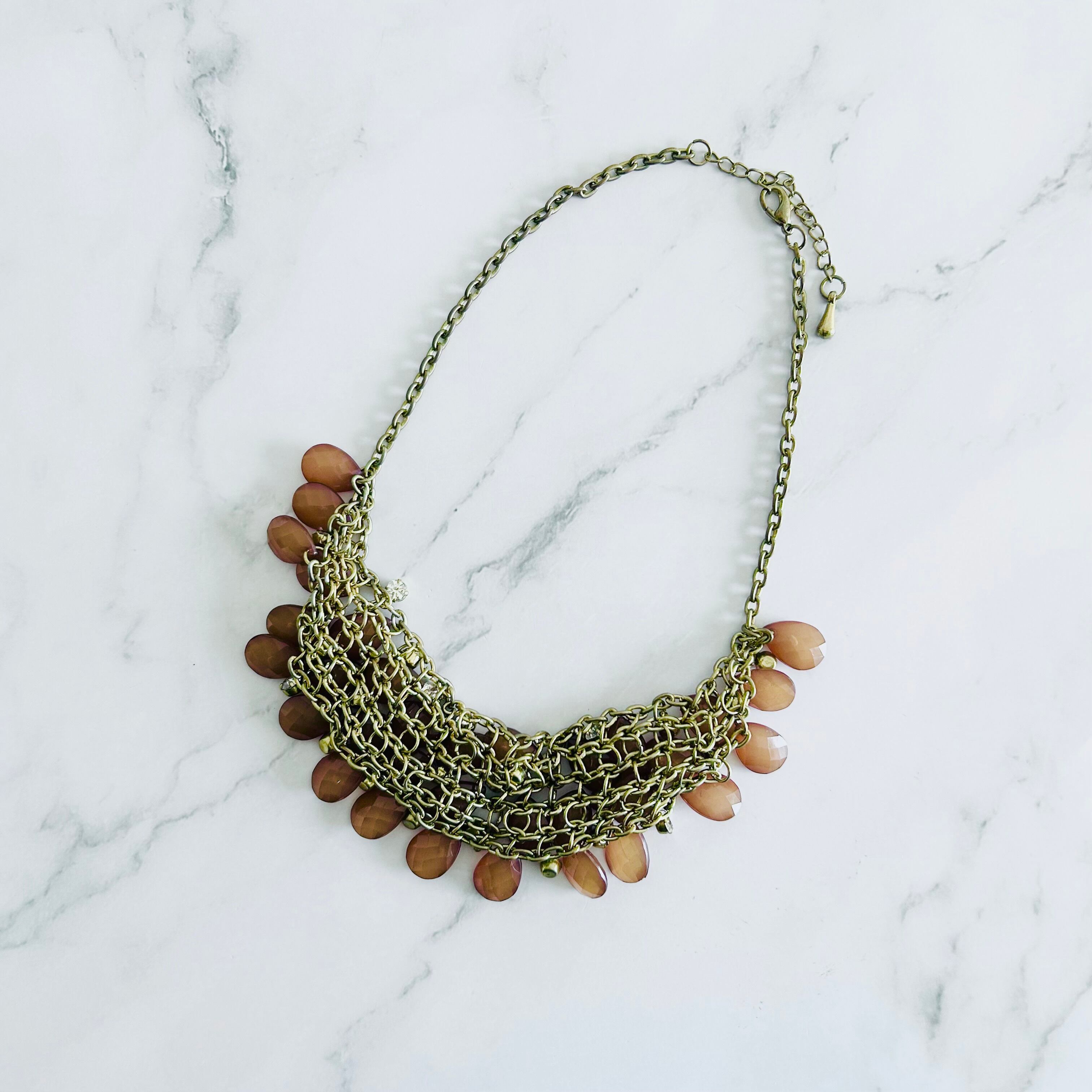 クリアキャメル、クリスタル✖️アンティークゴールドカラーのネックレスです。