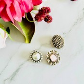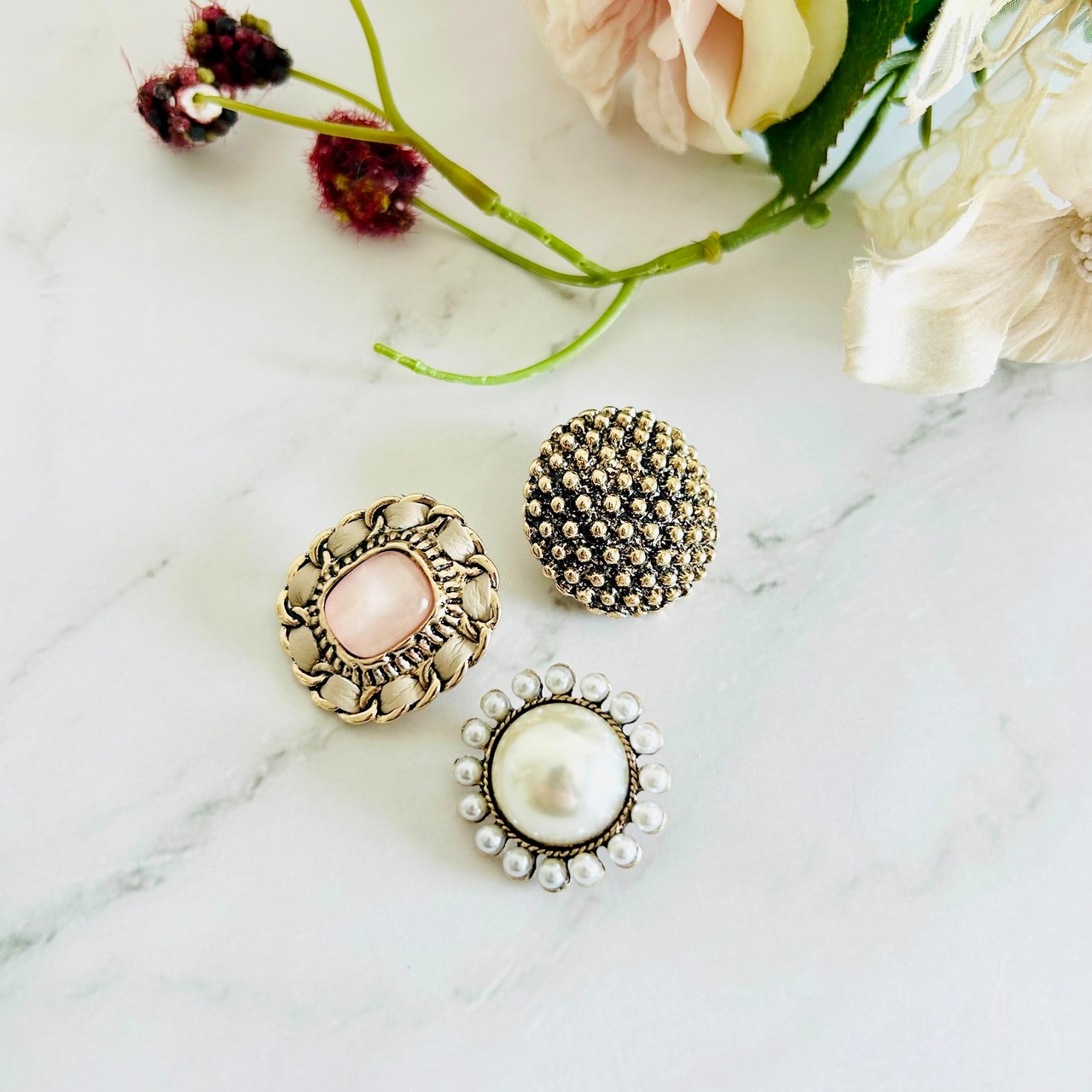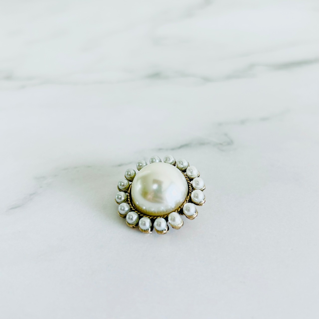 パール、ピンクベージュ、アンティークゴールドカラーのピンブローチ3点セットです