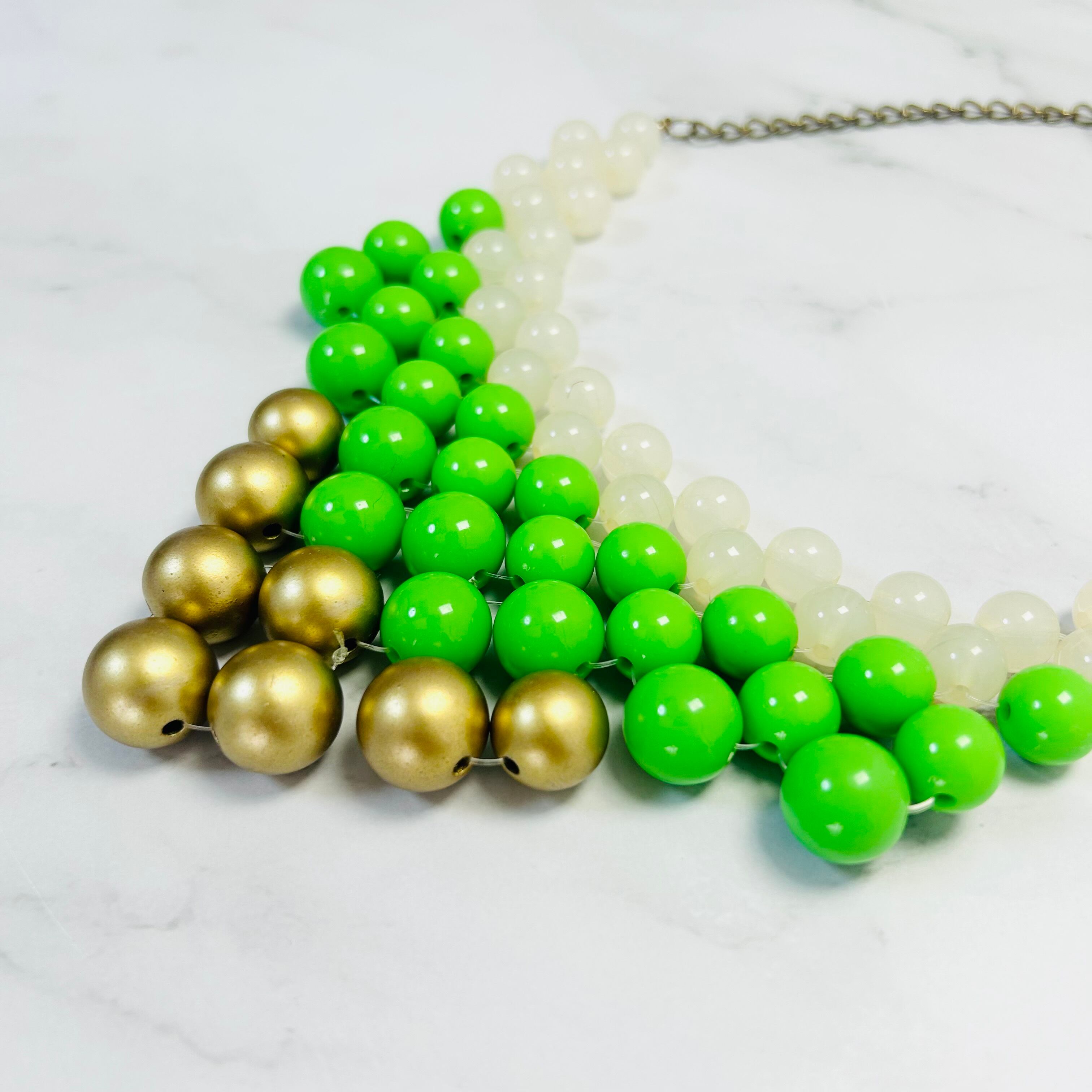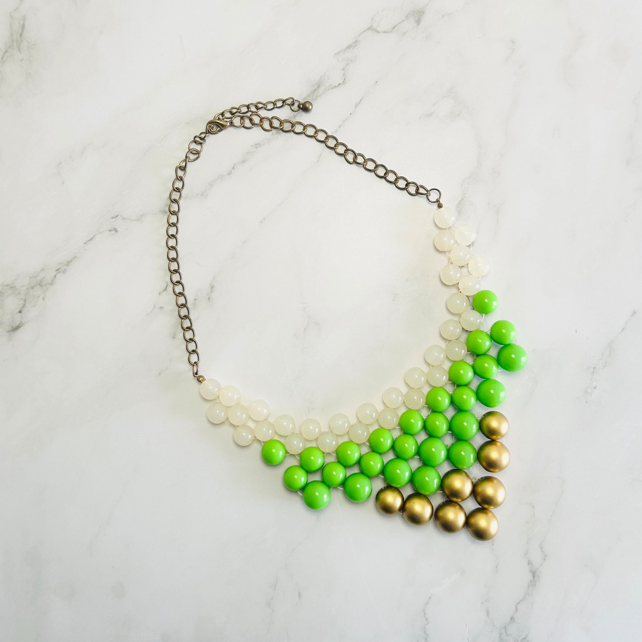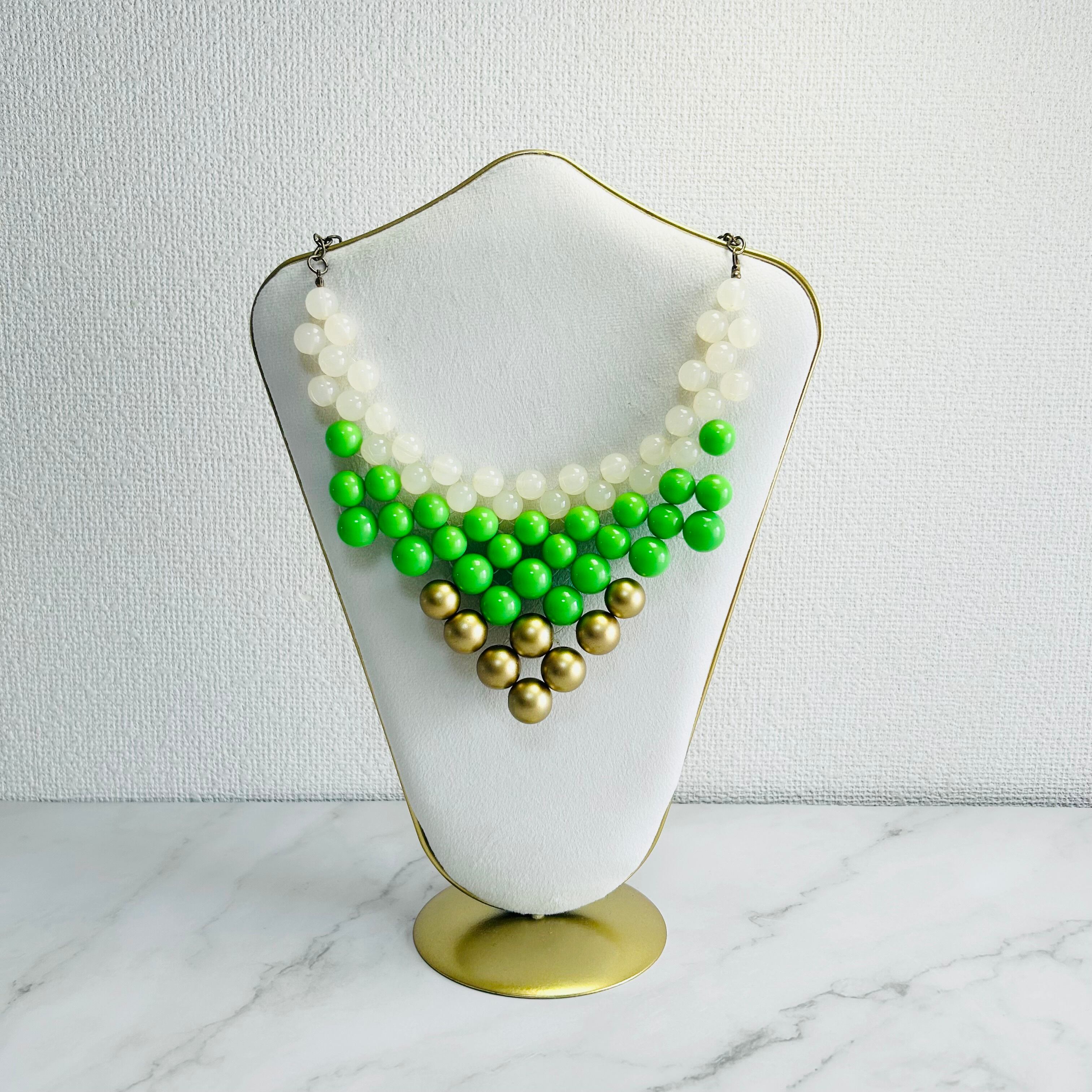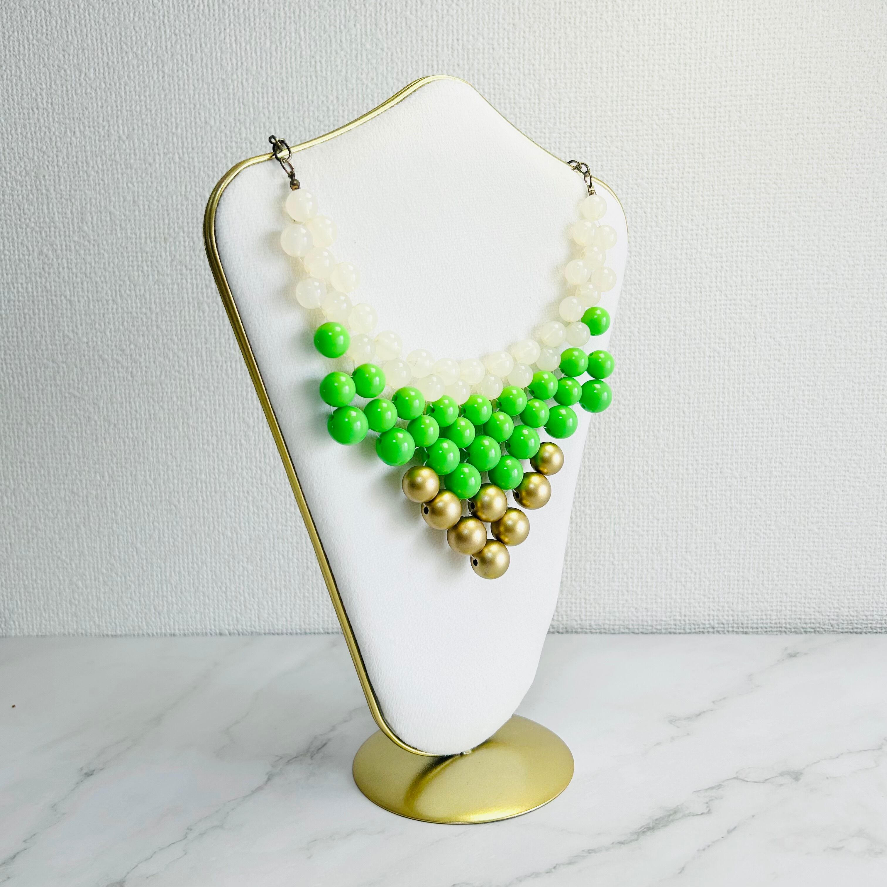ライトグリーン、ゴールド、クリーミーホワイト✖️アンティークゴールドカラーのネックレスです。