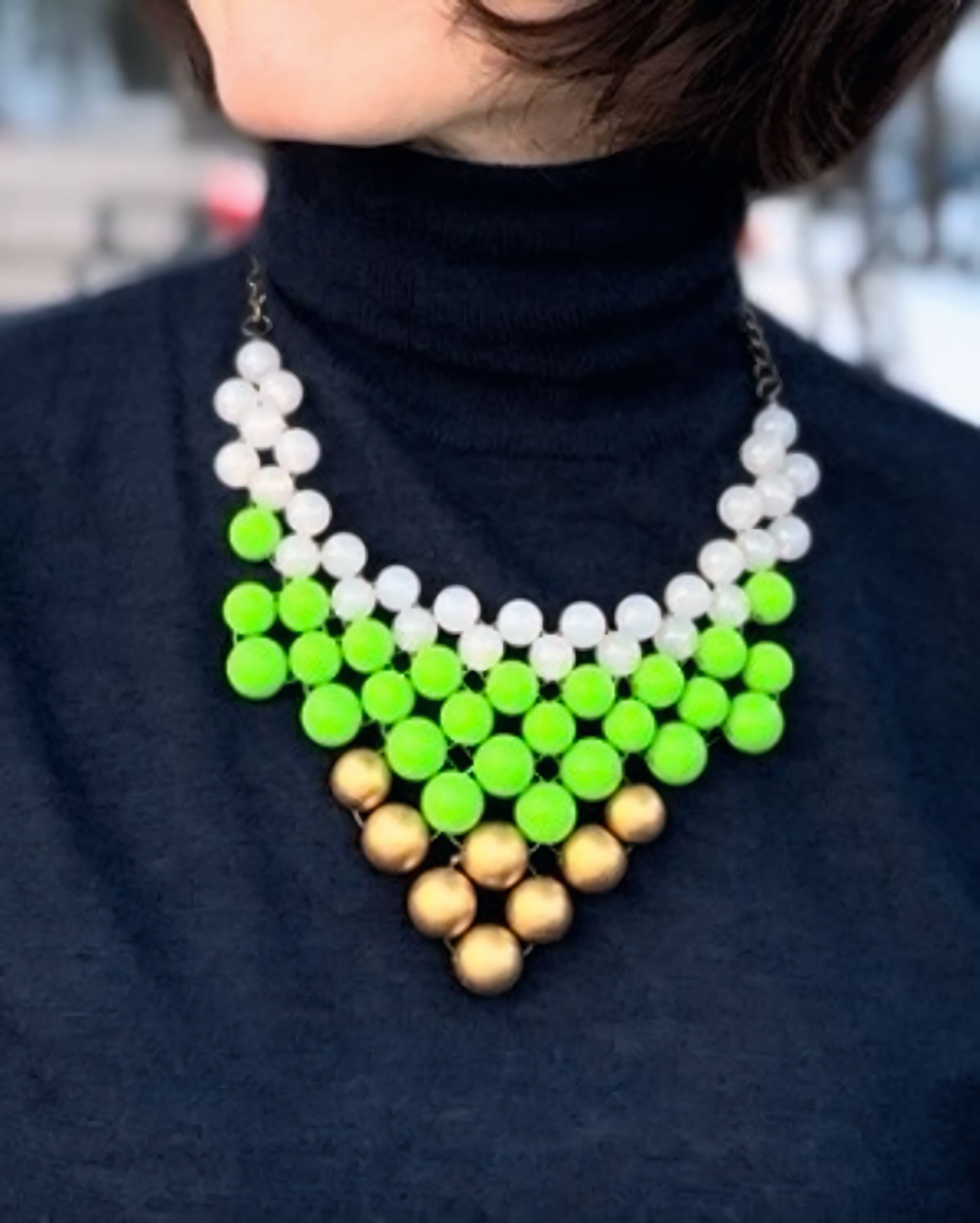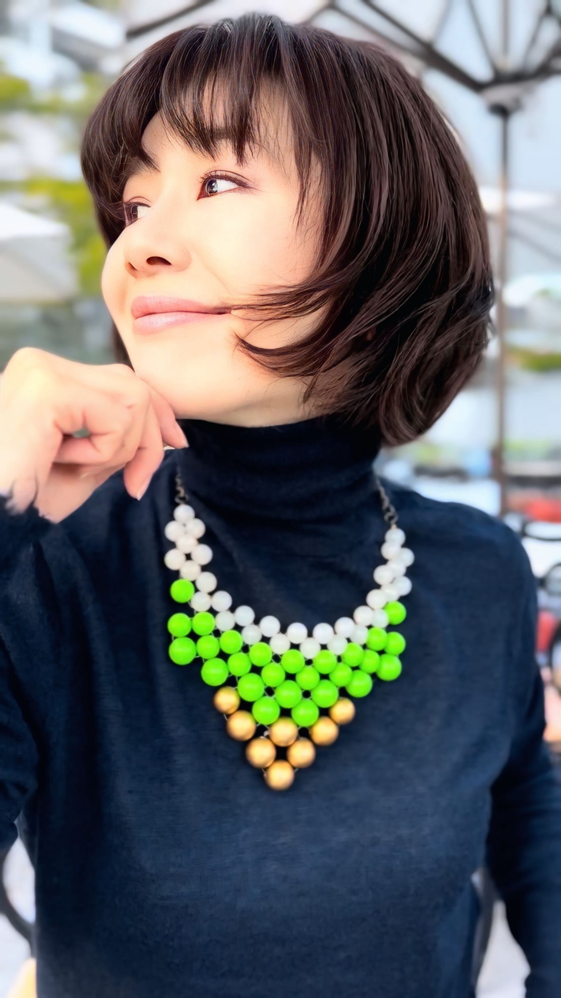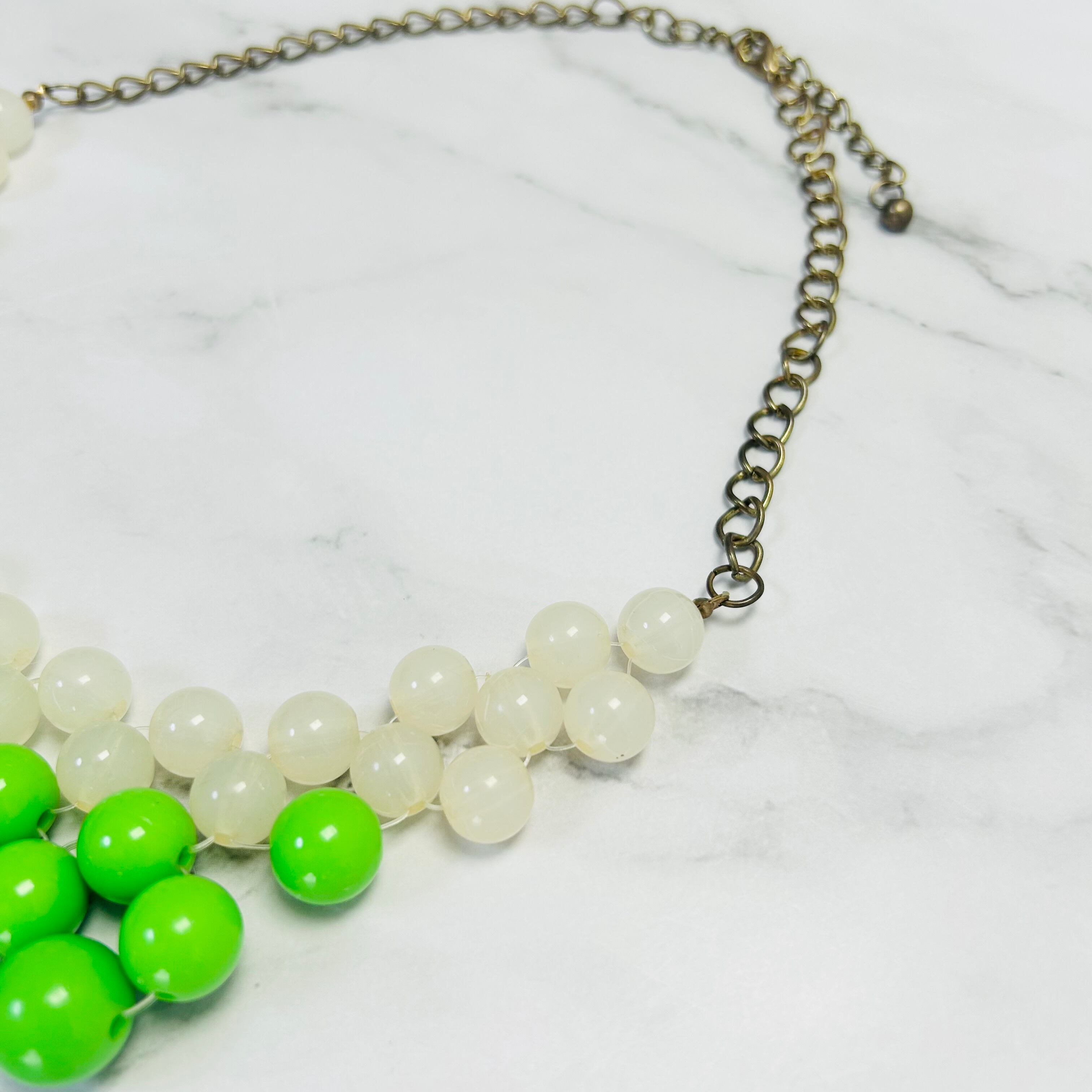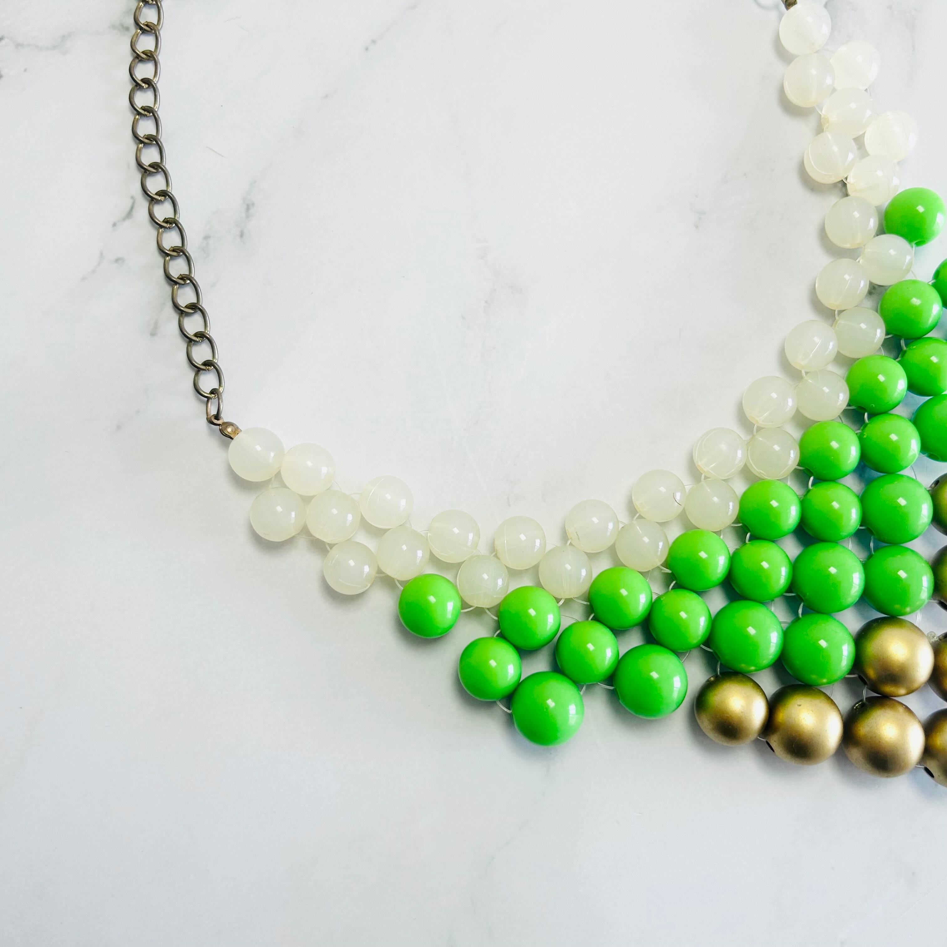 ライトグリーン、ゴールド、クリーミーホワイト✖️アンティークゴールドカラーのネックレスです。