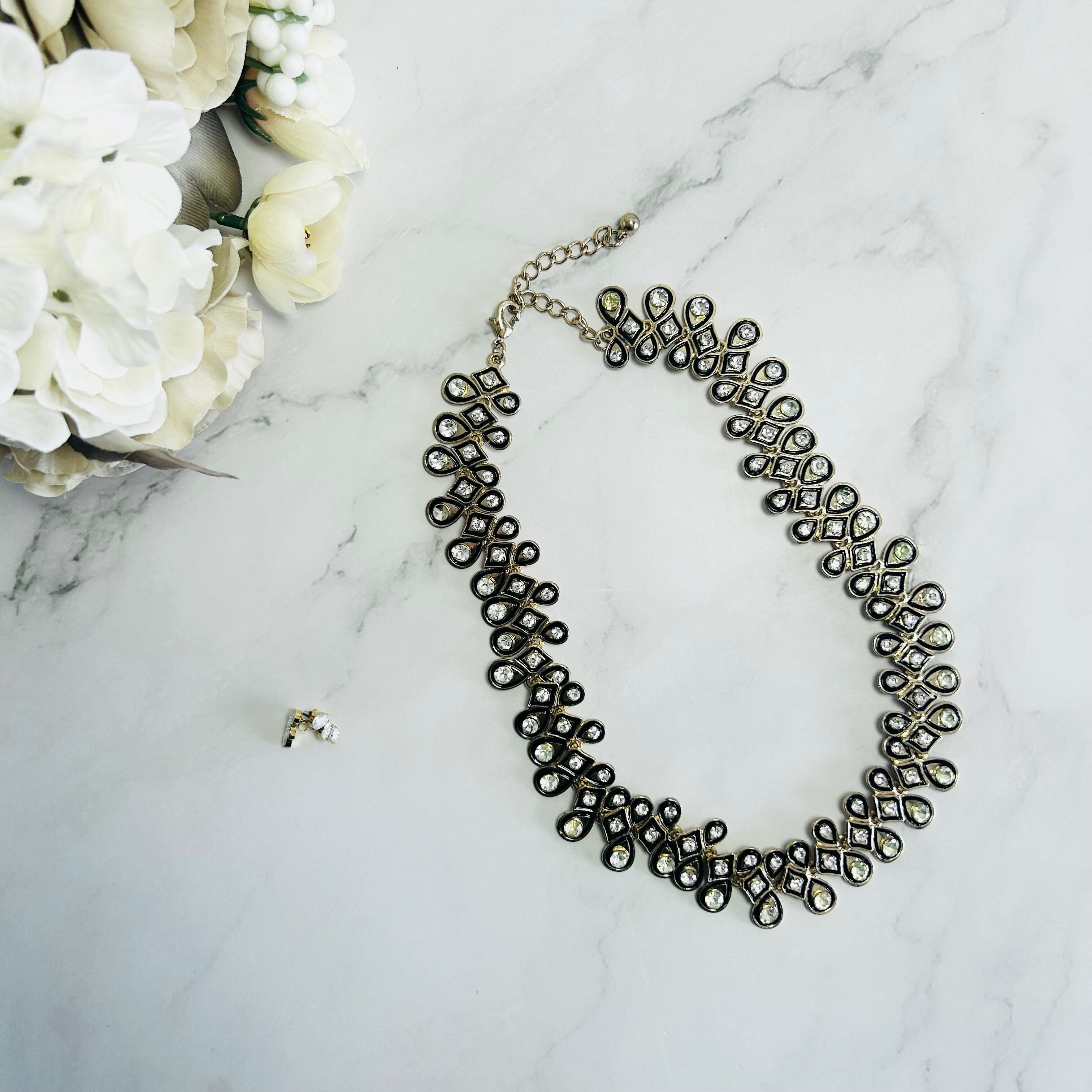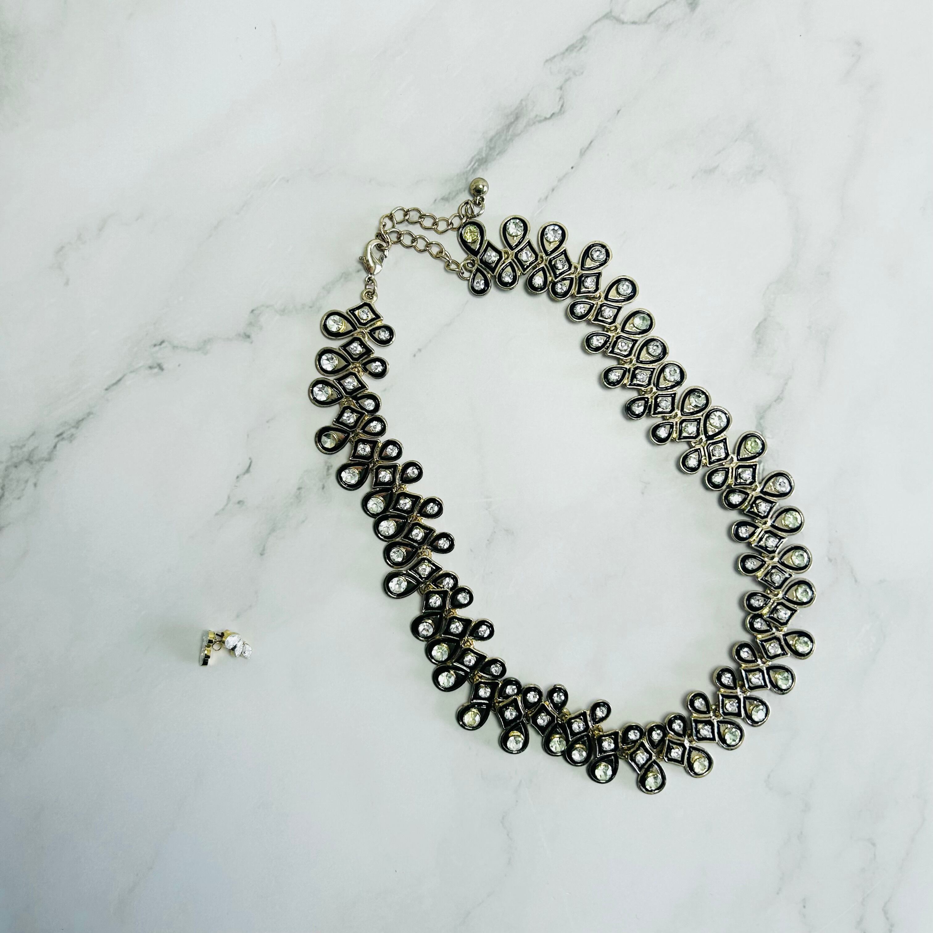 ブラック、クリスタルカラー✖️アンティークゴールドカラーのネックレスとピアスのセットです。
