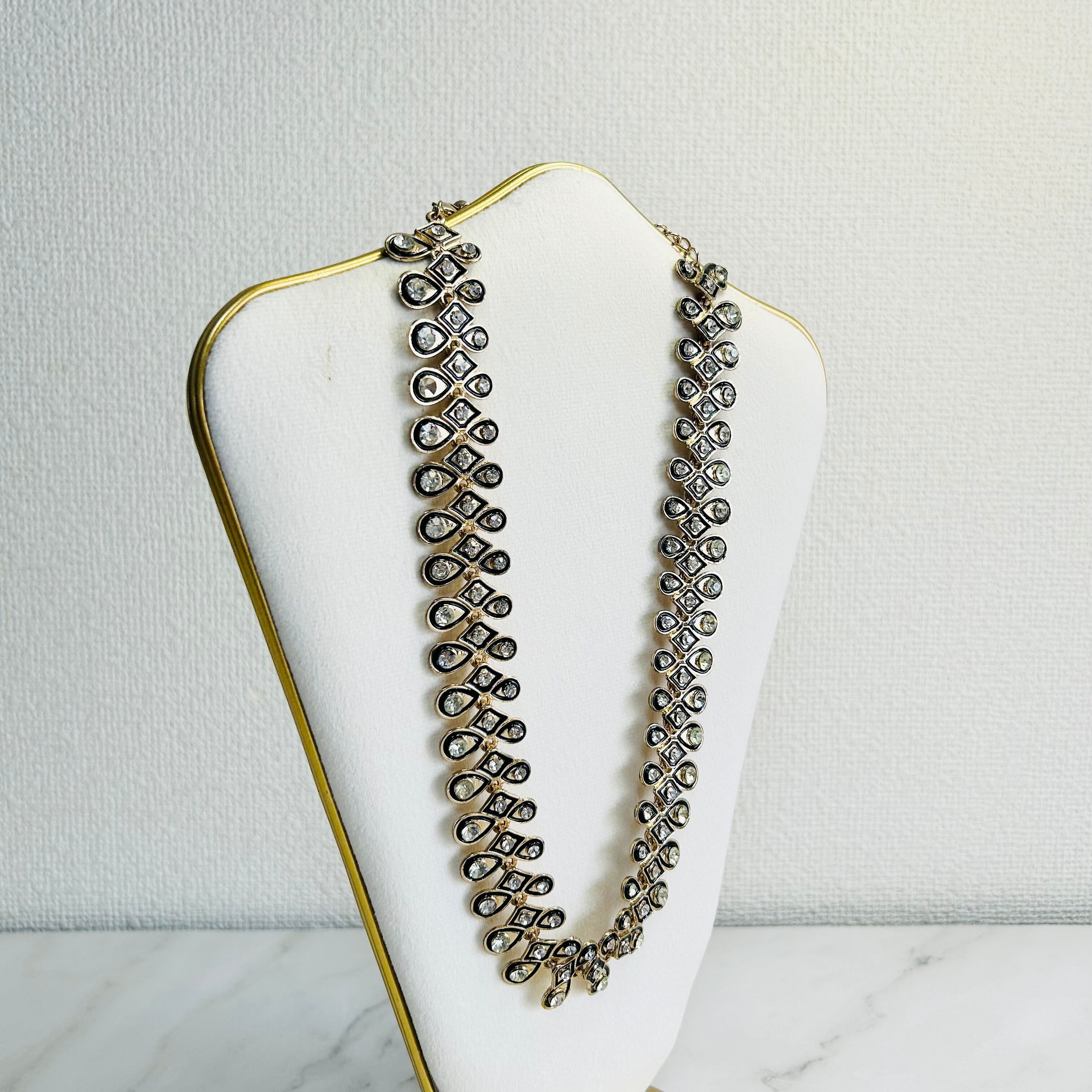 美しく輝くクリスタルビジューをふんだんにあしらったゴージャスな華やさが魅力のエレガントなネックレスと、ジルコニア素材のピアスをセットにした大人っぽいデザインです。