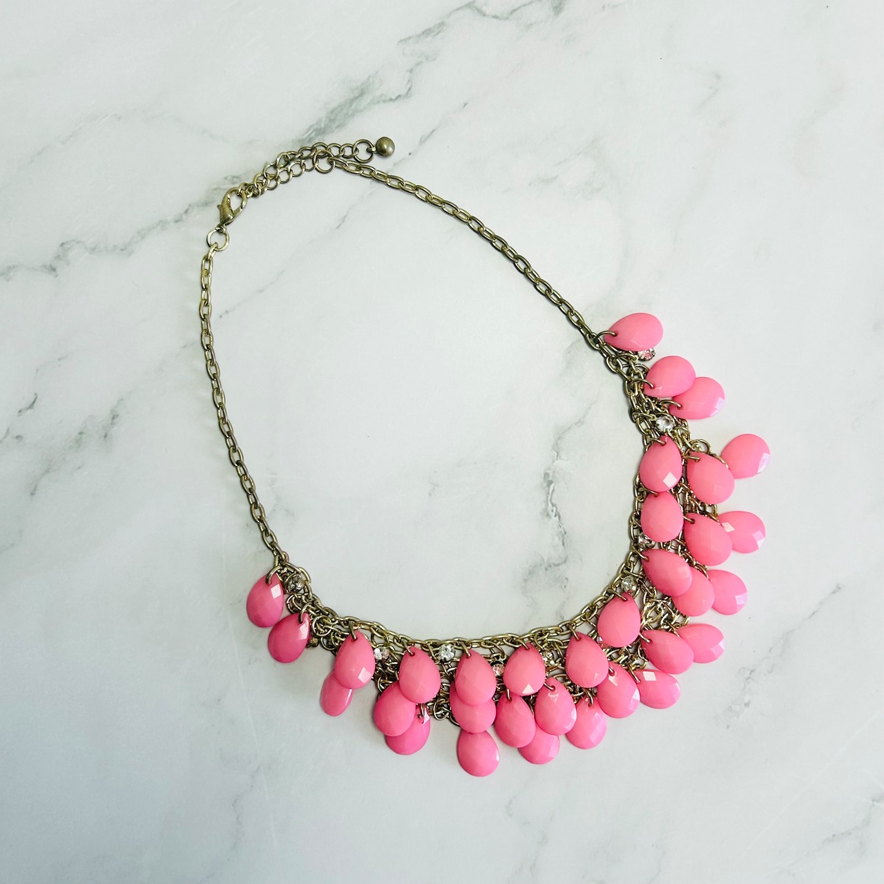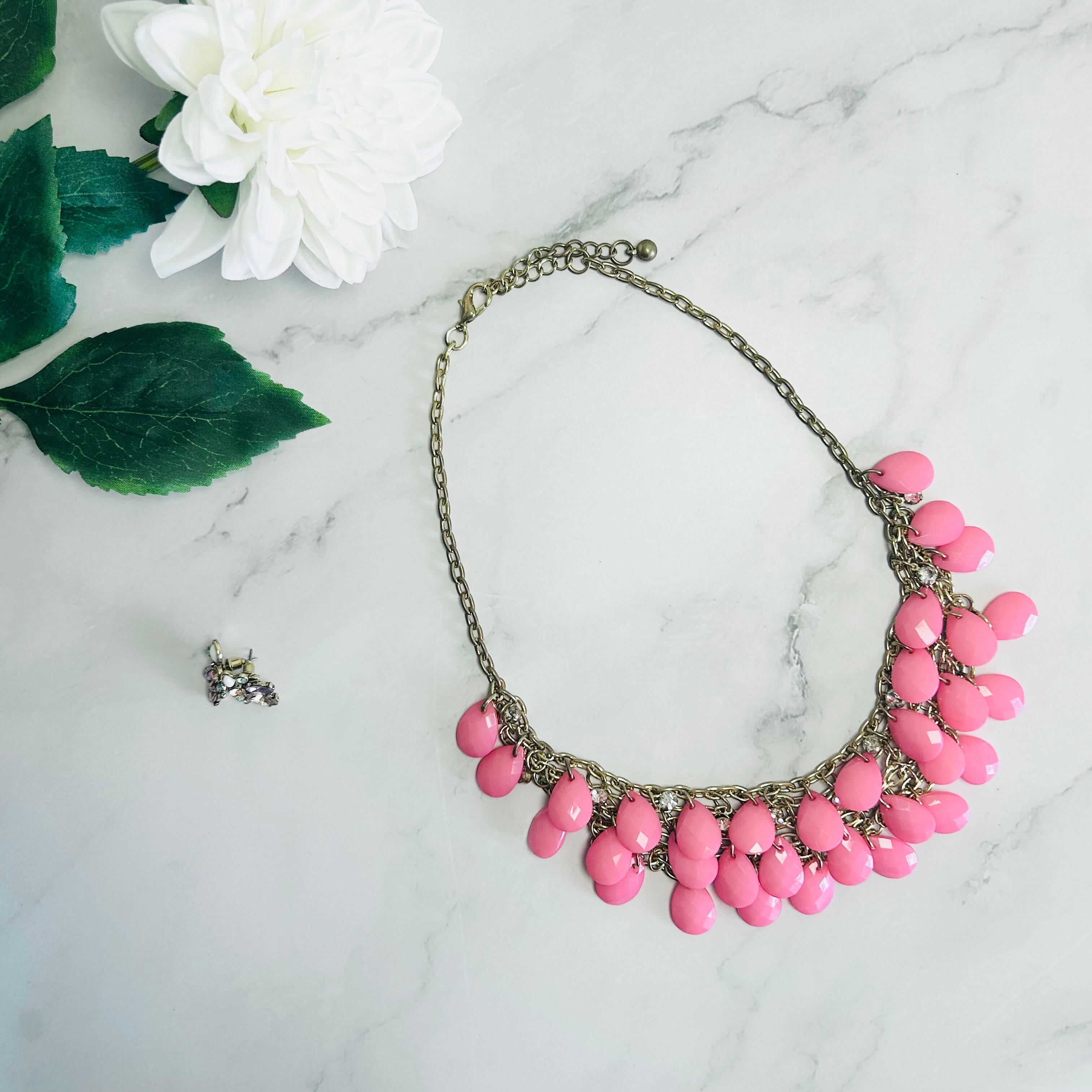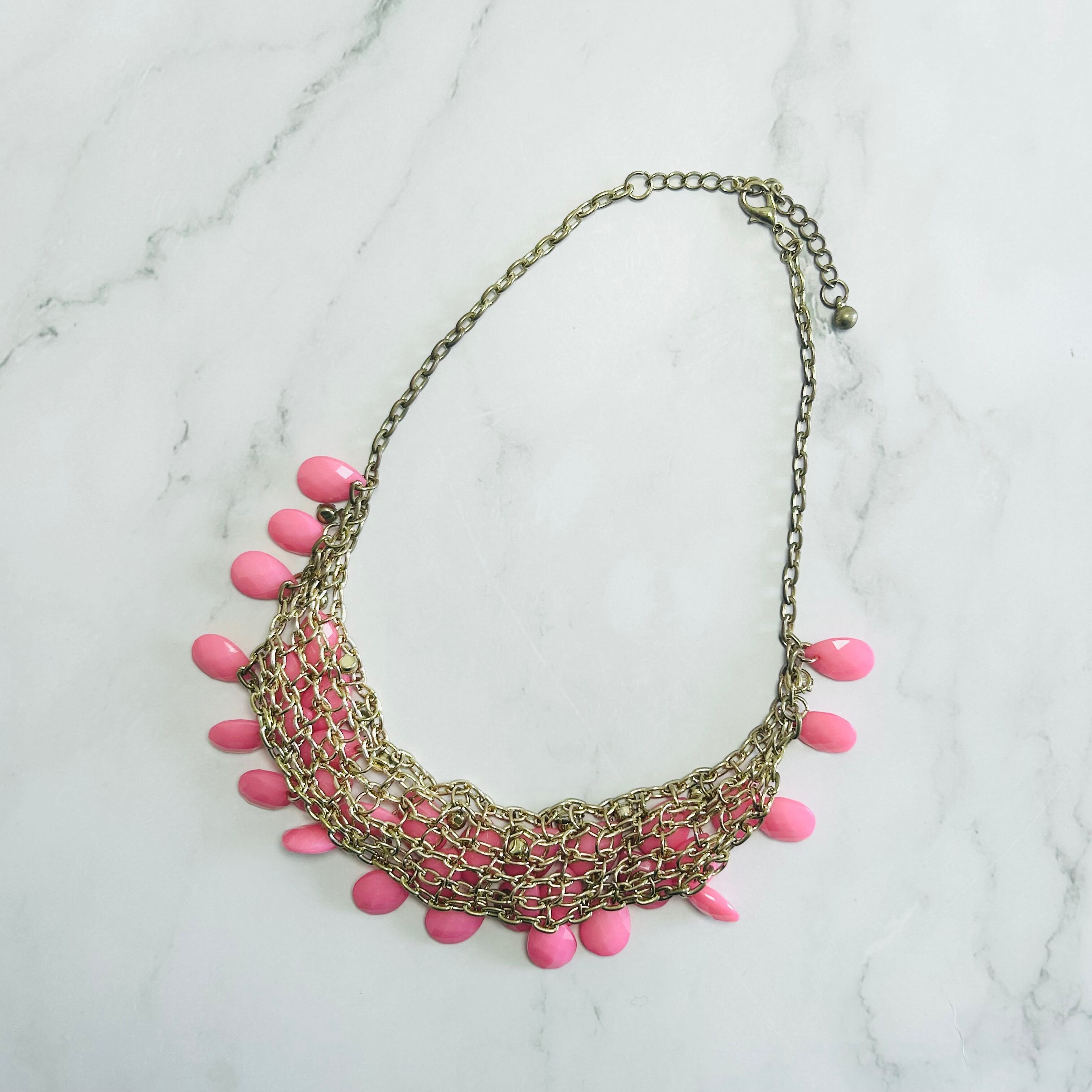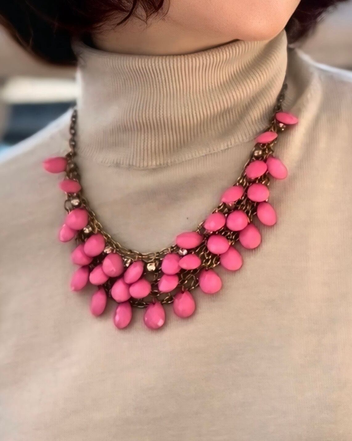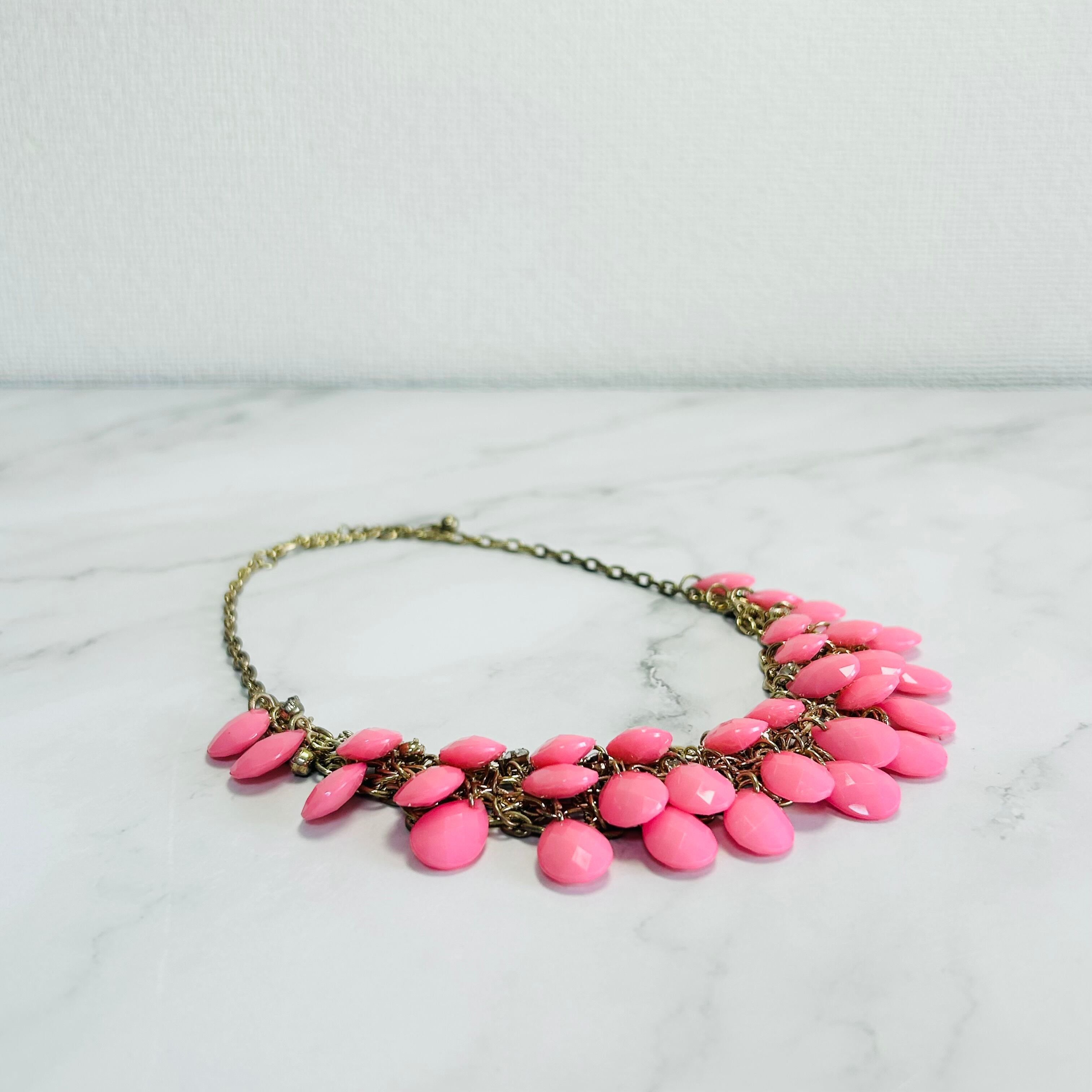 ピンク、クリスタル✖️アンティークゴールドカラーのネックレスです。
