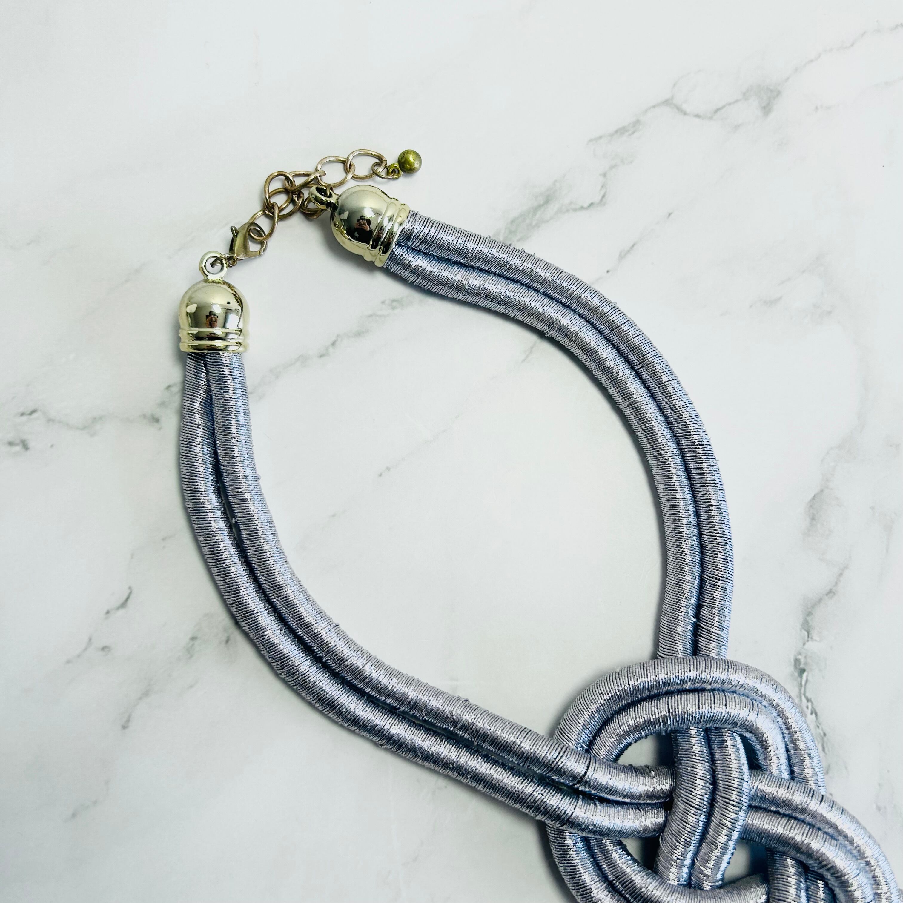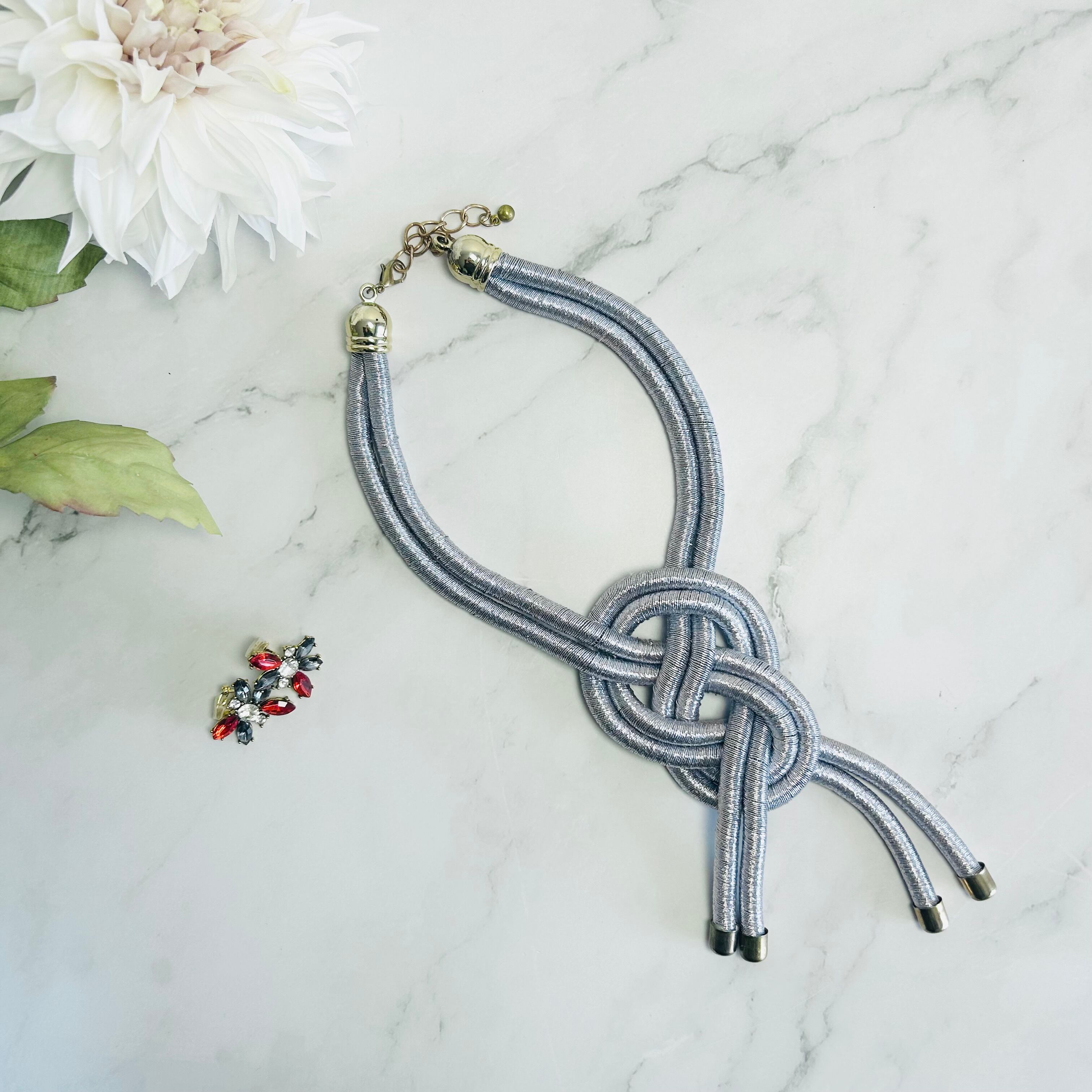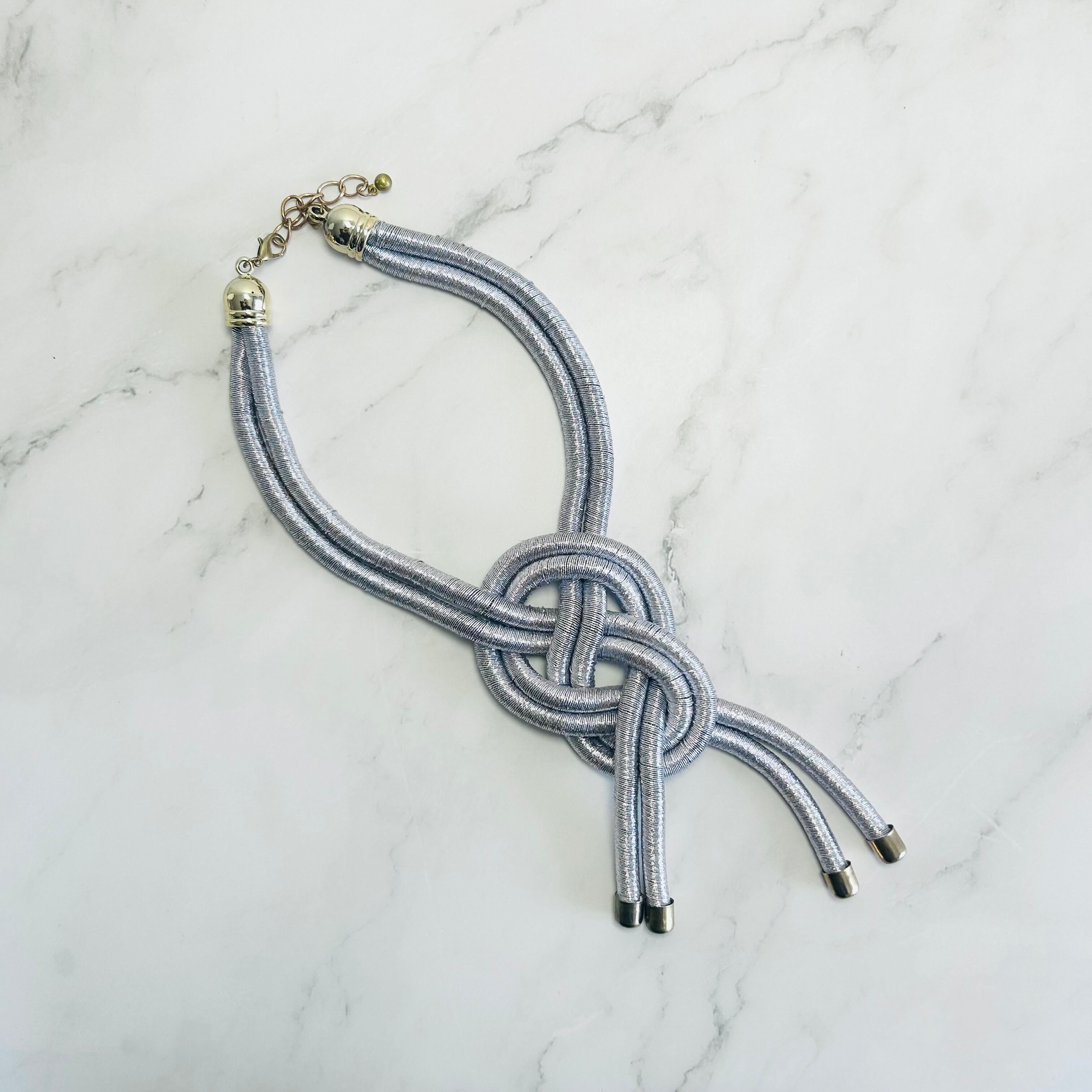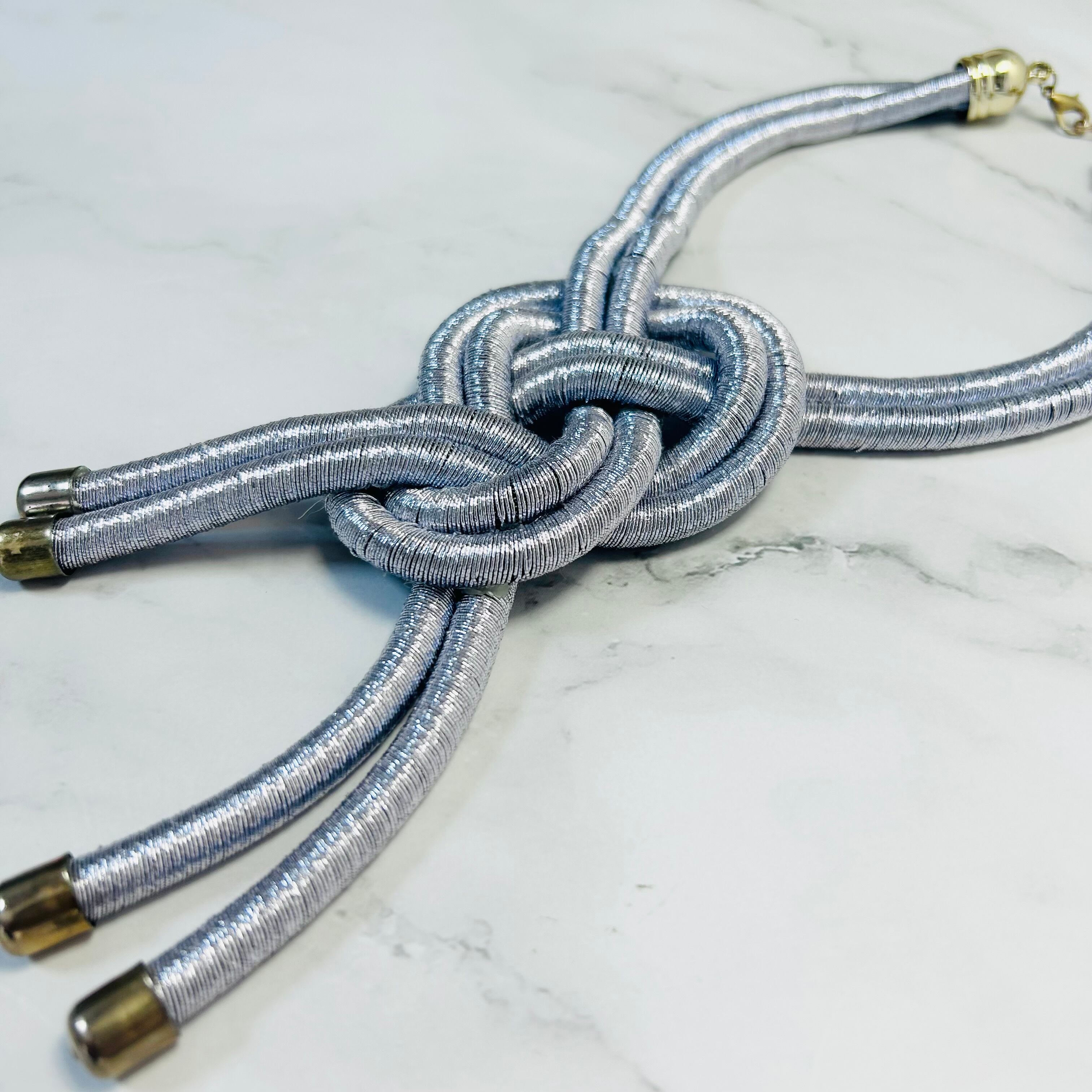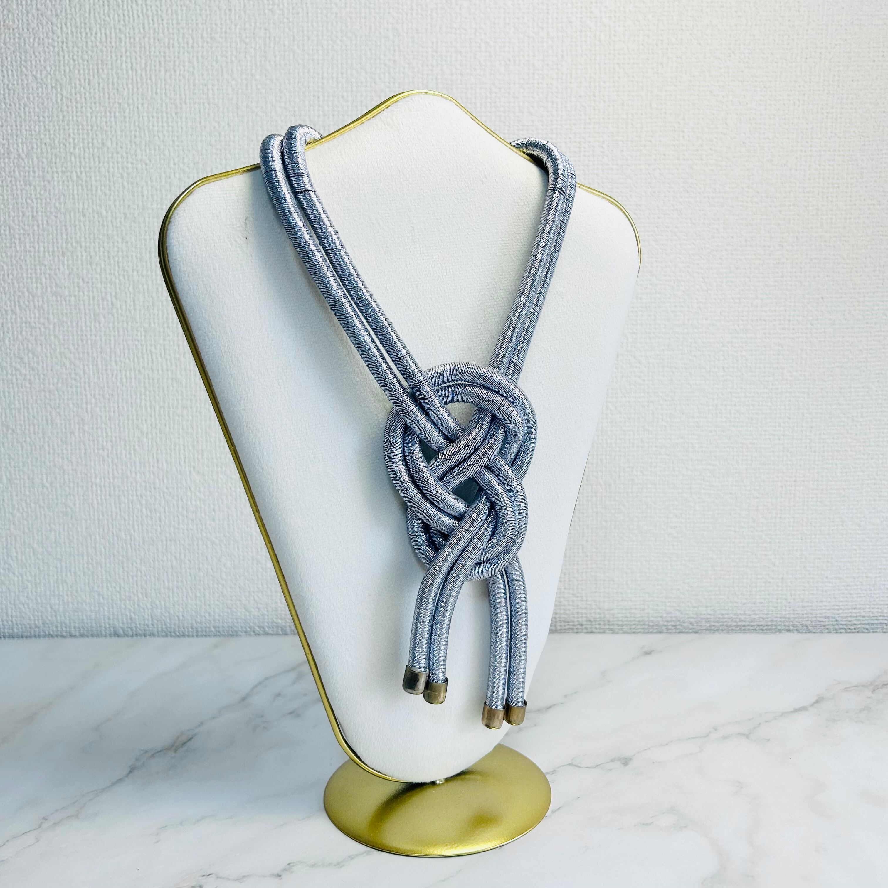 華やかに輝くシルバーのコードを編んだシンプルで上品なデザインです。