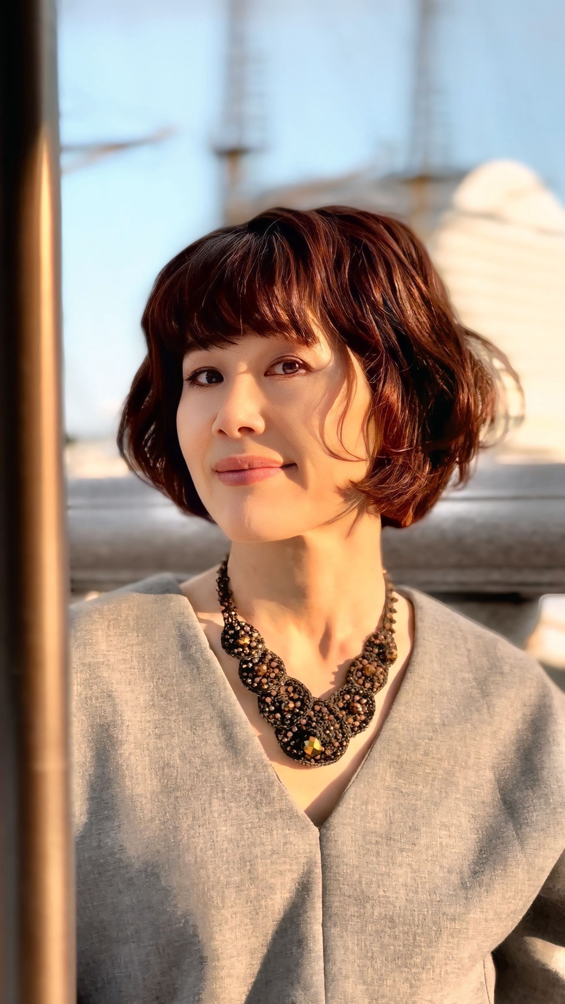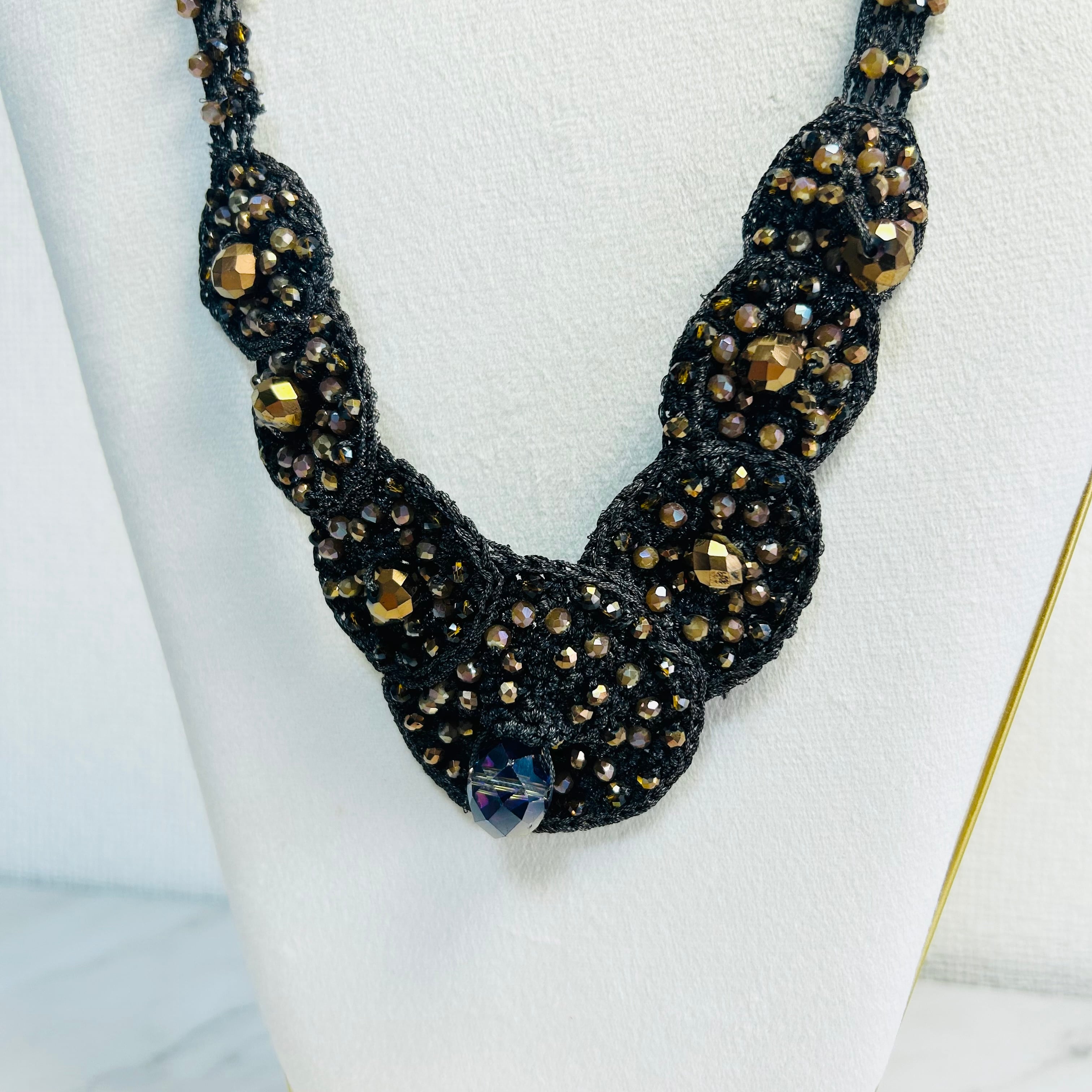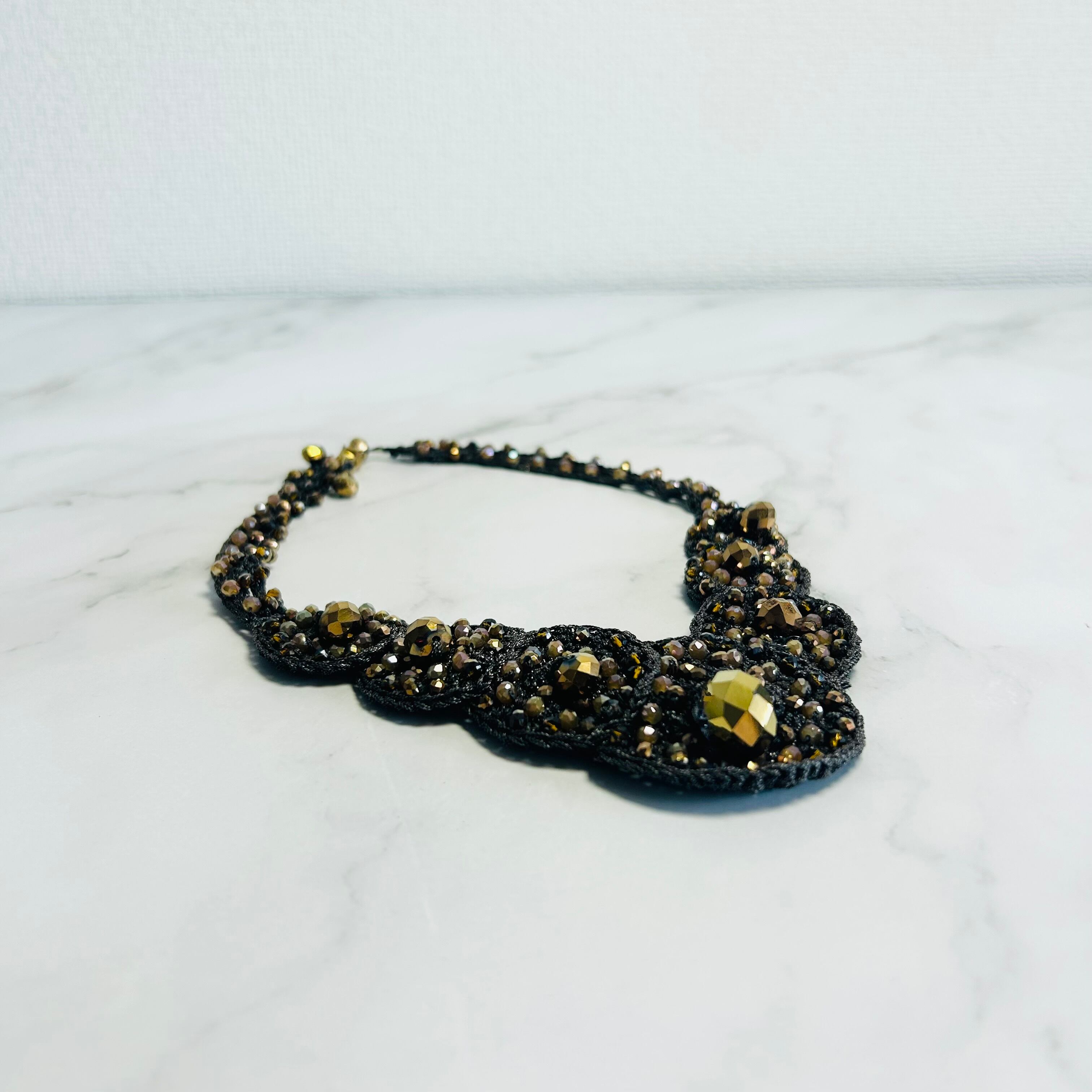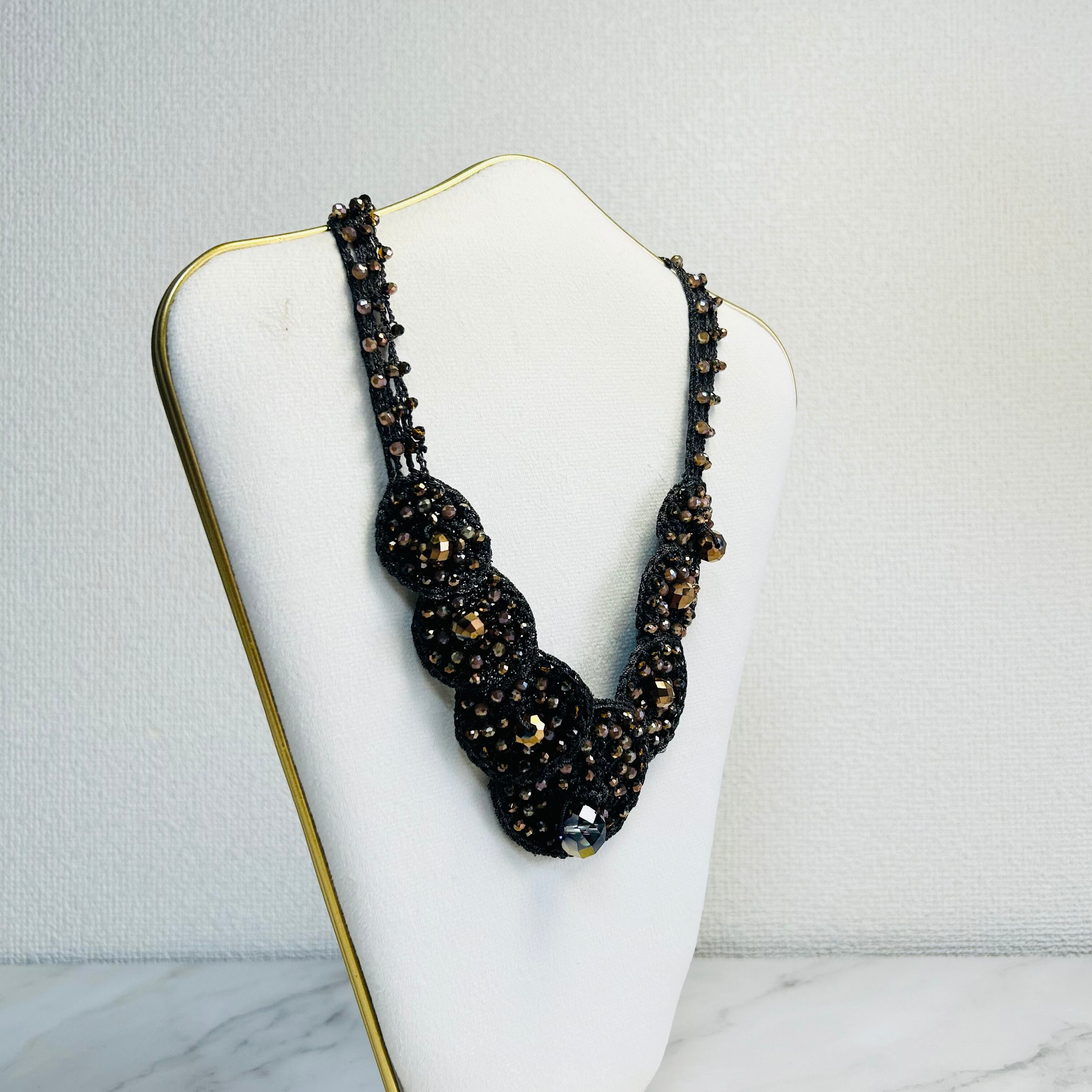 ブラックラメ、ブラウン、ブロンズカラーのネックレスです。