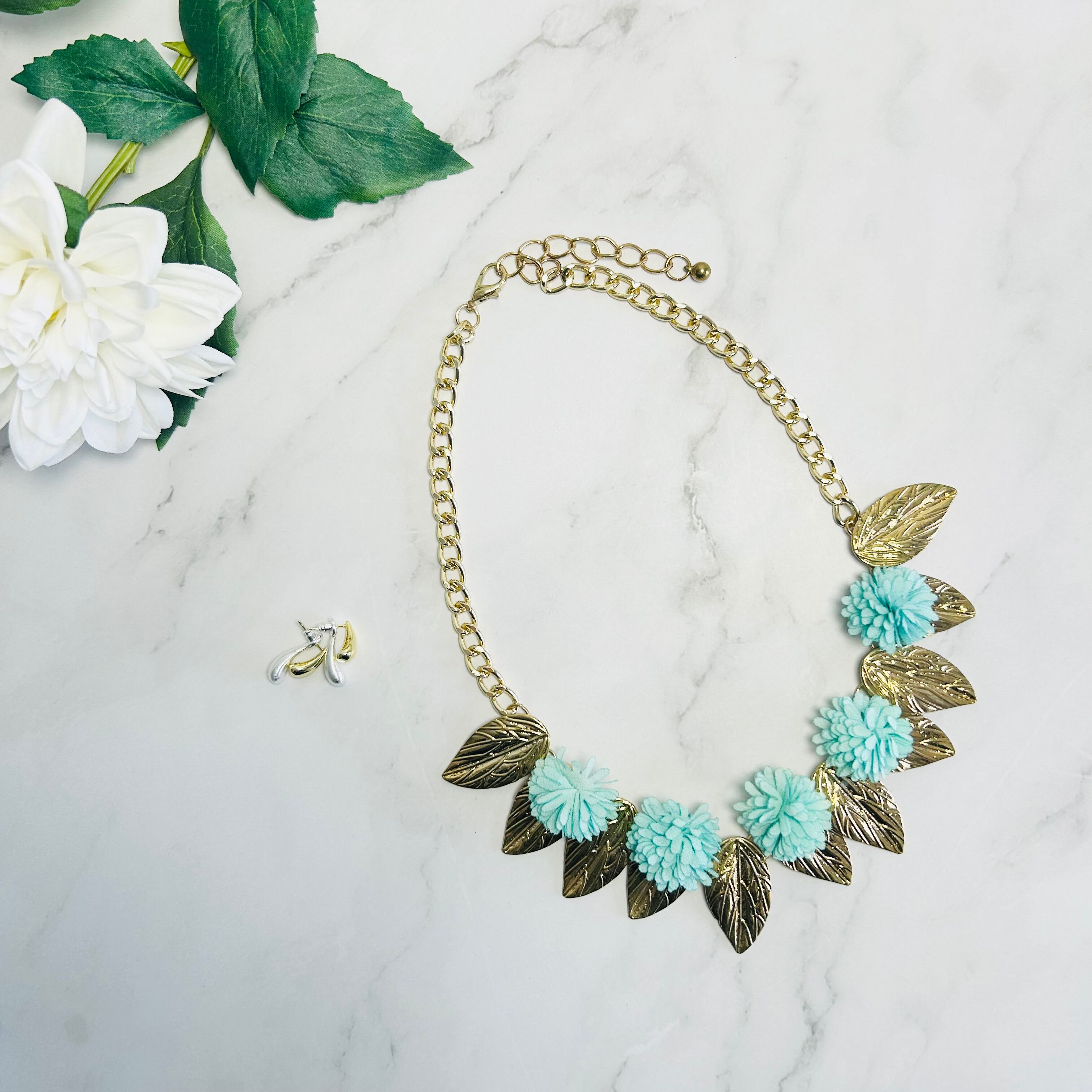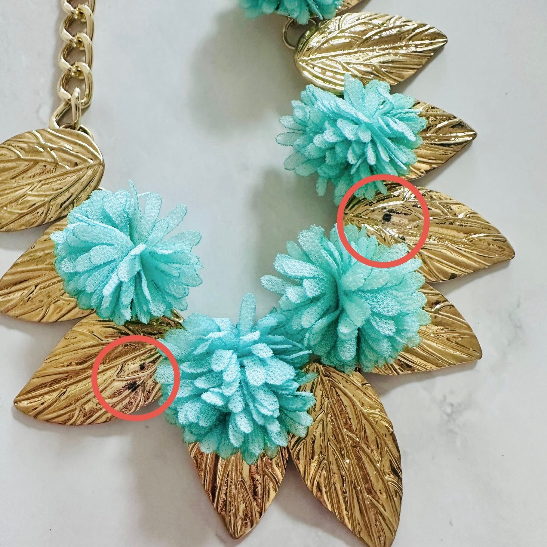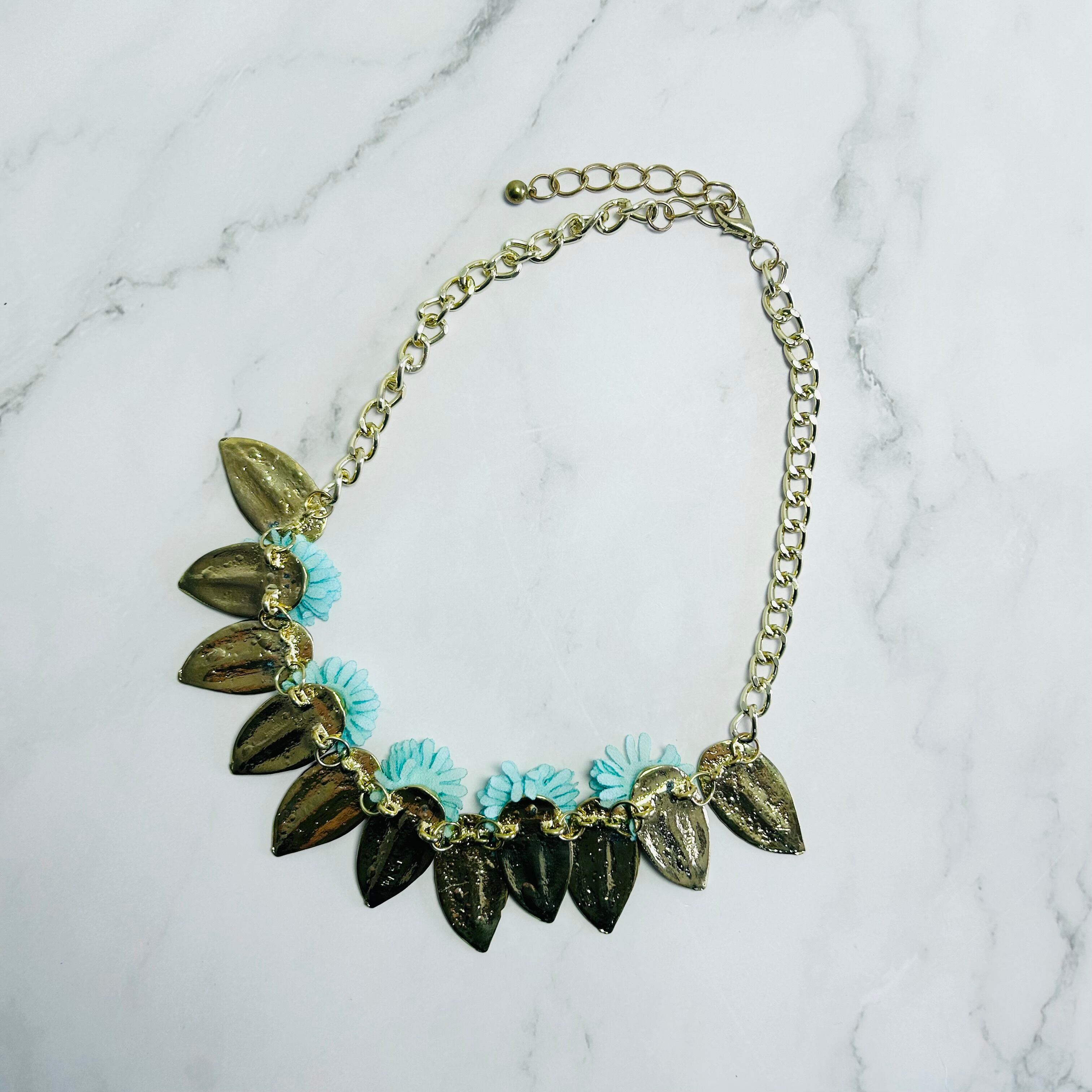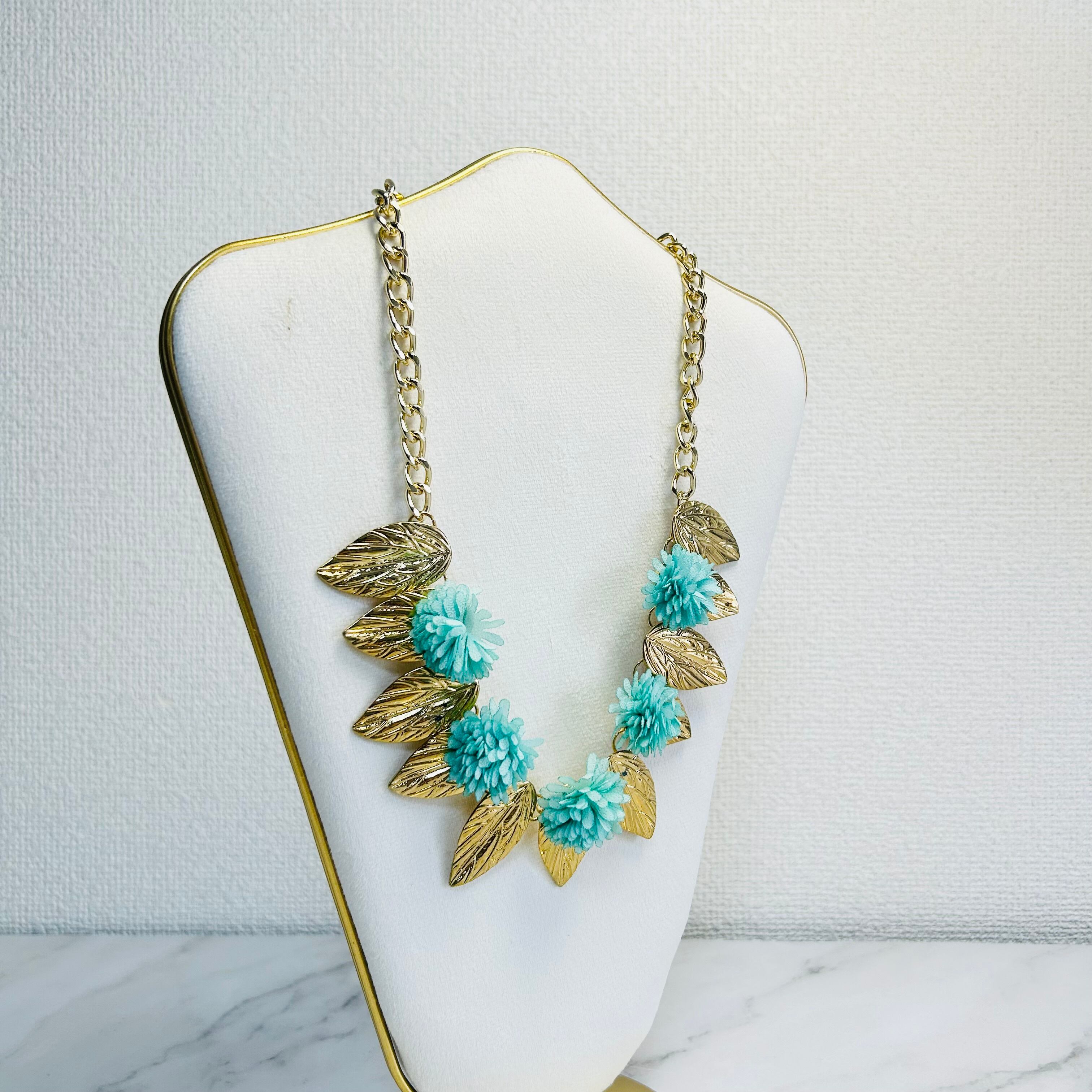 エメラルドグリーン✖️アンティークゴールドカラーのネックレスです。