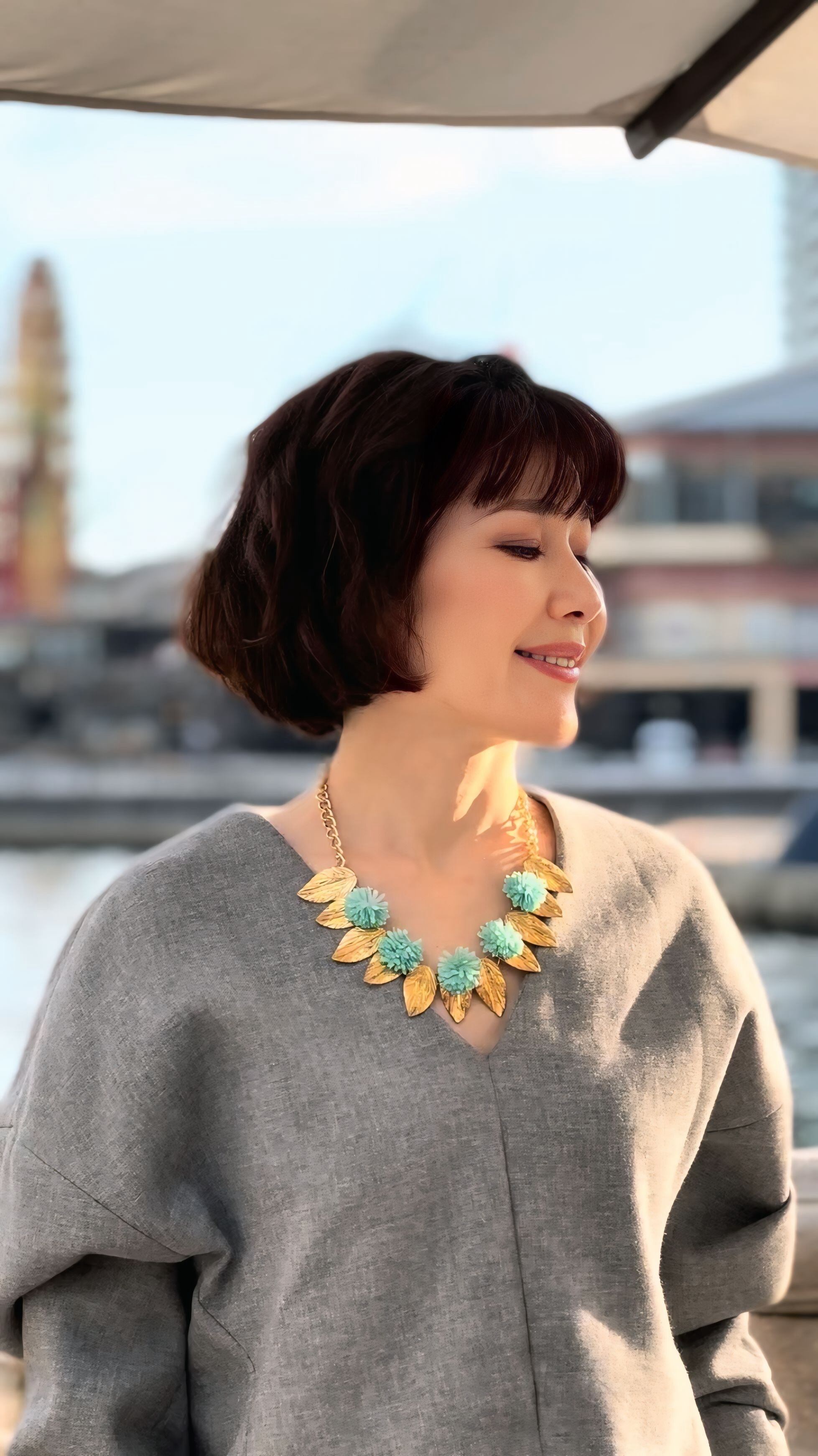 いつもの装いに1点投入で優雅な印象を高めてくれます。