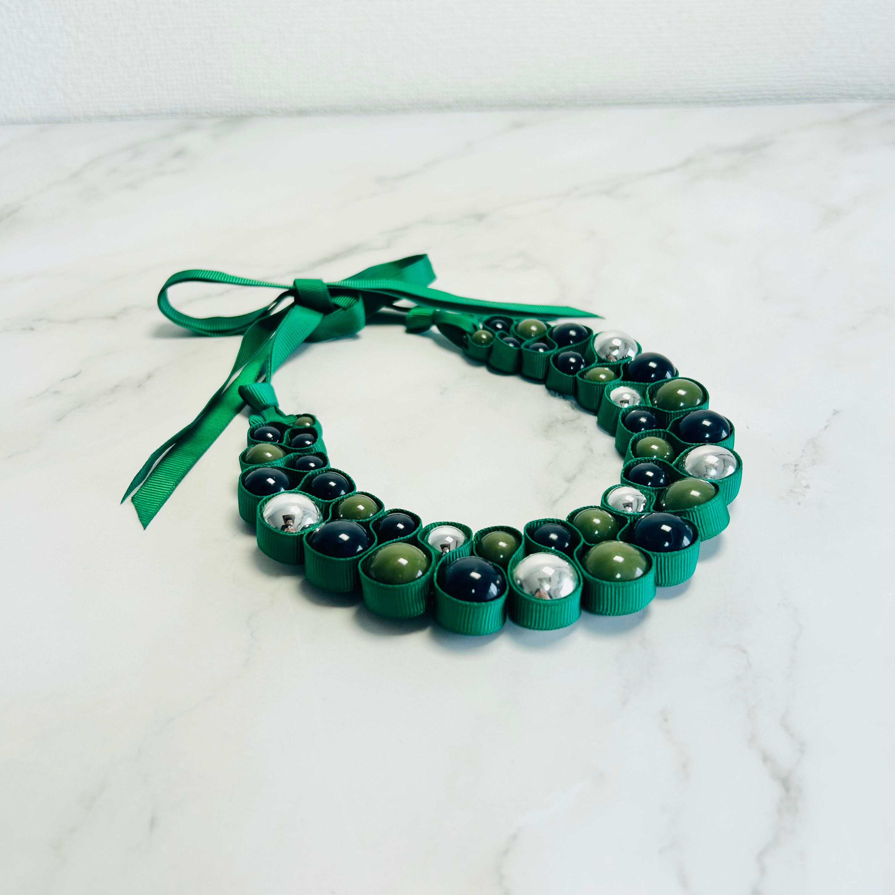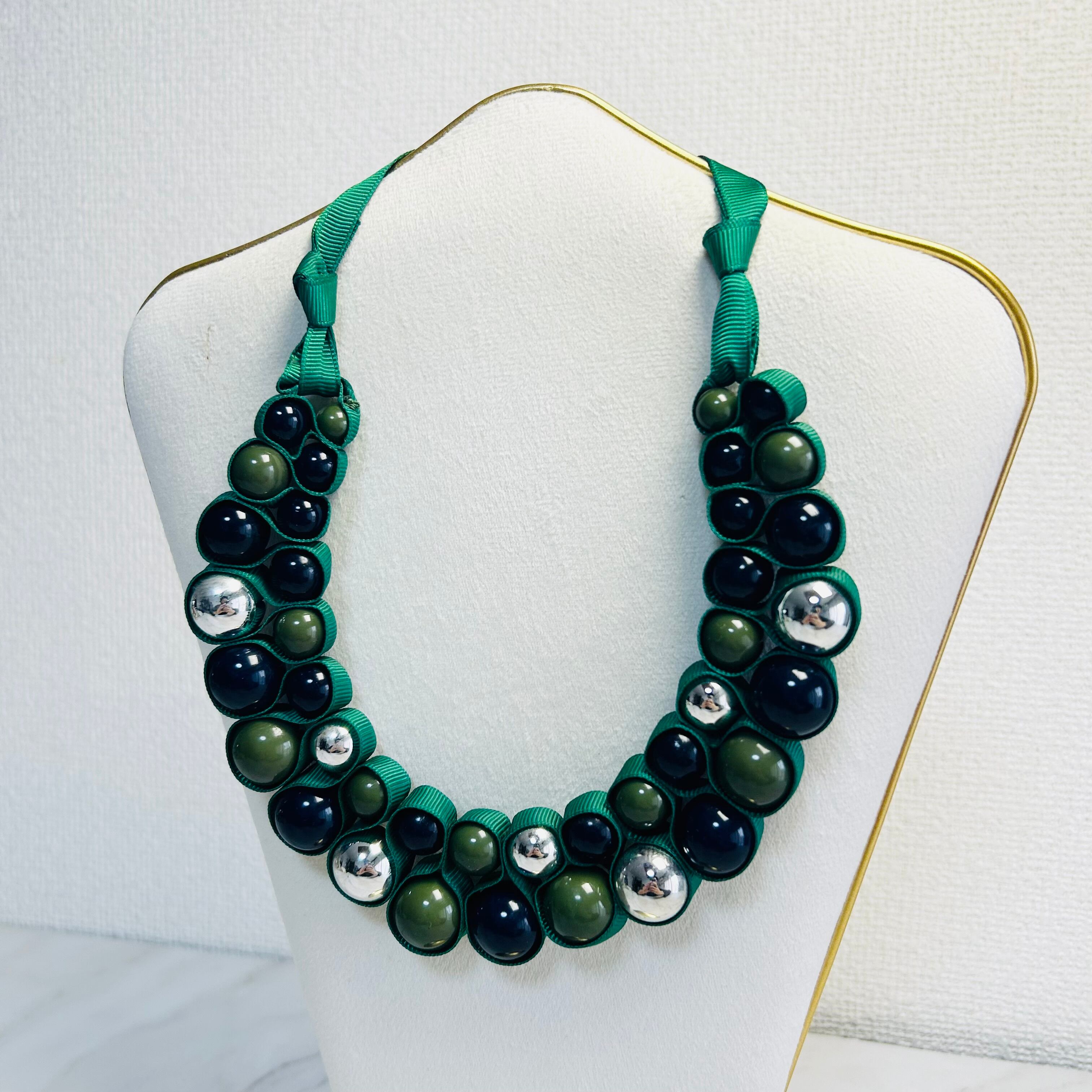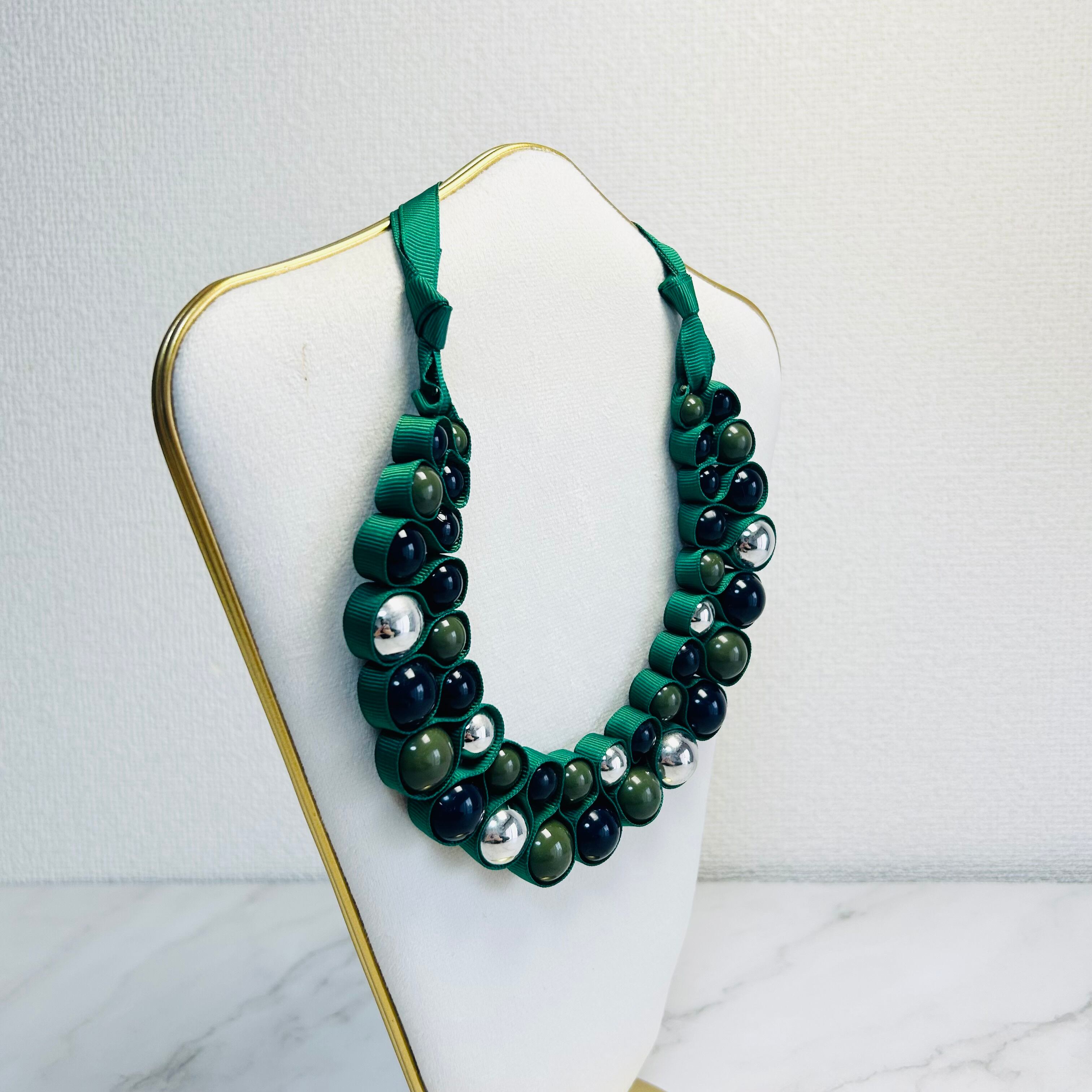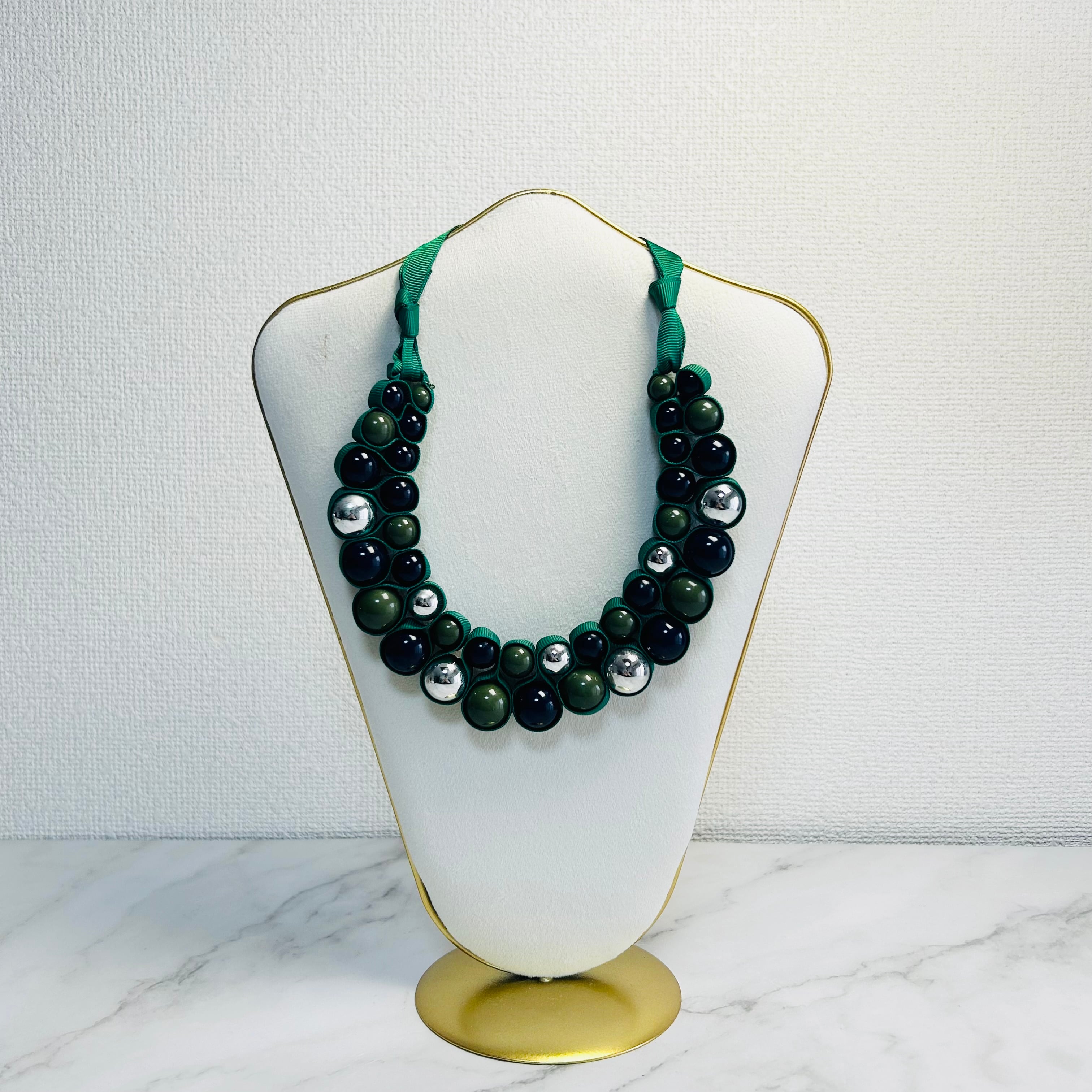 ダークネイビー、オリーブ、シルバー✖️グリーンカラーのネックレスです。