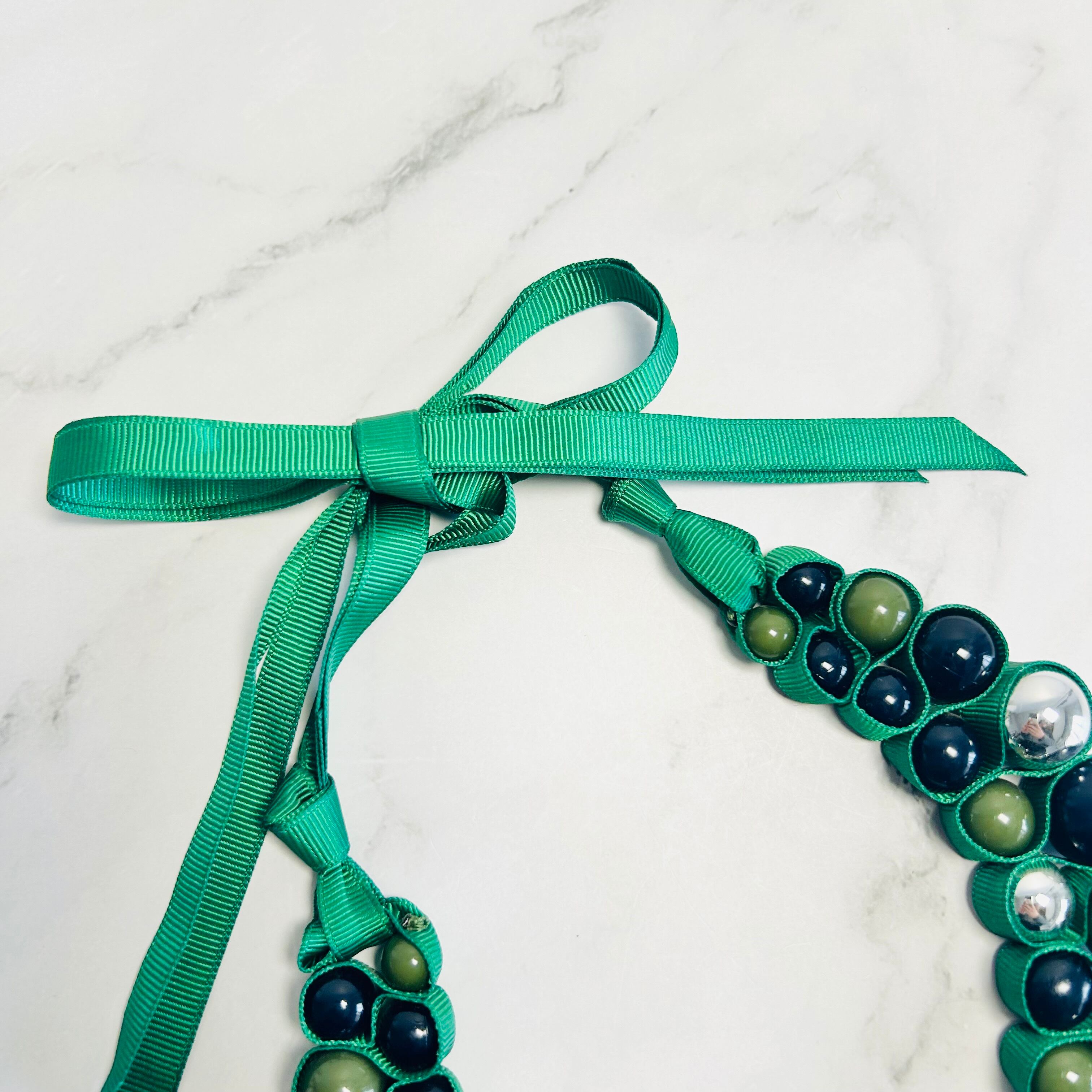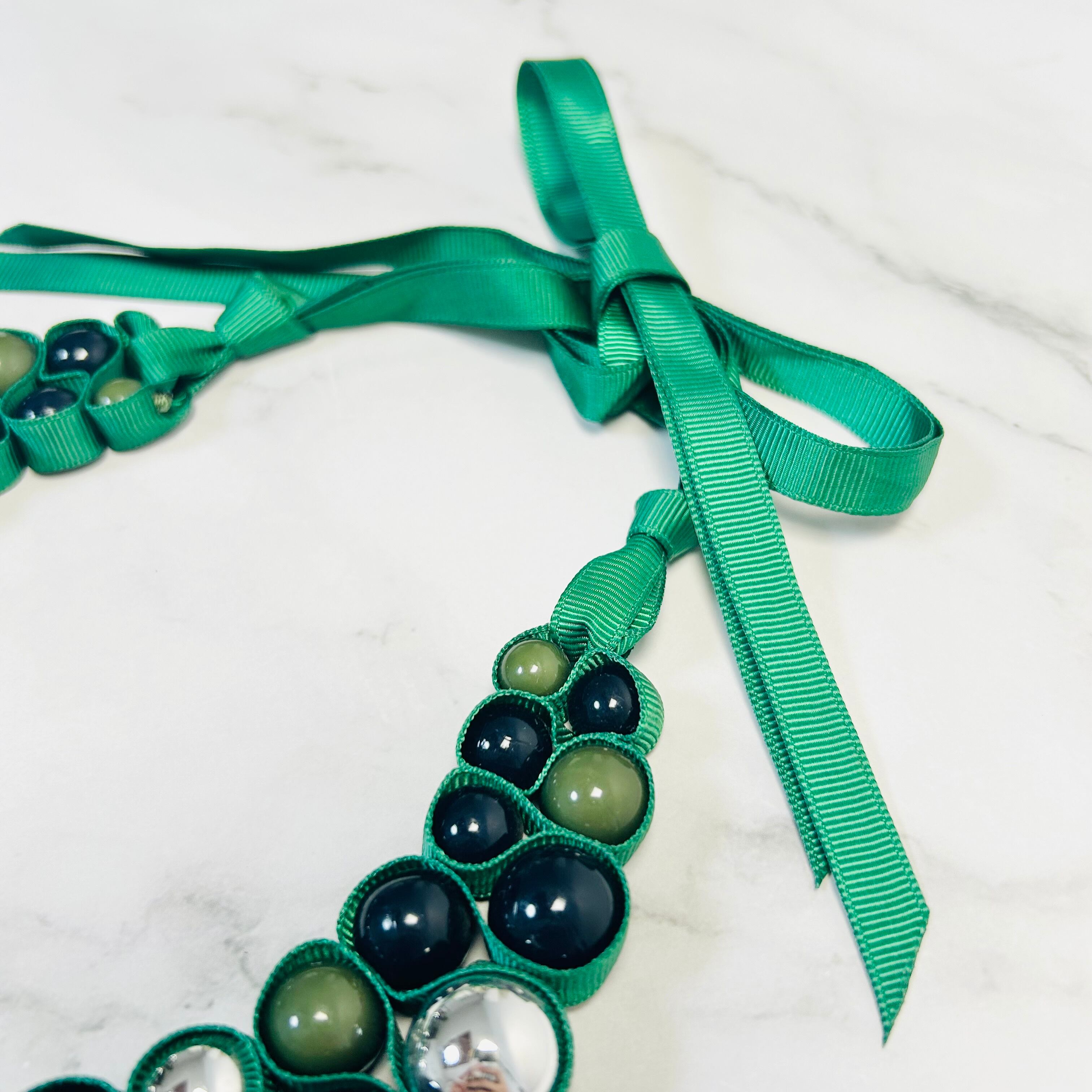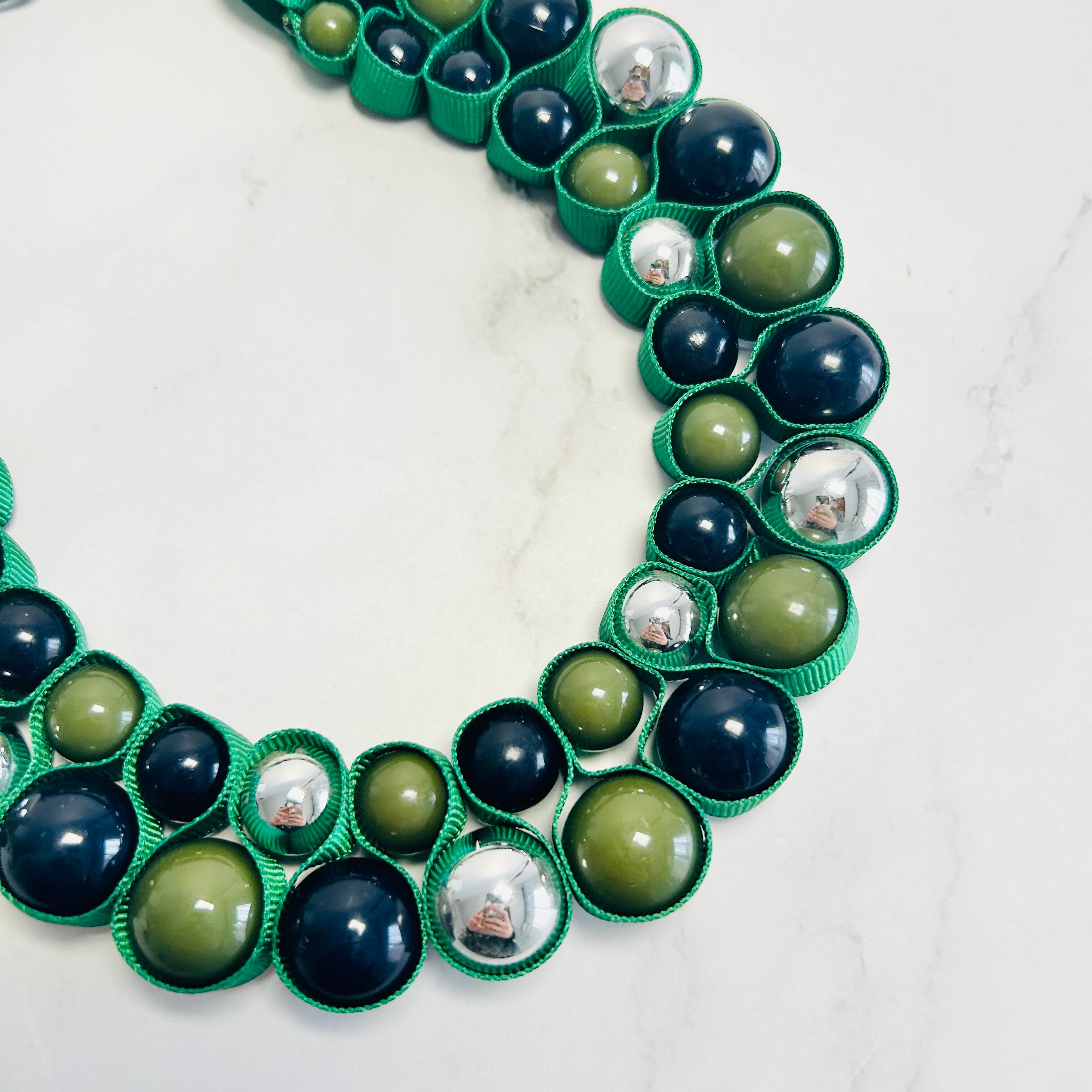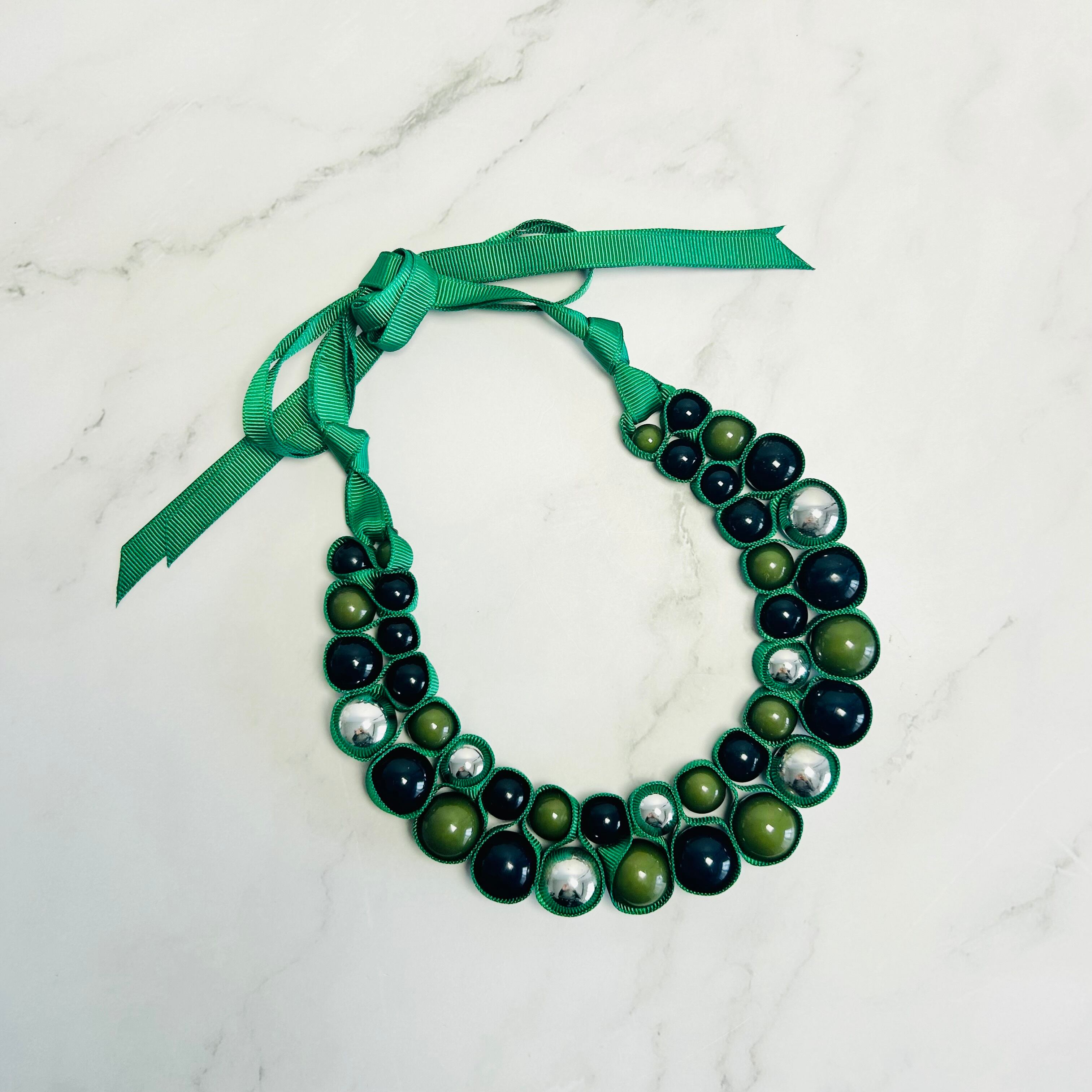 ダークネイビー、オリーブ、シルバー✖️グリーンカラーのネックレスです。