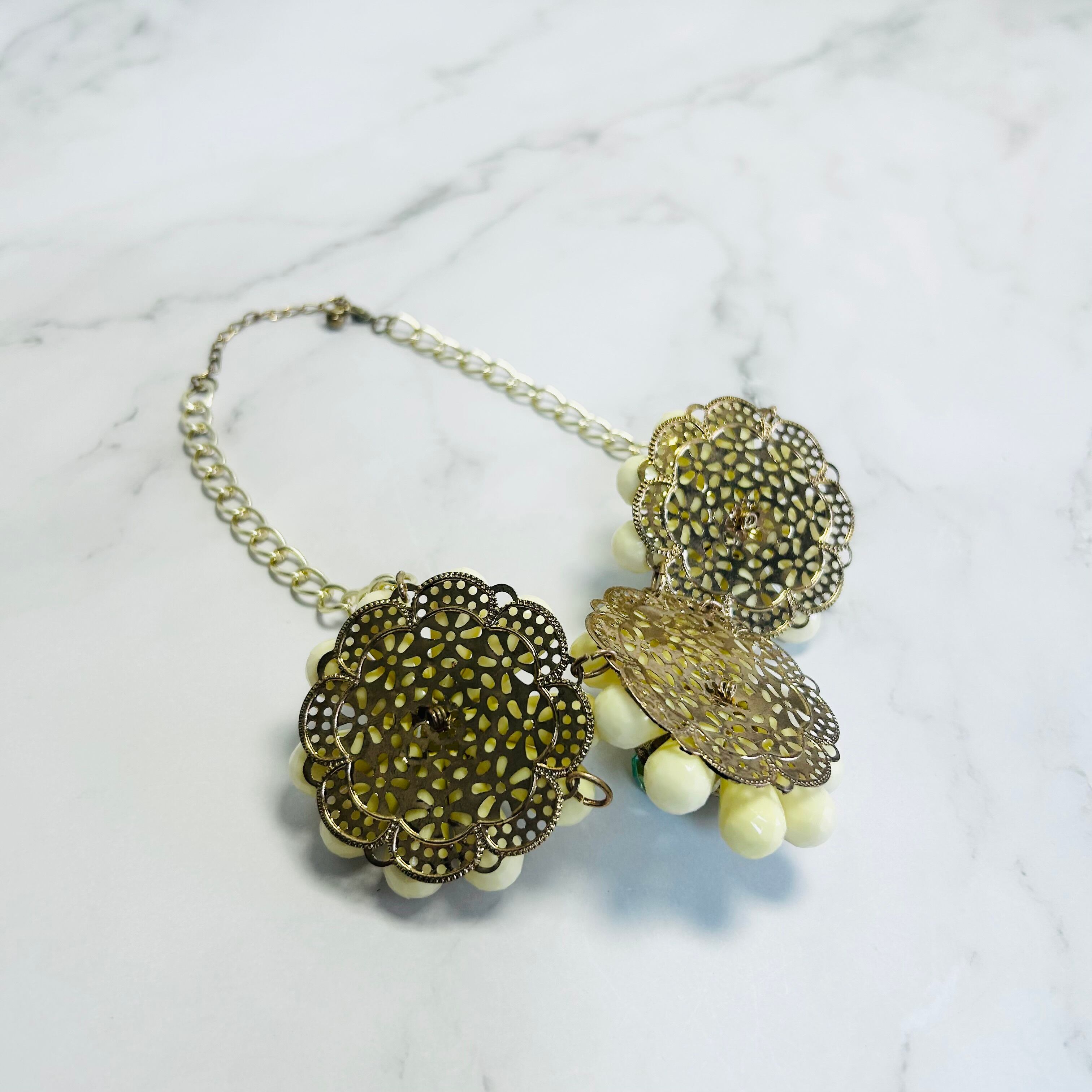 クリームアイボリー、クリアグリーン✖️アンティークゴールドカラーのネックレスです。