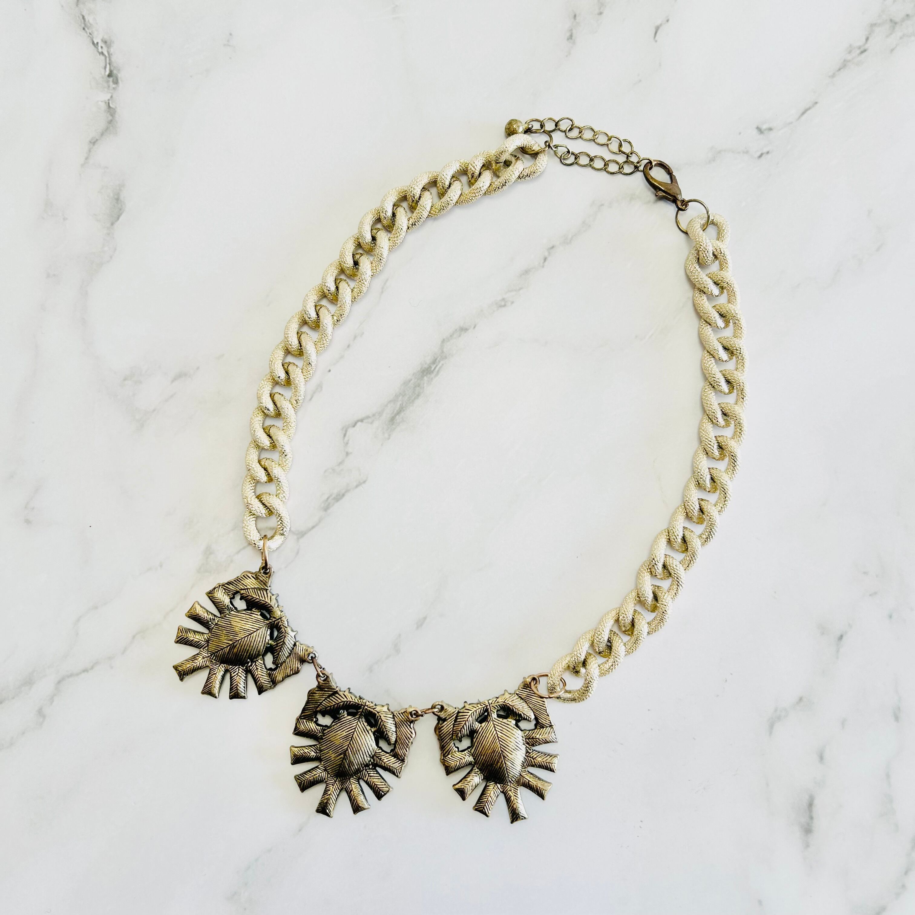 お首まわりを彩るモチーフの輝きはお顔まわりを一気に華やかに映し、目を惹くボリュームチェーンでいつものスタイリングをグッとクラスアップしてくれます☆