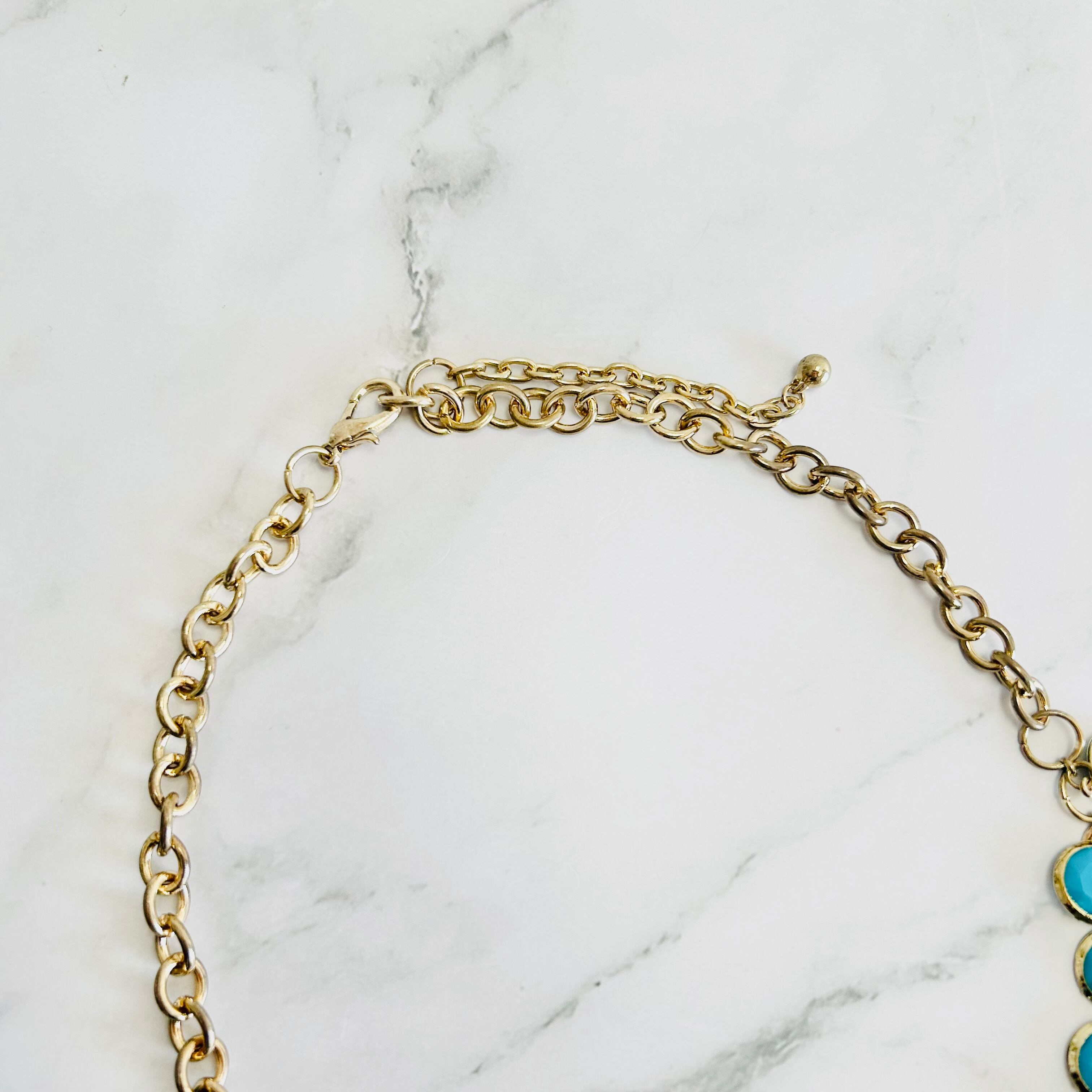 ターコイズブルー✖️アンティークゴールドカラーのネックレスです。