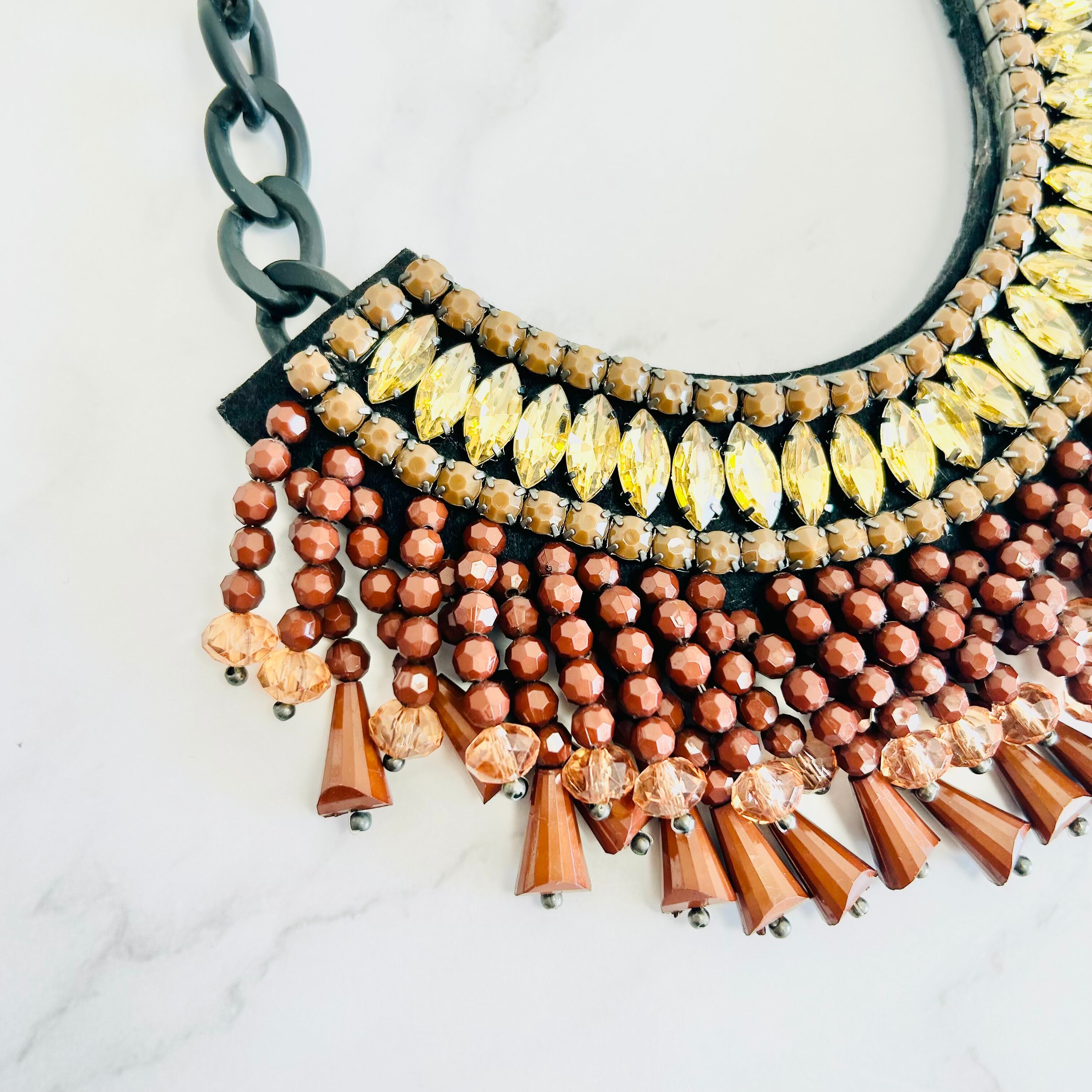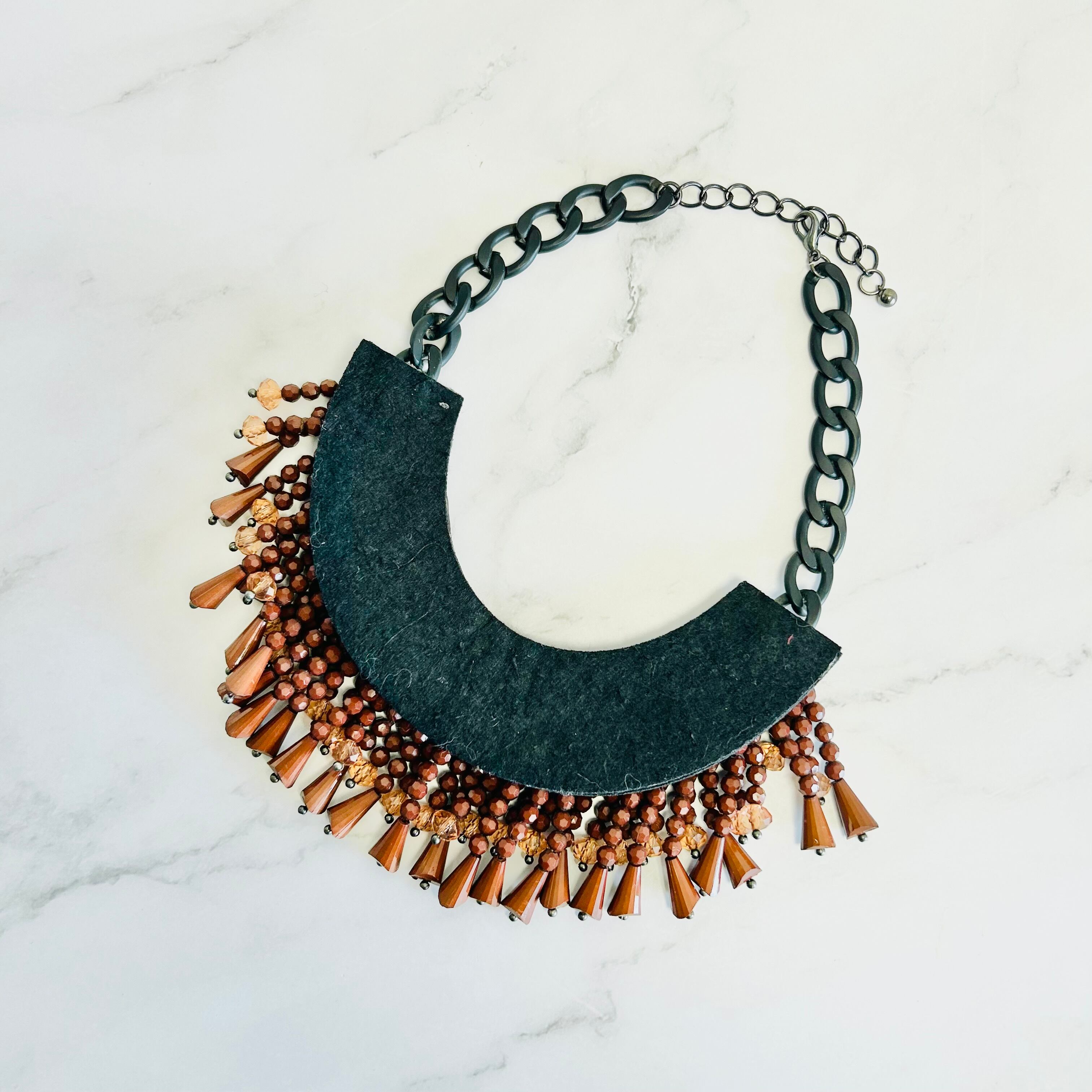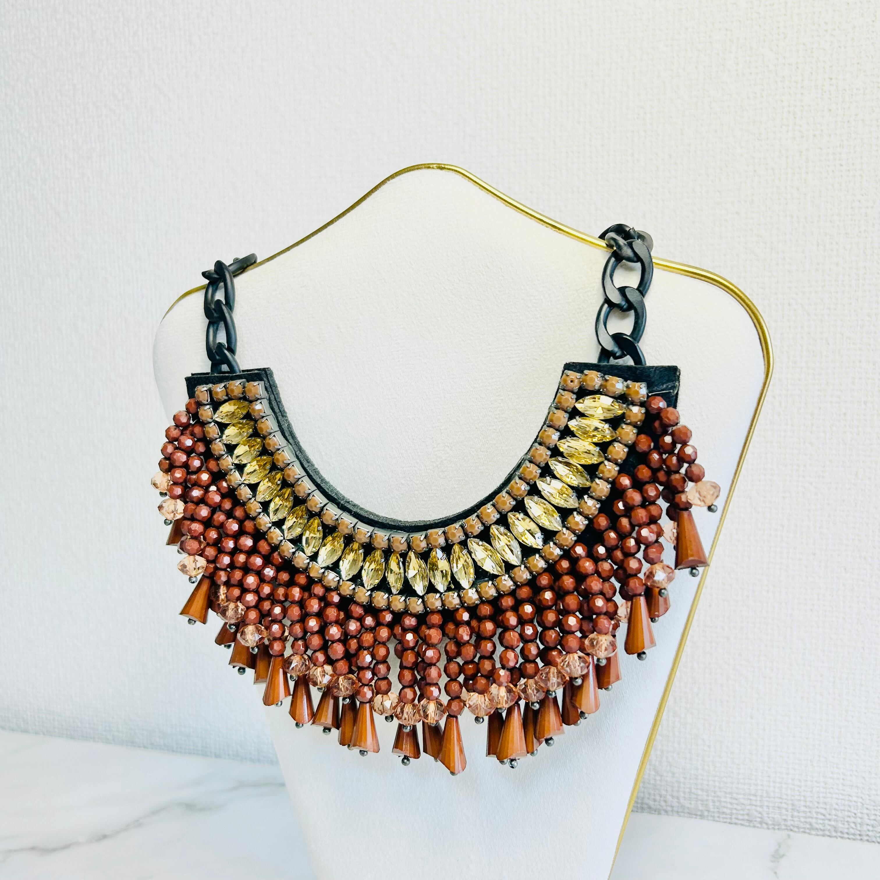 ブラウン、ゴールドカラー✖️ブラックカラーのネックレスです。