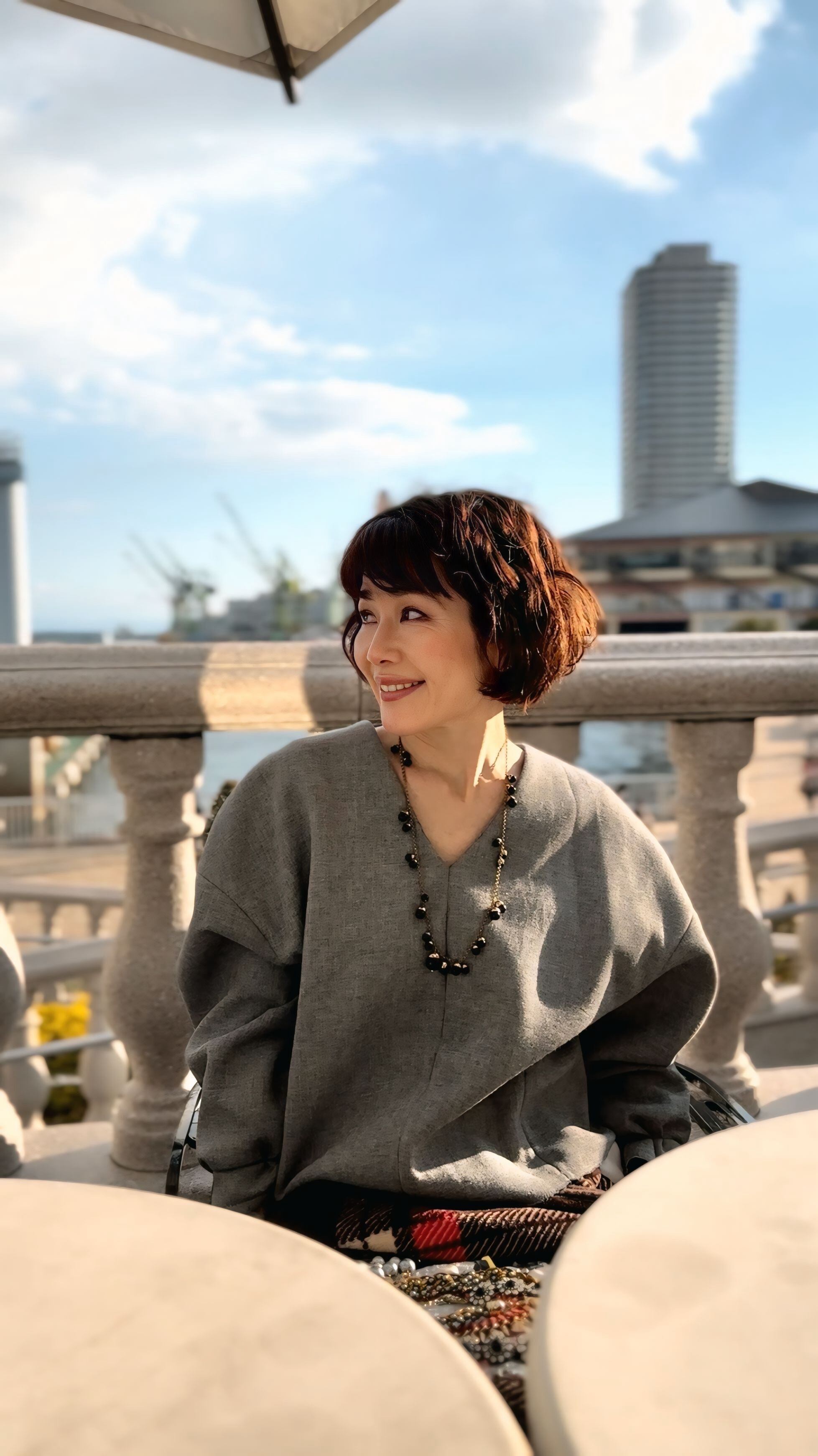 ブラックのチャームが首元でさりげなく存在感を示し、お肌をワントーン明るく魅せてくれます♡