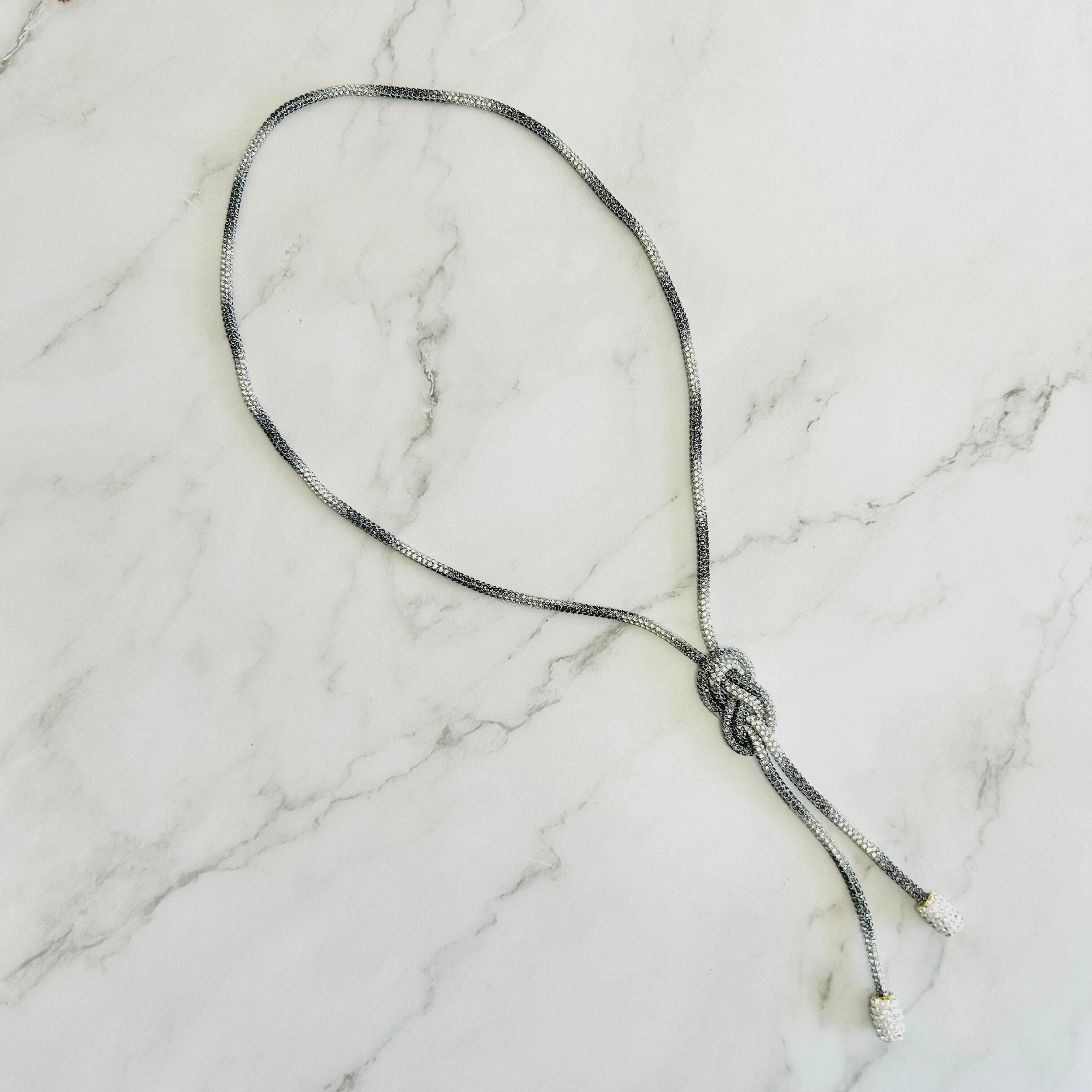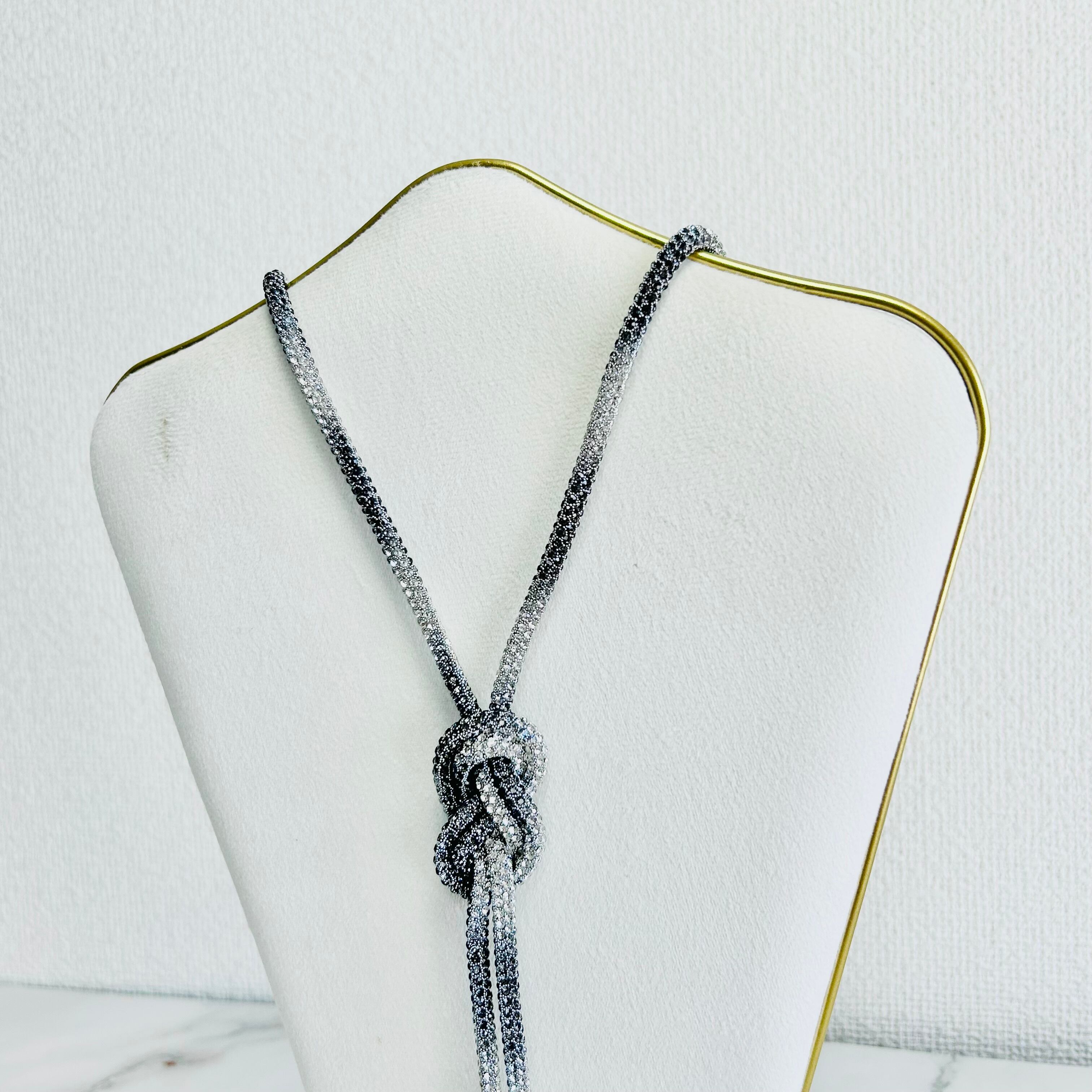 クリスタル、ブラック、ホワイトカラーのロングタイプネックレスです。