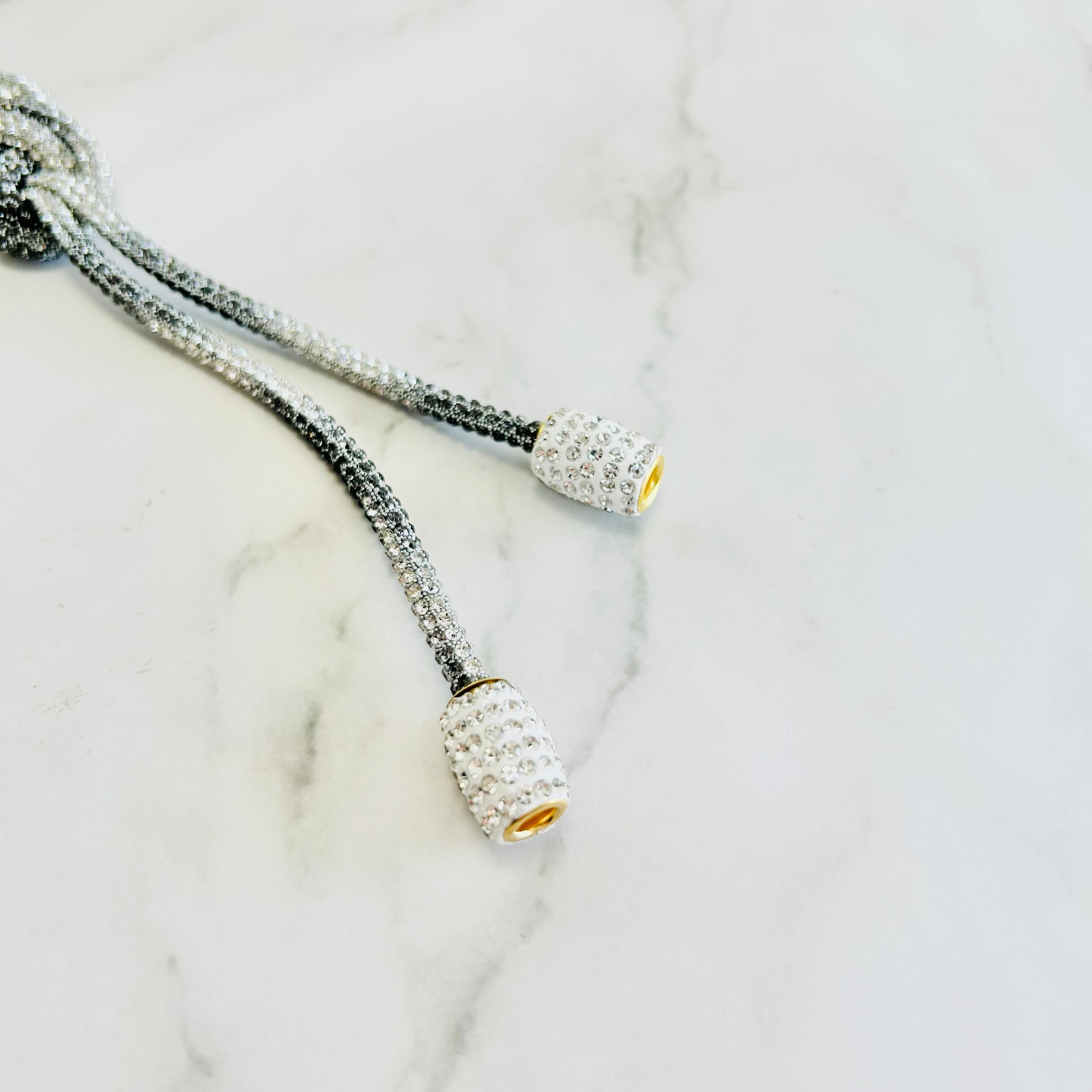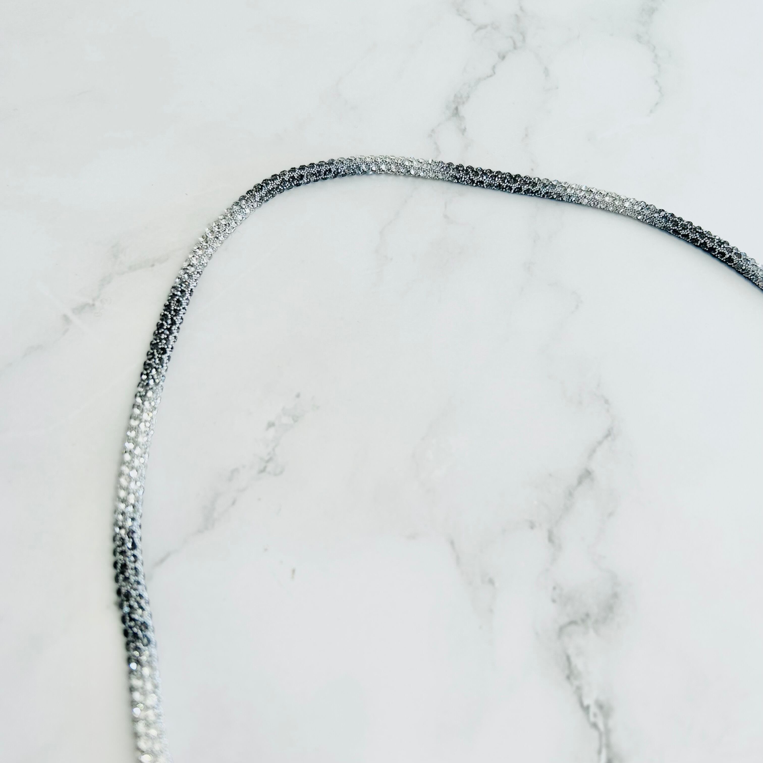 小粒のビジューで美しいモノトーンのグラデーションを表現し、シンプルでありながらも目を惹くおしゃれなデザインです。