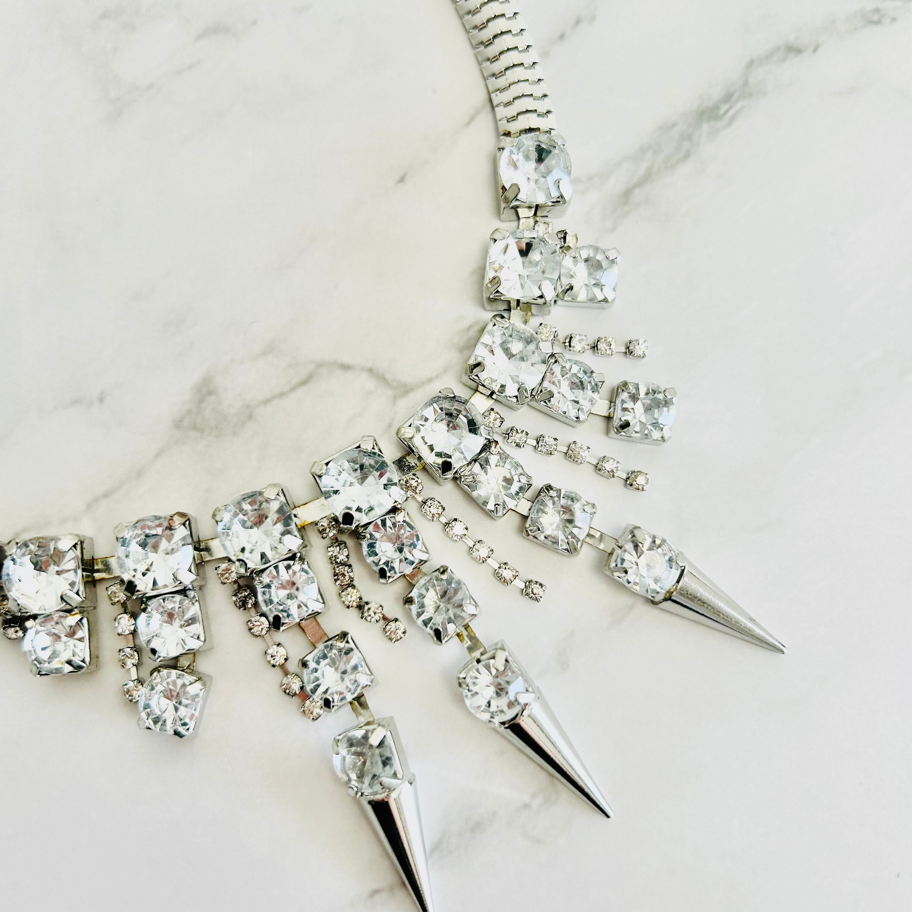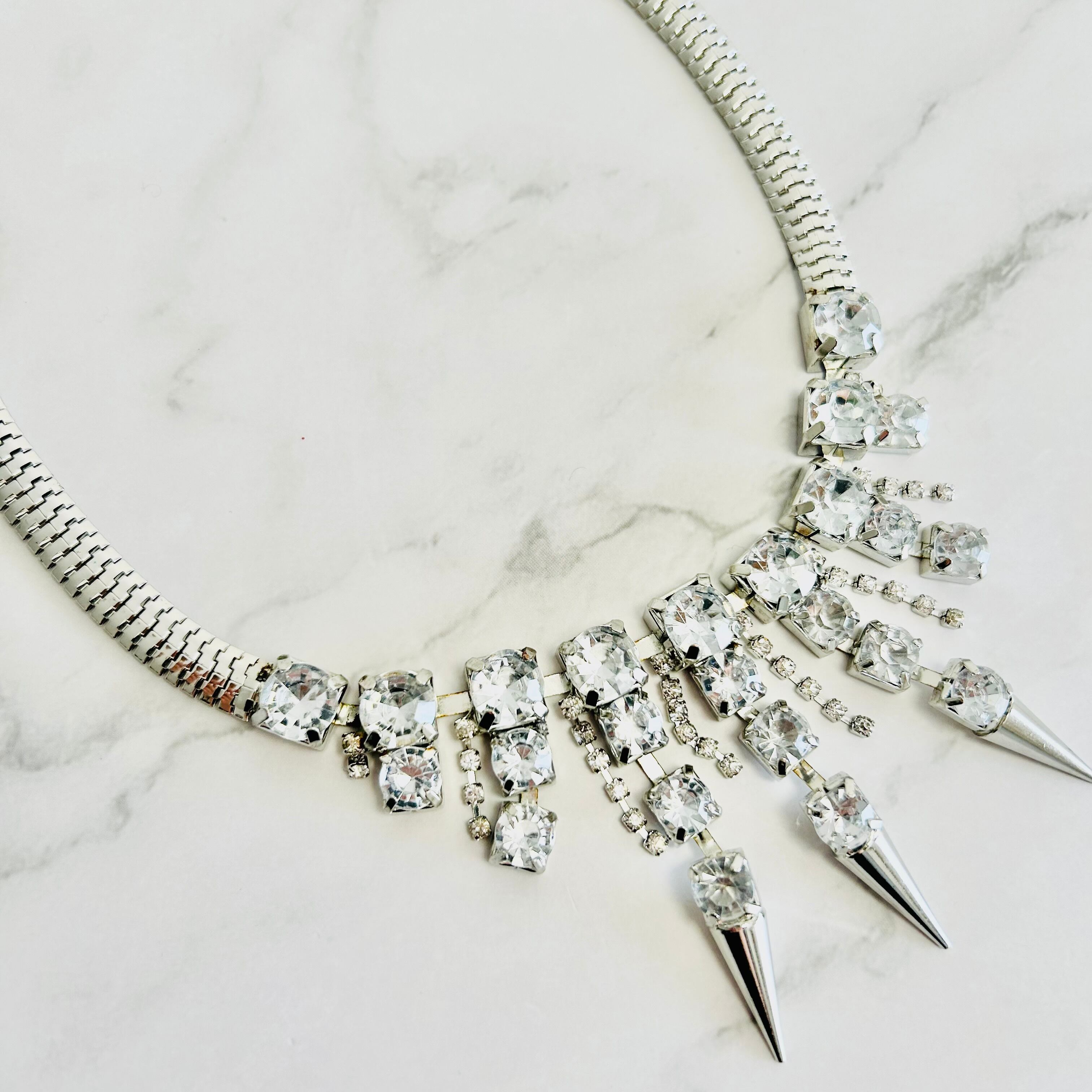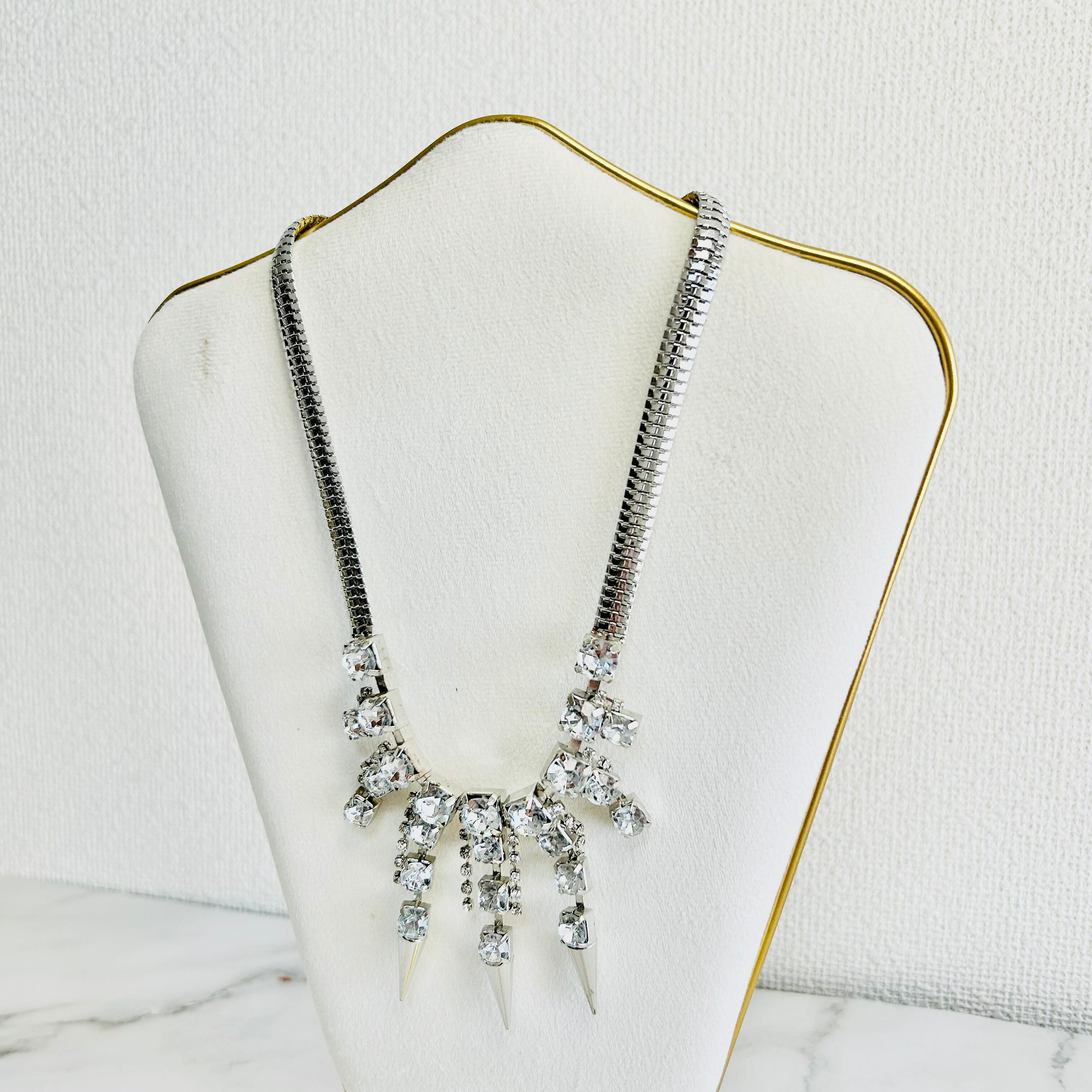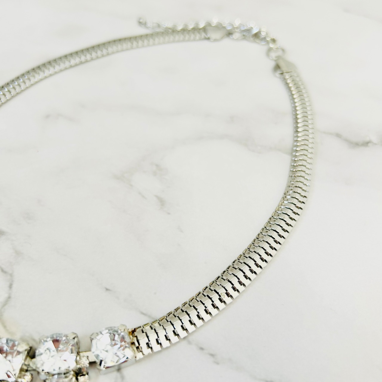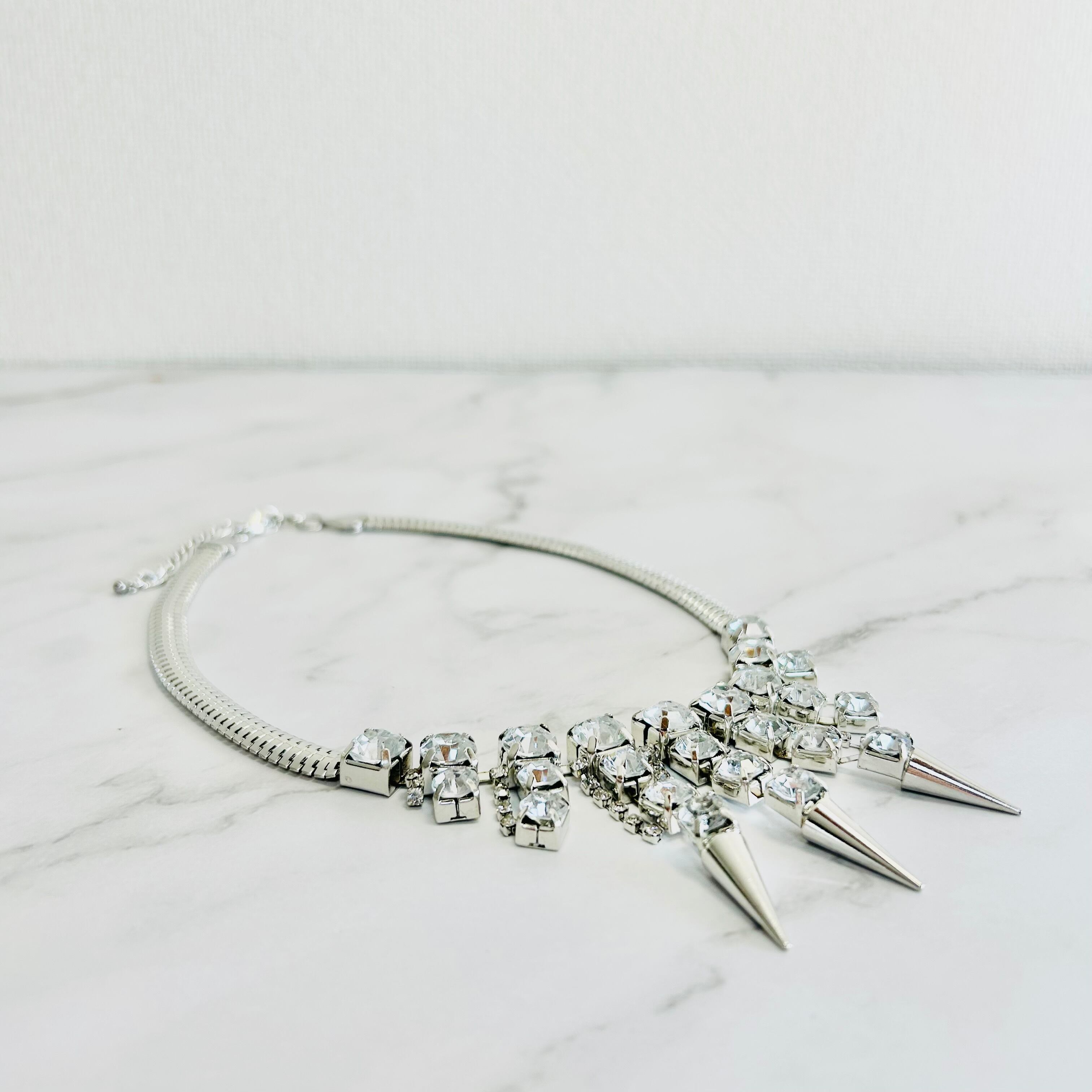 カットを施した美しく輝くビジューをシルバーカラーと組み合わせてスキッとした色味で統一したデザインです。