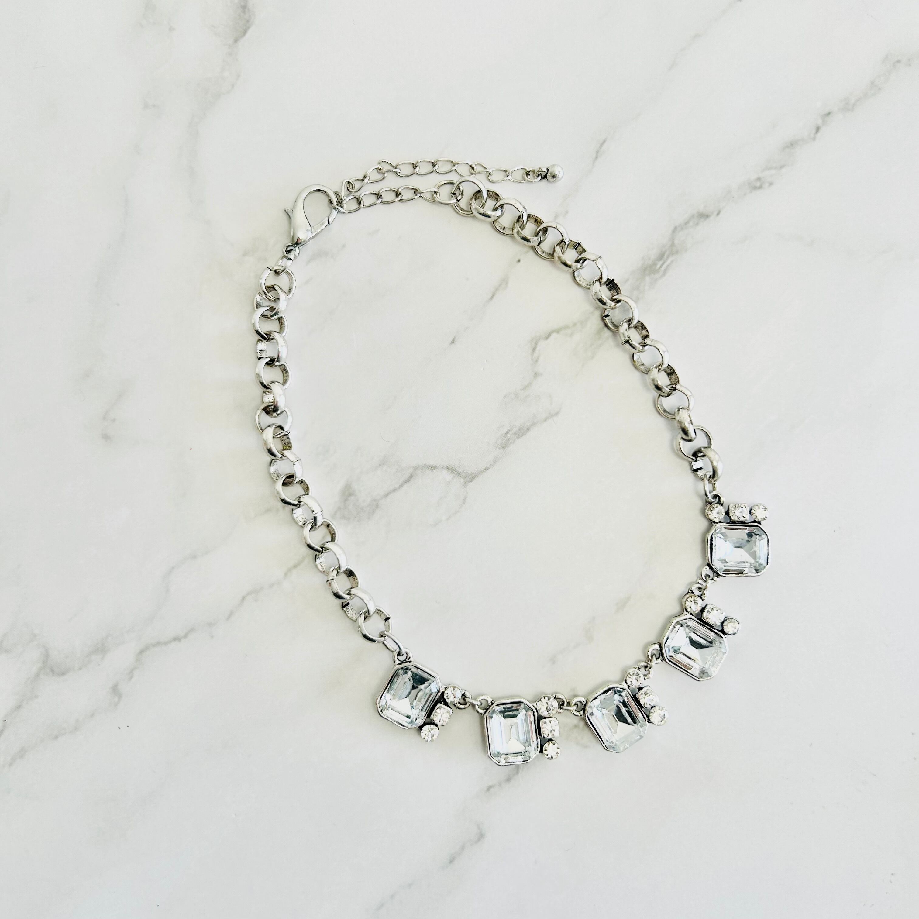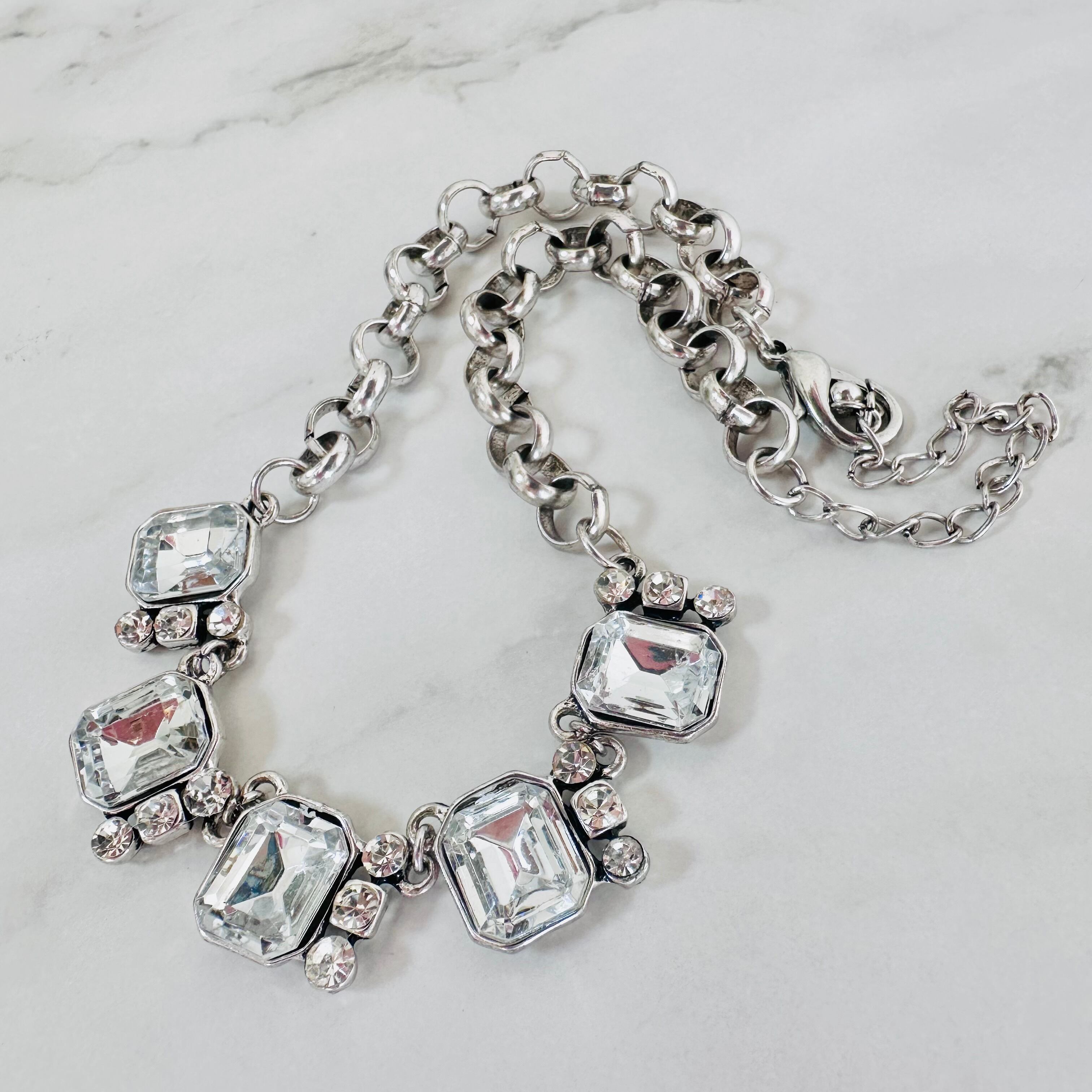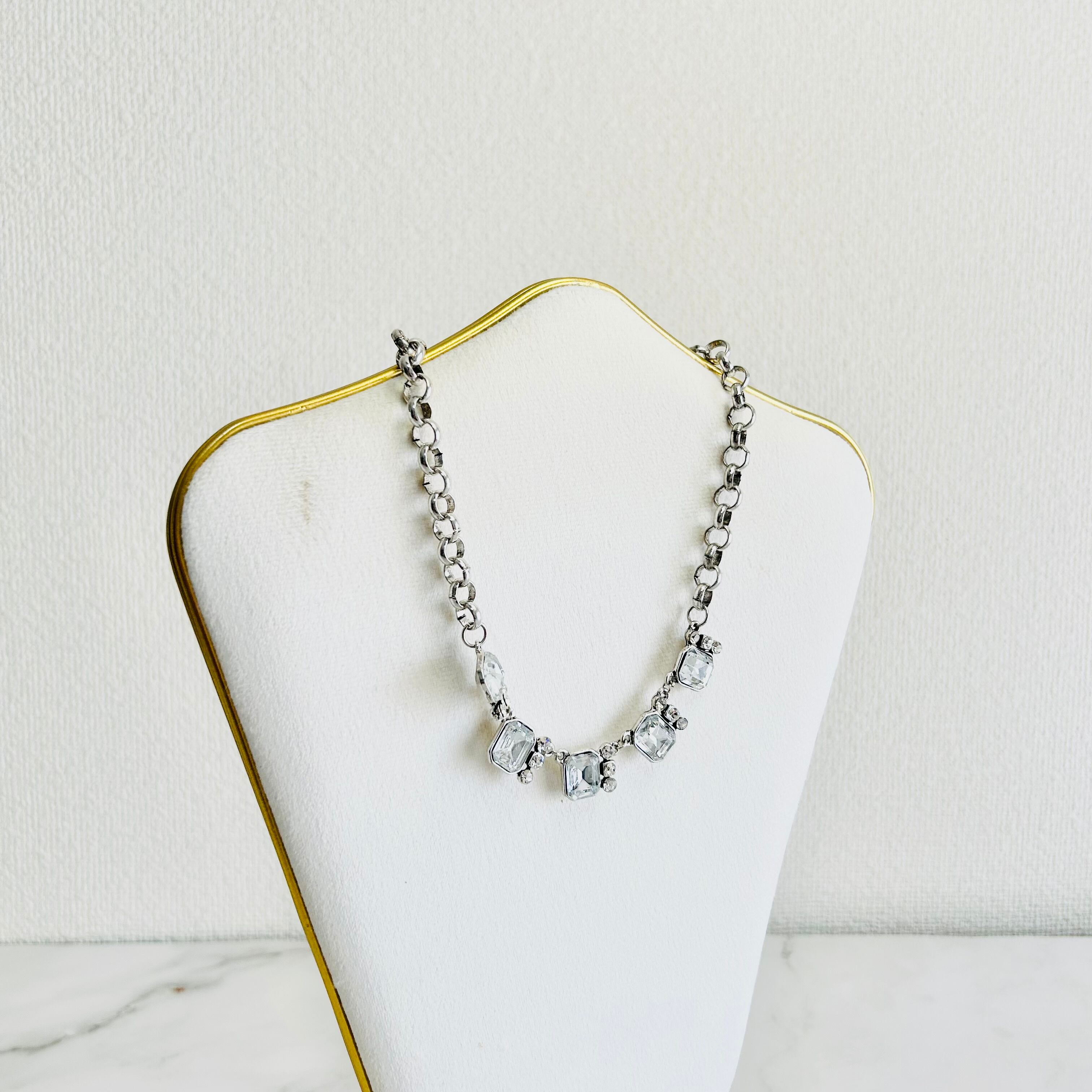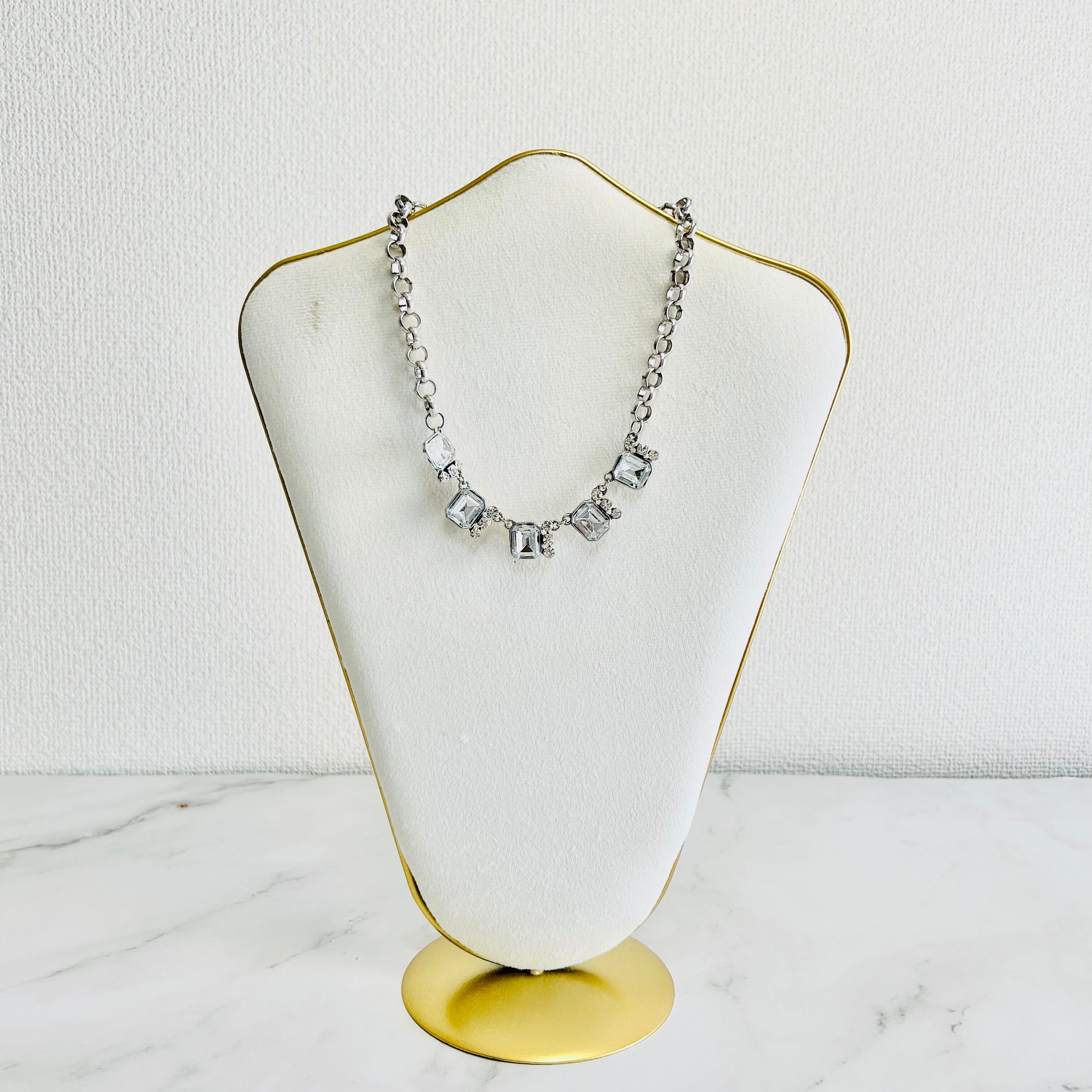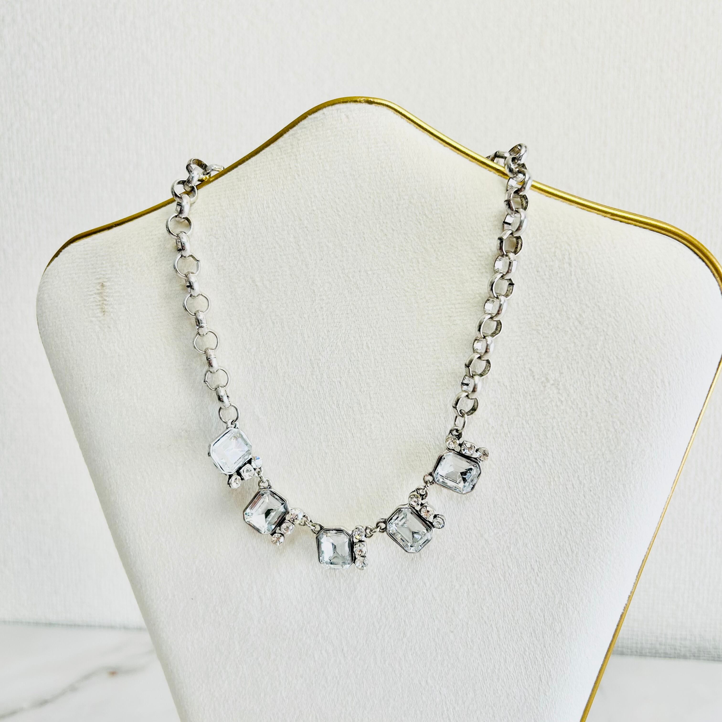 クリアビジューの輝きが首元を美しく彩り、シルバーのチェーンがさりげなくモダンな雰囲気を演出します。 ☆