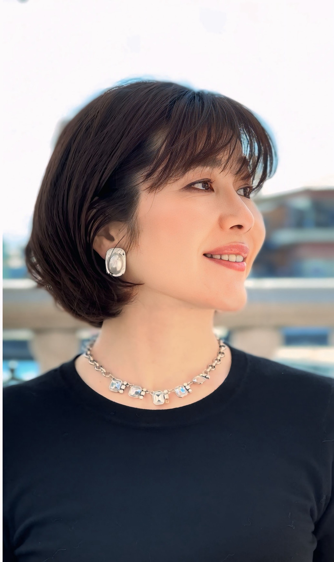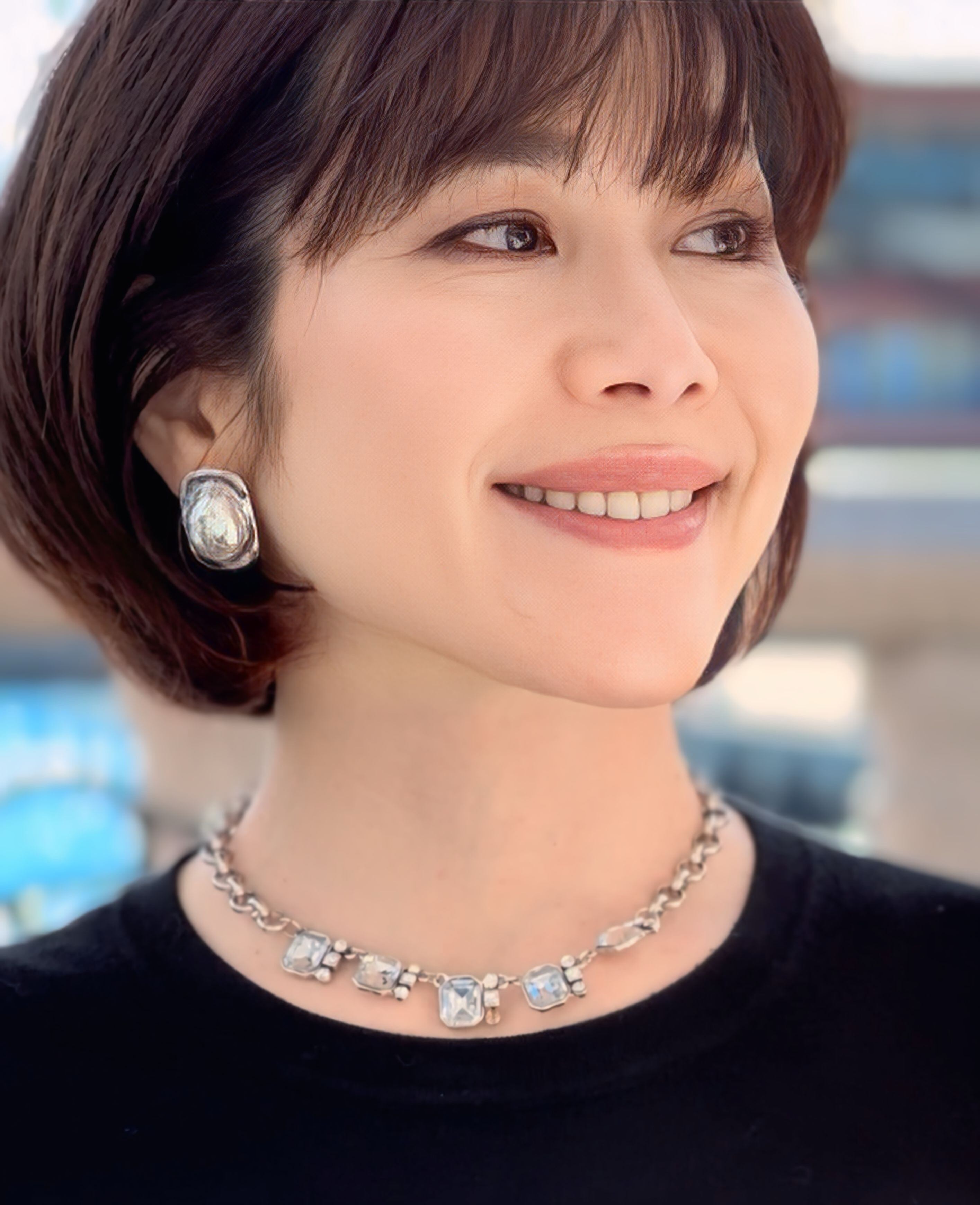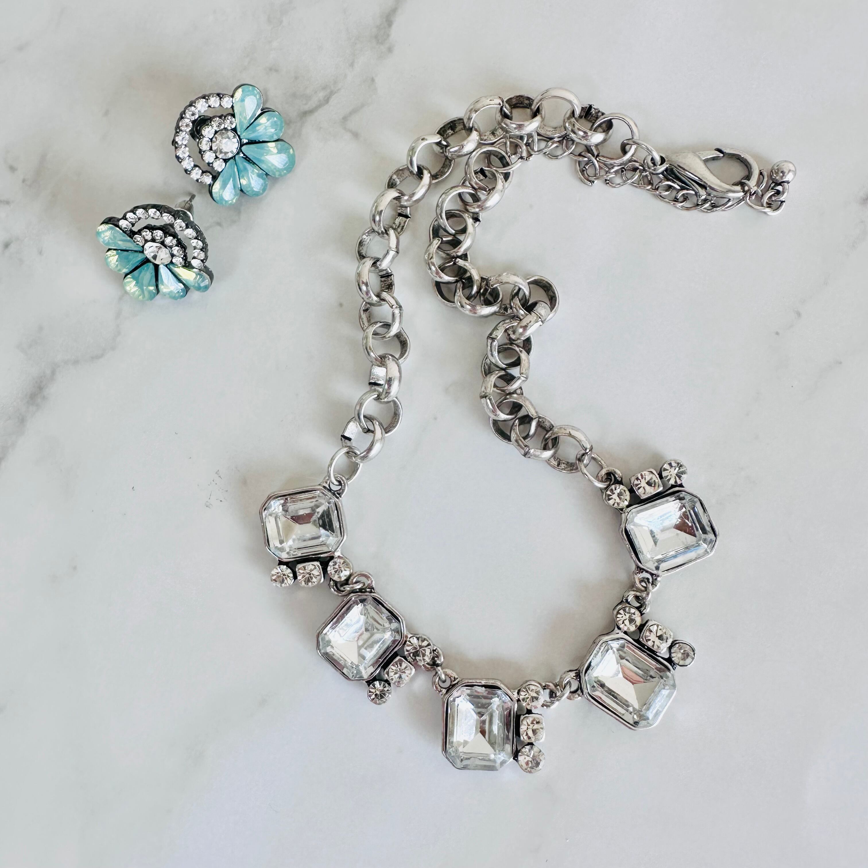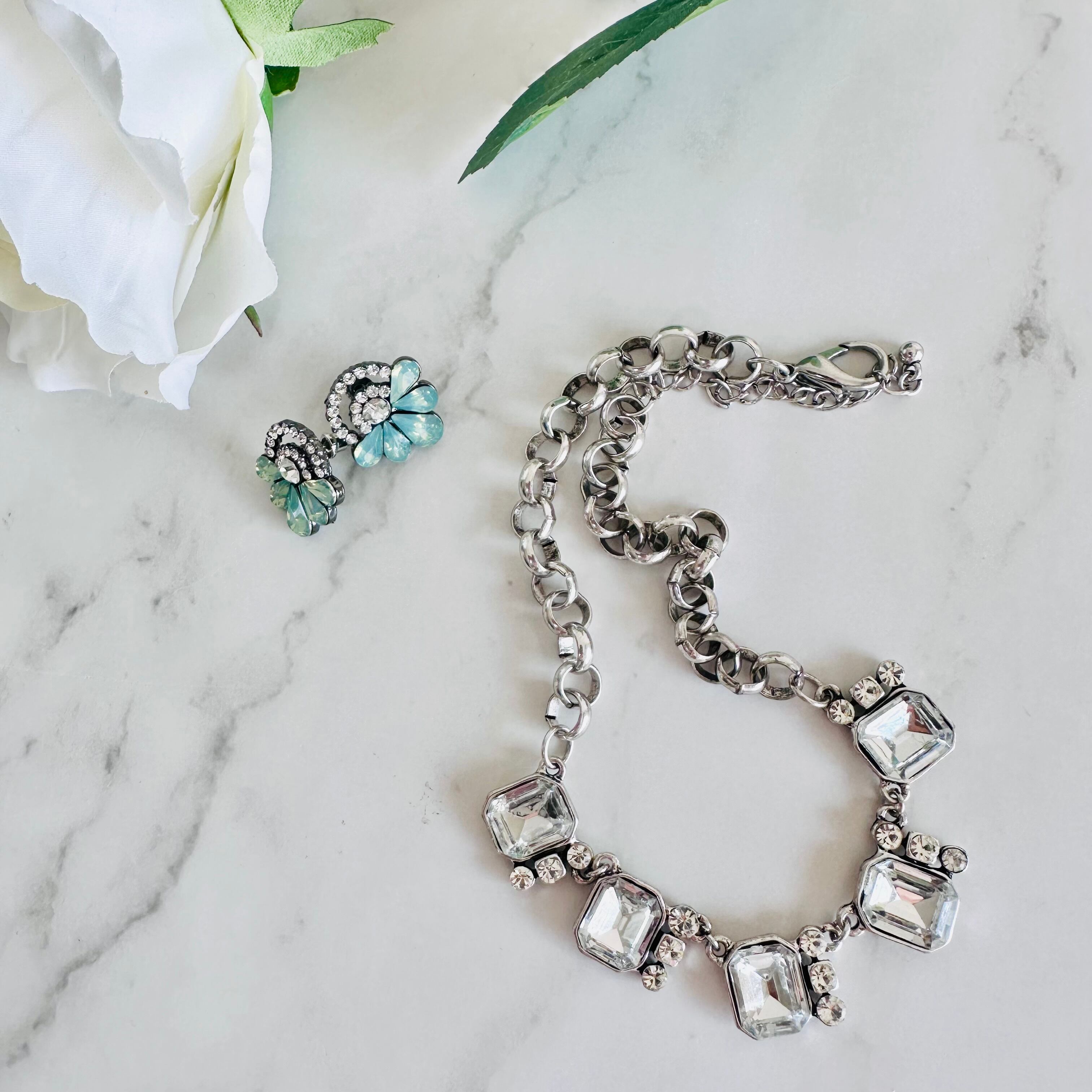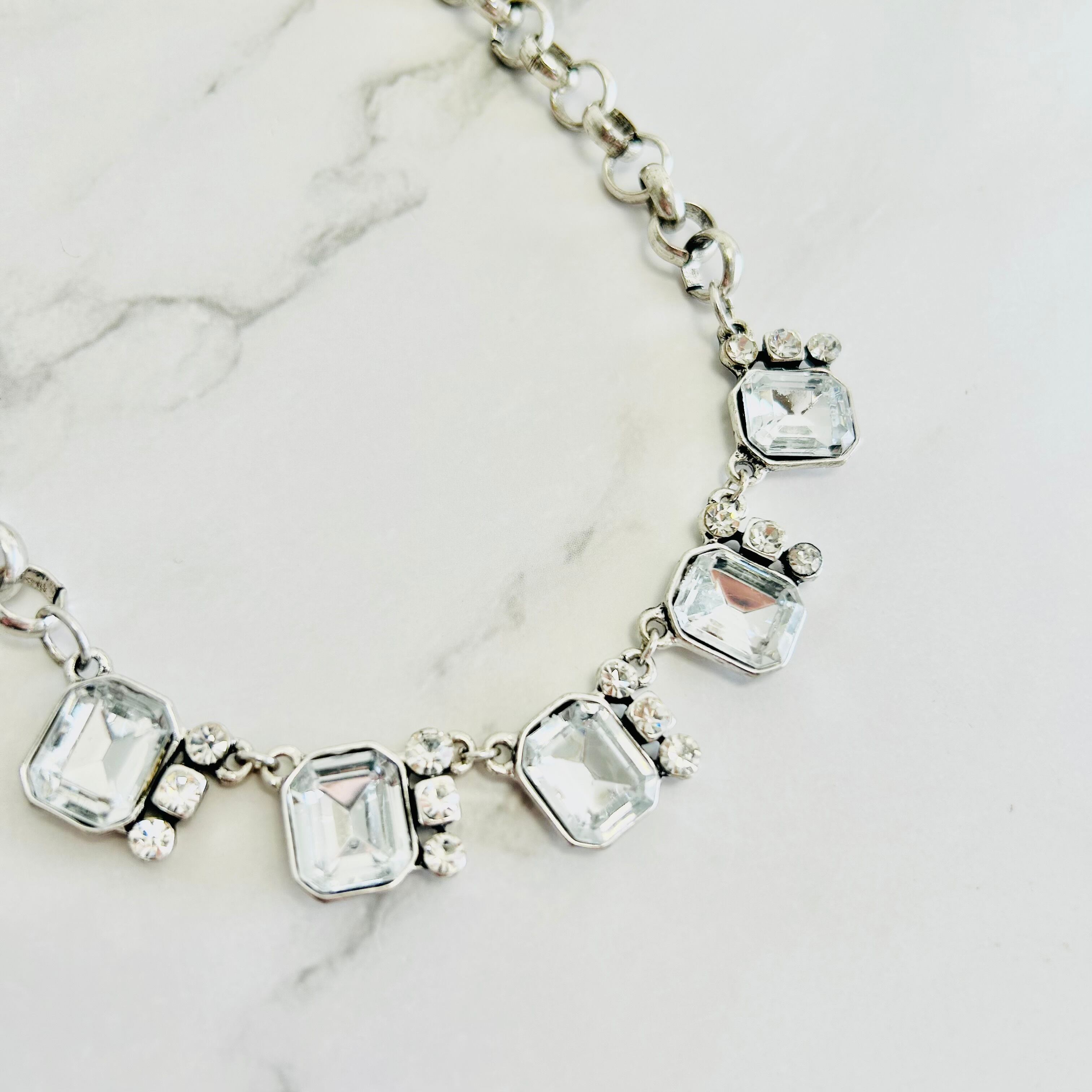 クリアビジューの輝きが首元を美しく彩り、シルバーのチェーンがさりげなくモダンな雰囲気を演出します。 ☆