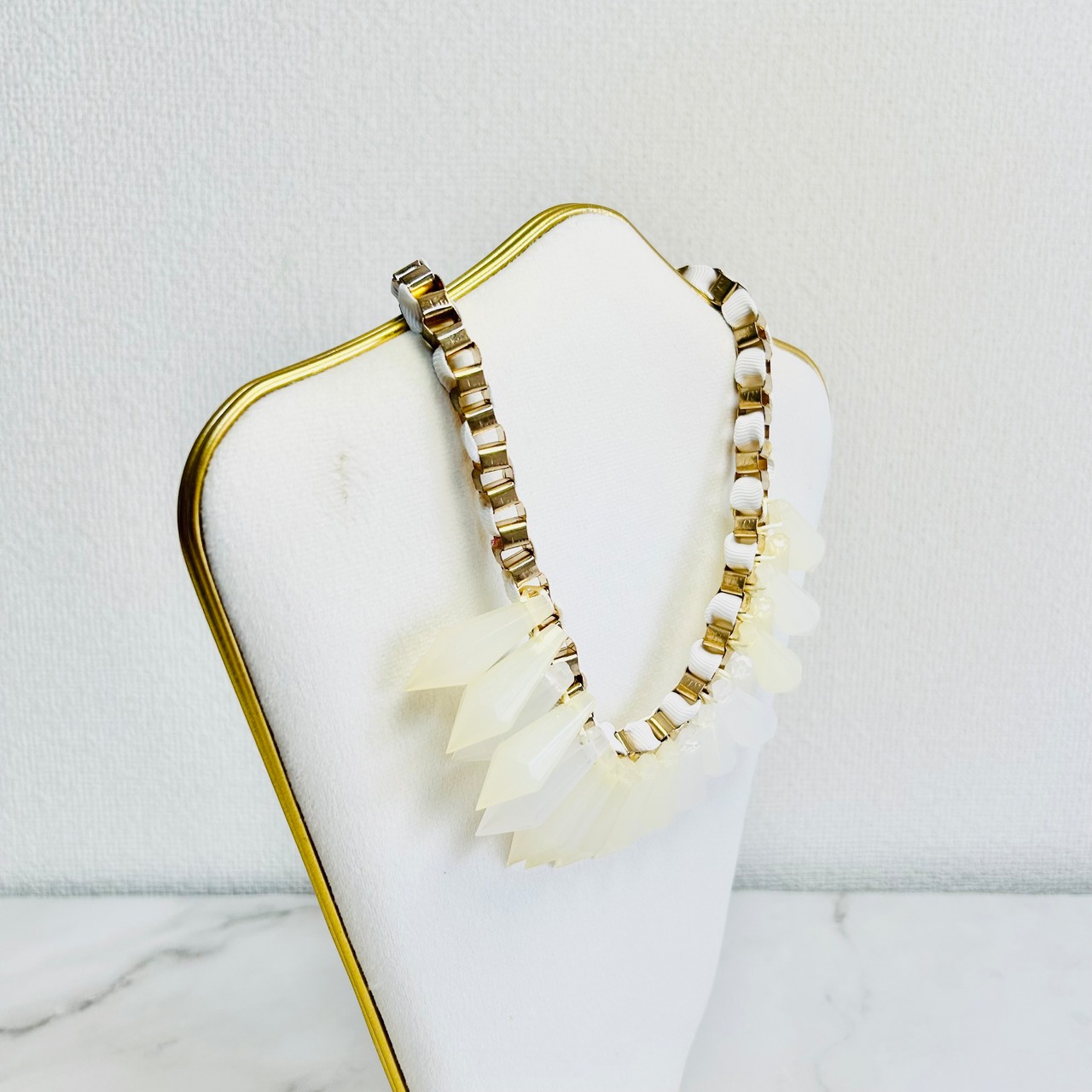 クリアホワイト✖️アンティークゴールドカラーのネックレスです。