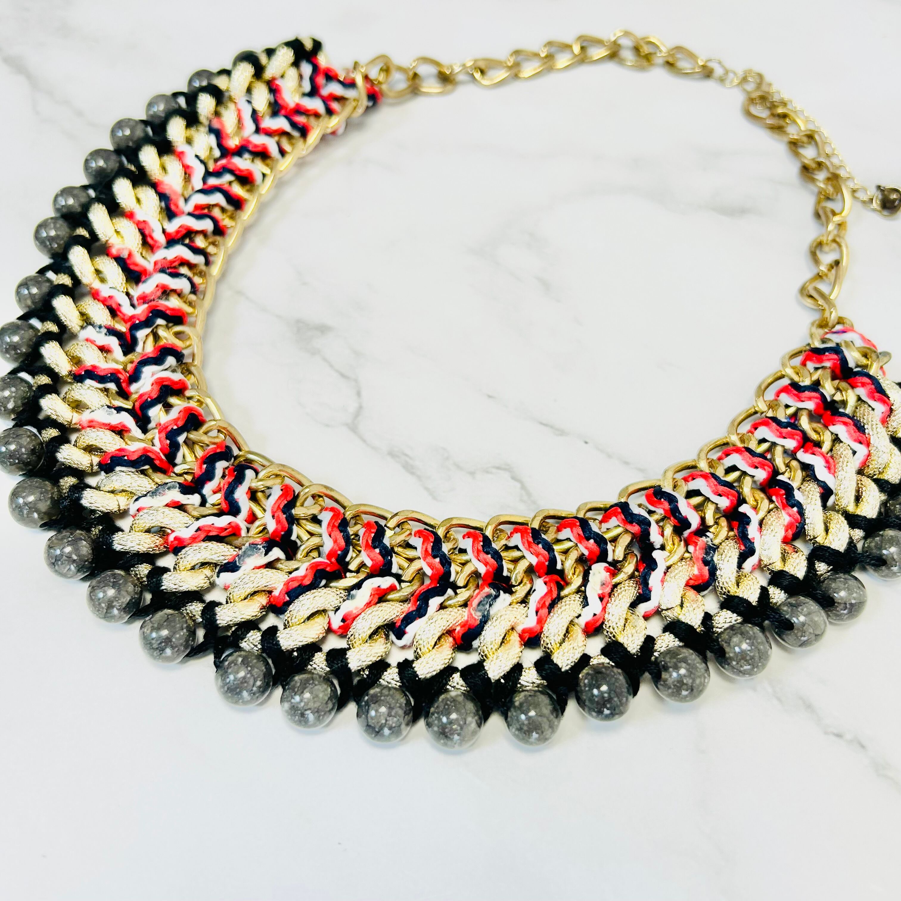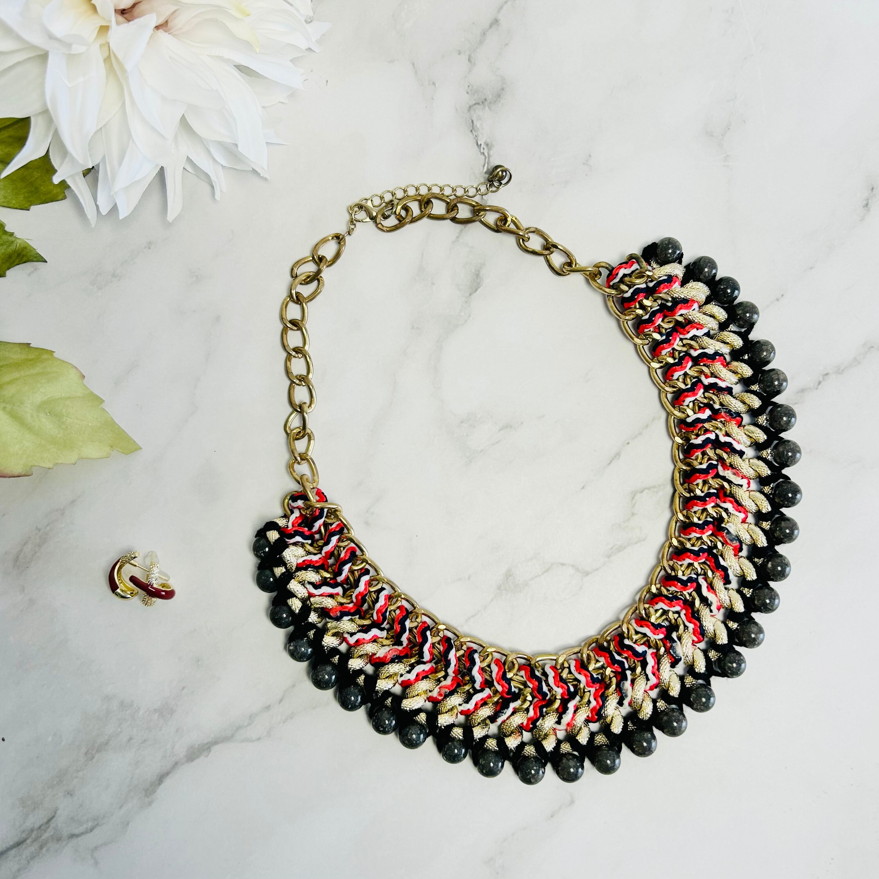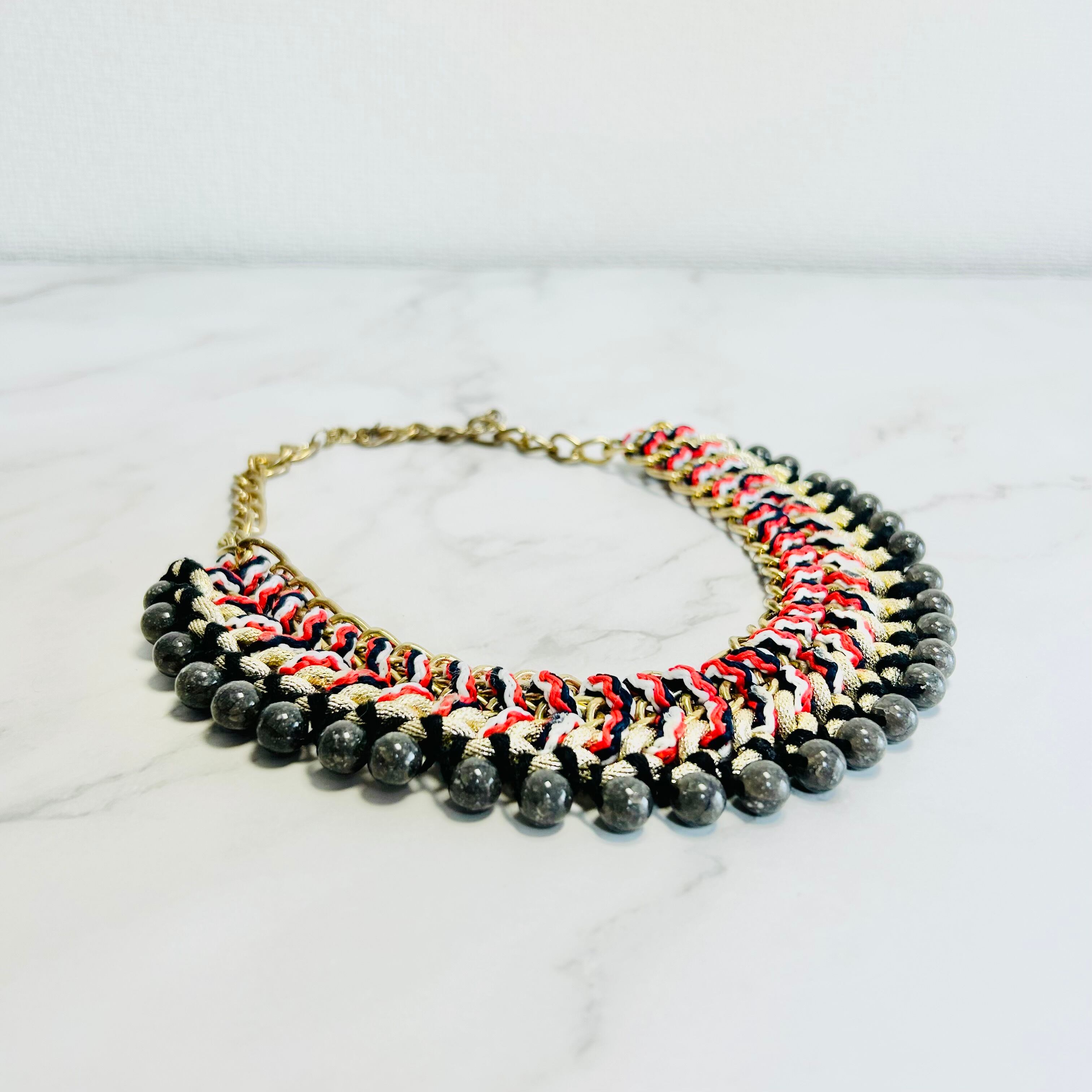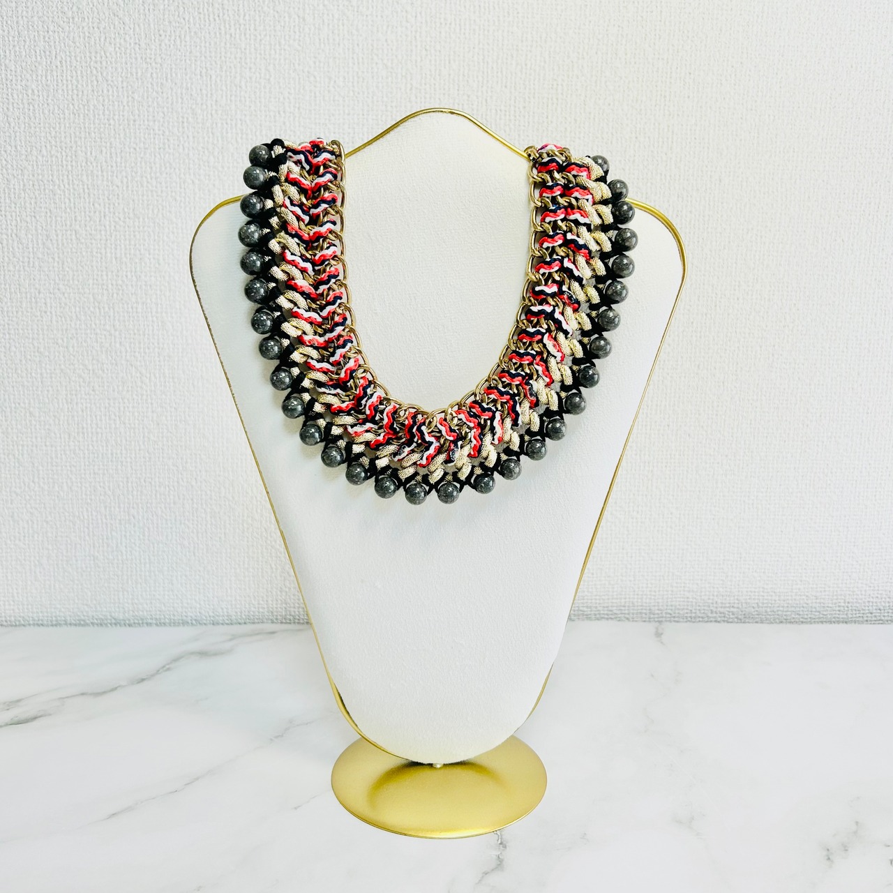 レッド、ブラック、ホワイトカラー✖️アンティークゴールドカラーのネックレスです。