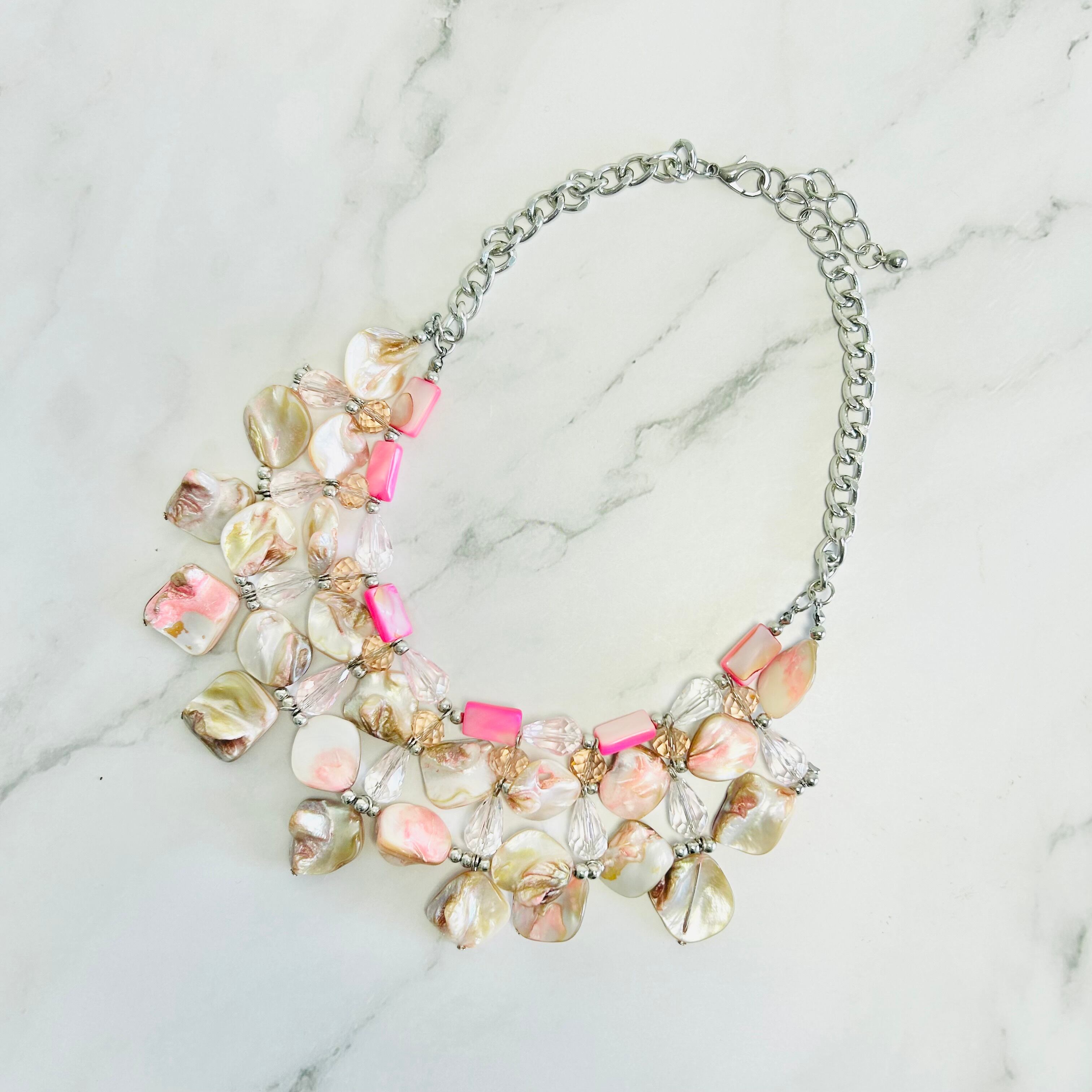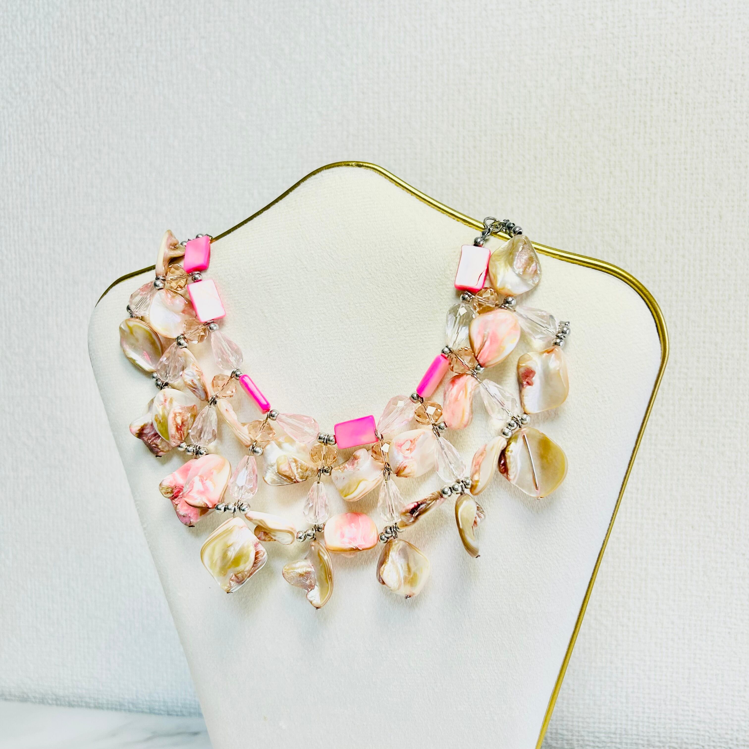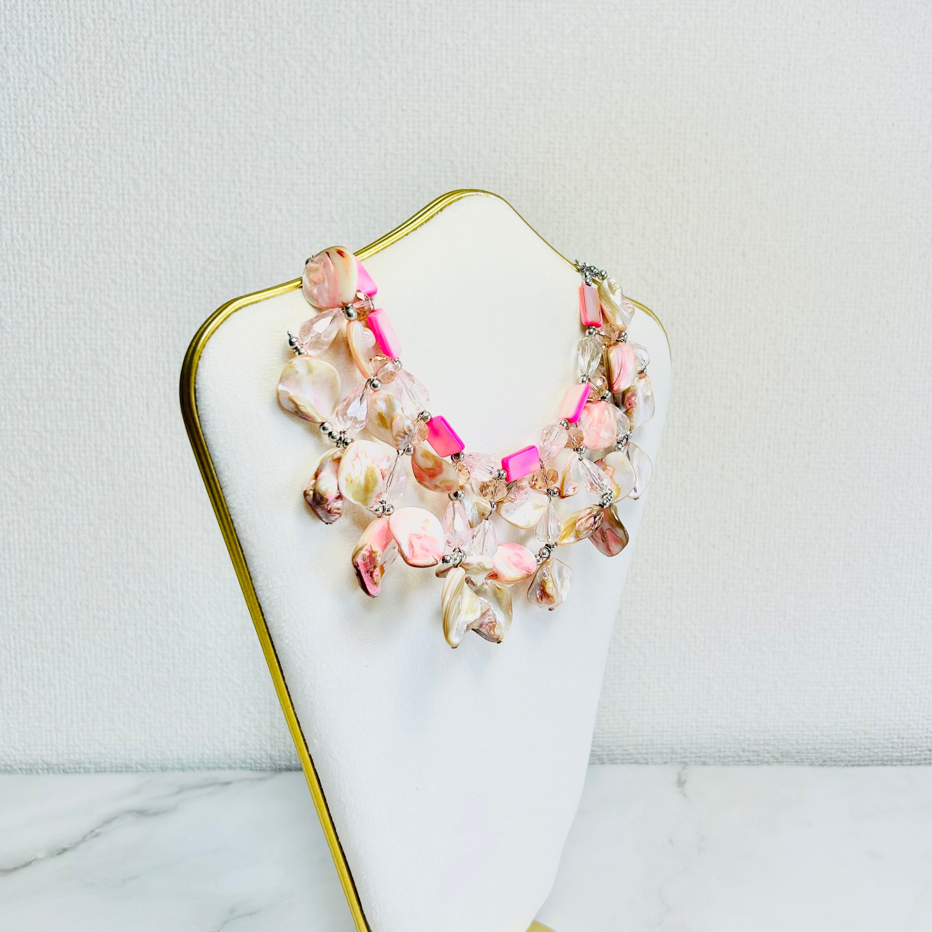 ピンク系、クリアカラー✖️シルバーカラーのネックレスです。