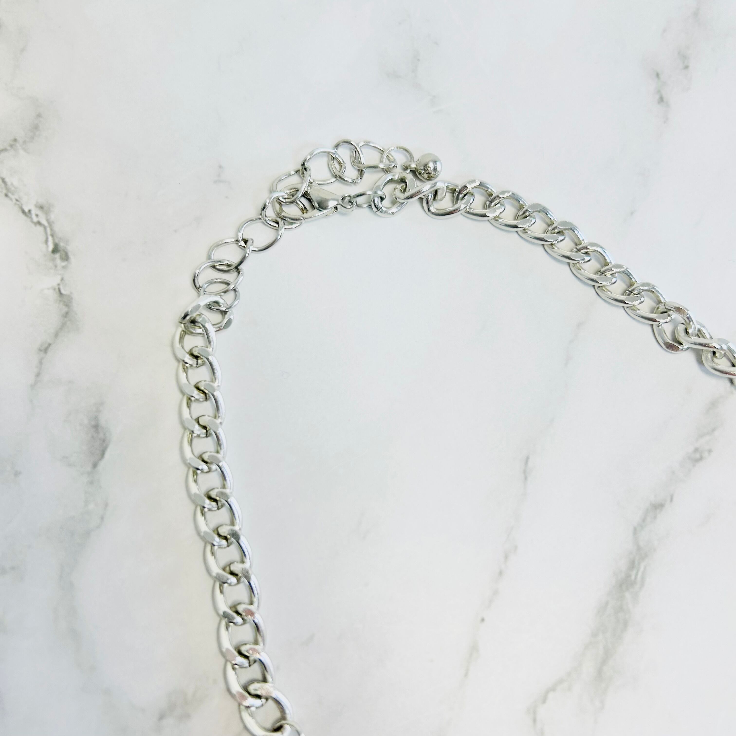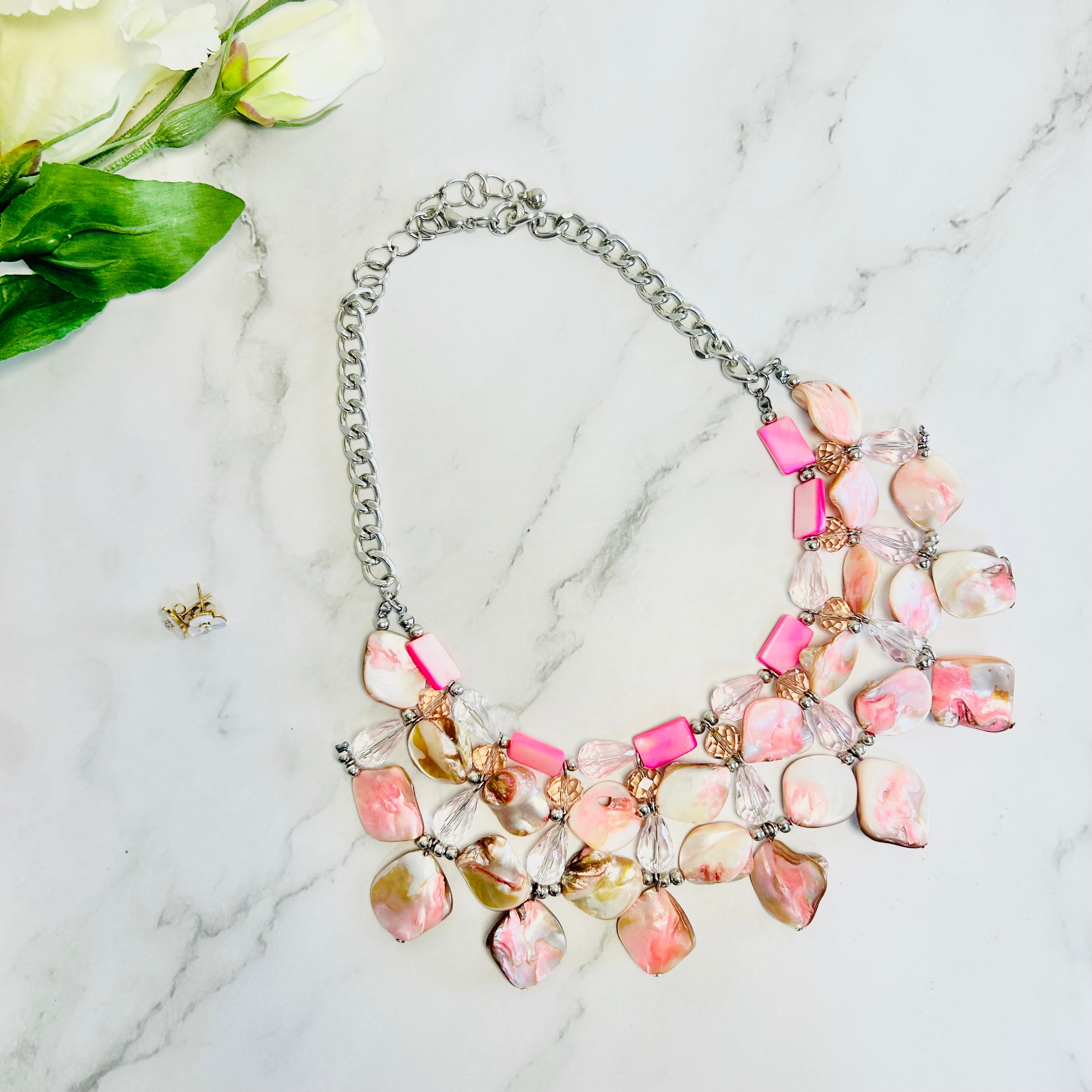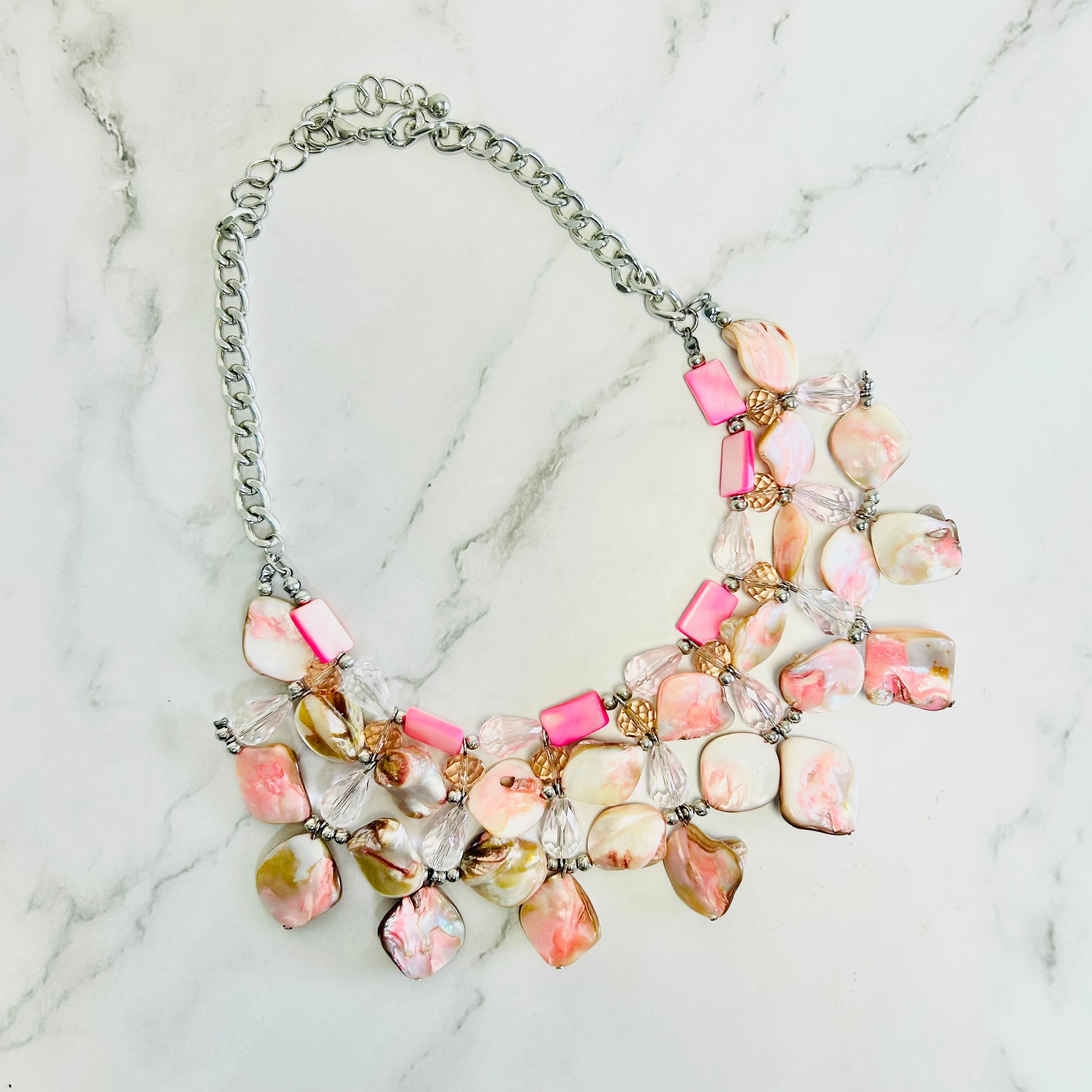 ピンク系、クリアカラー✖️シルバーカラーのネックレスです。