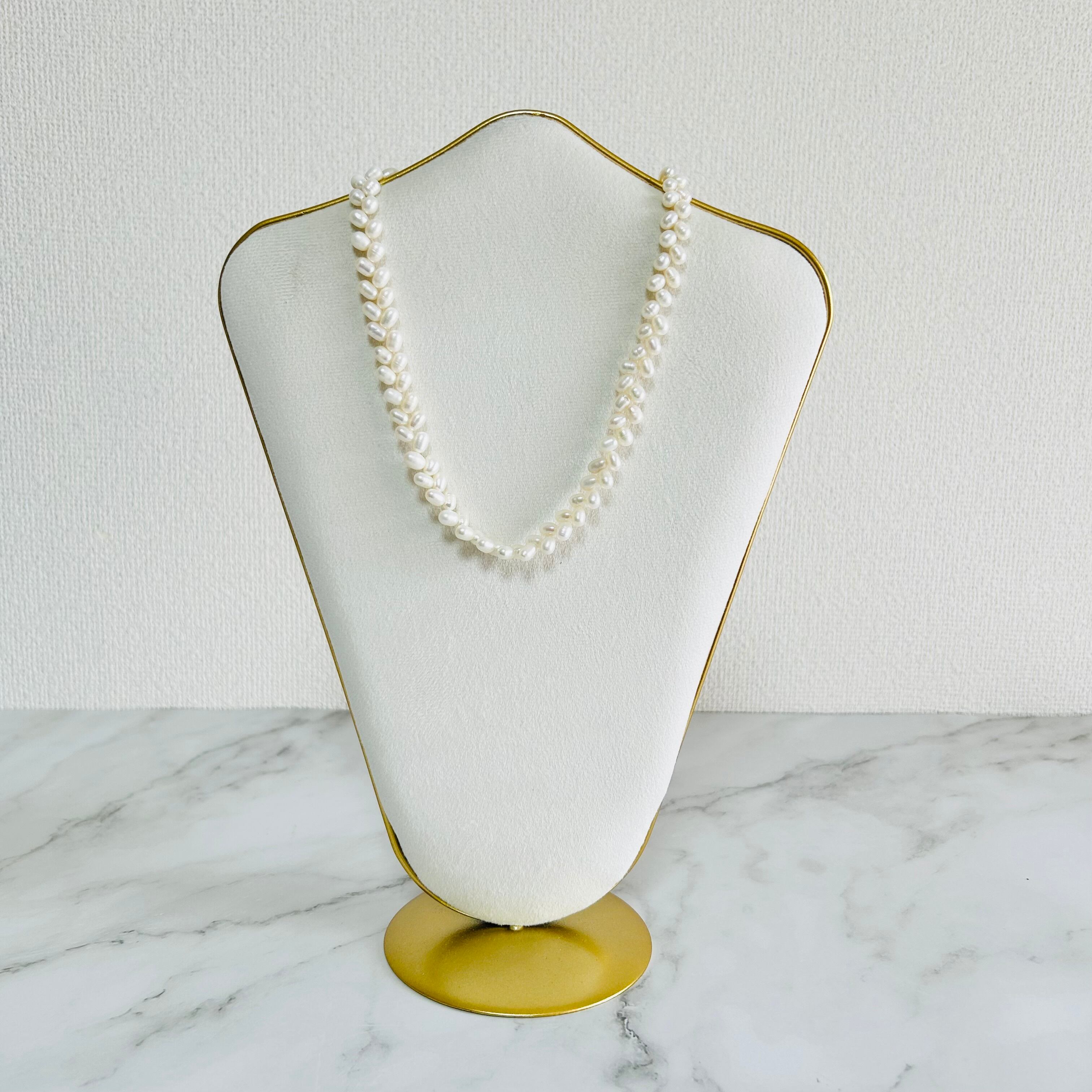 パールホワイト✖️ゴールドカラーのネックレスです。