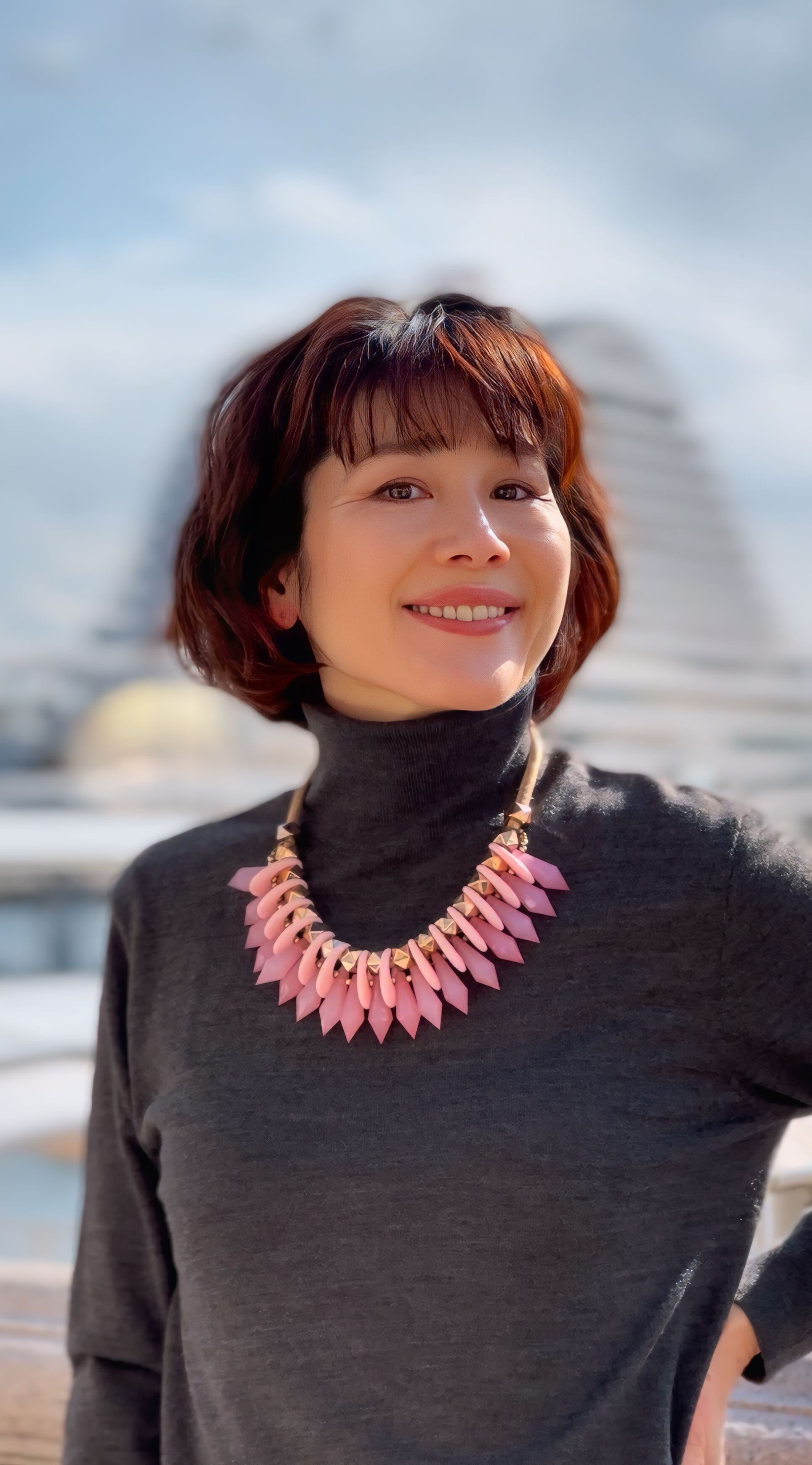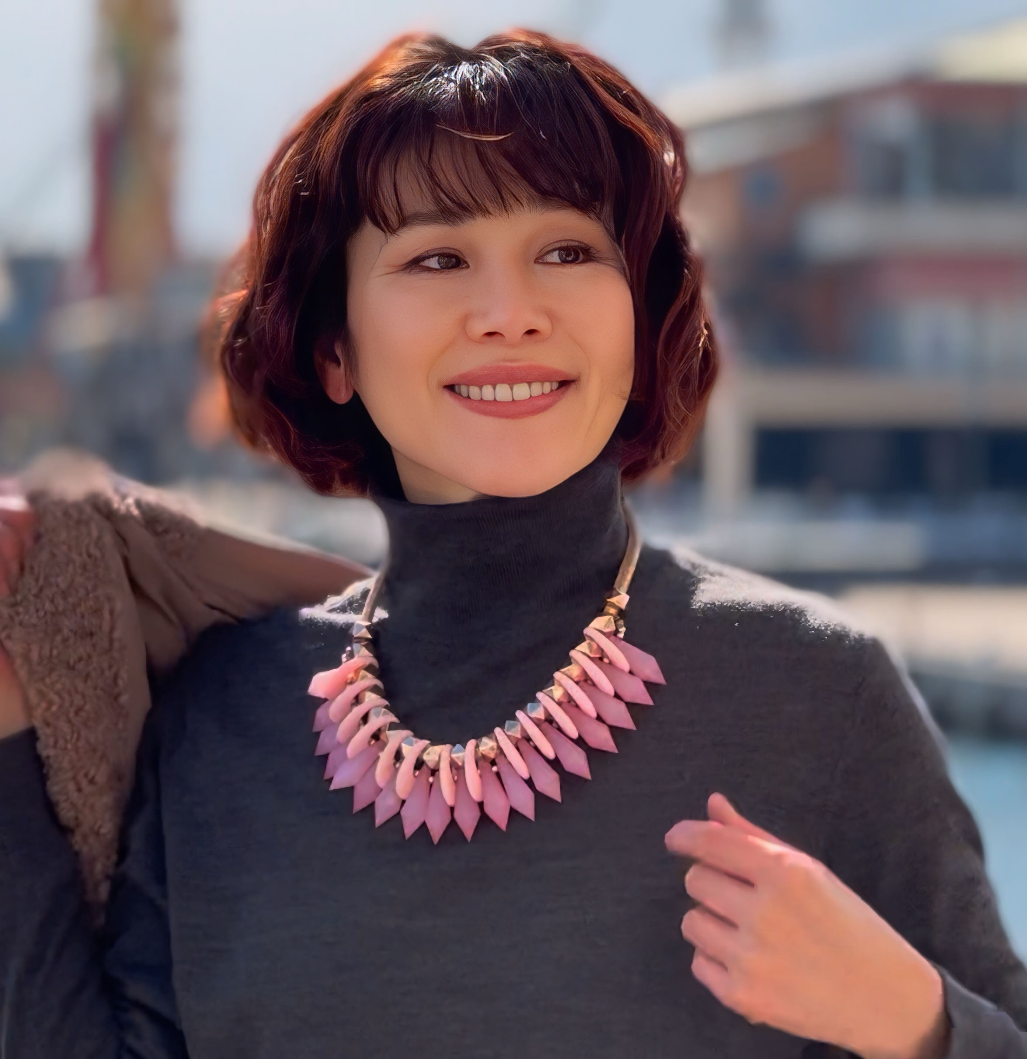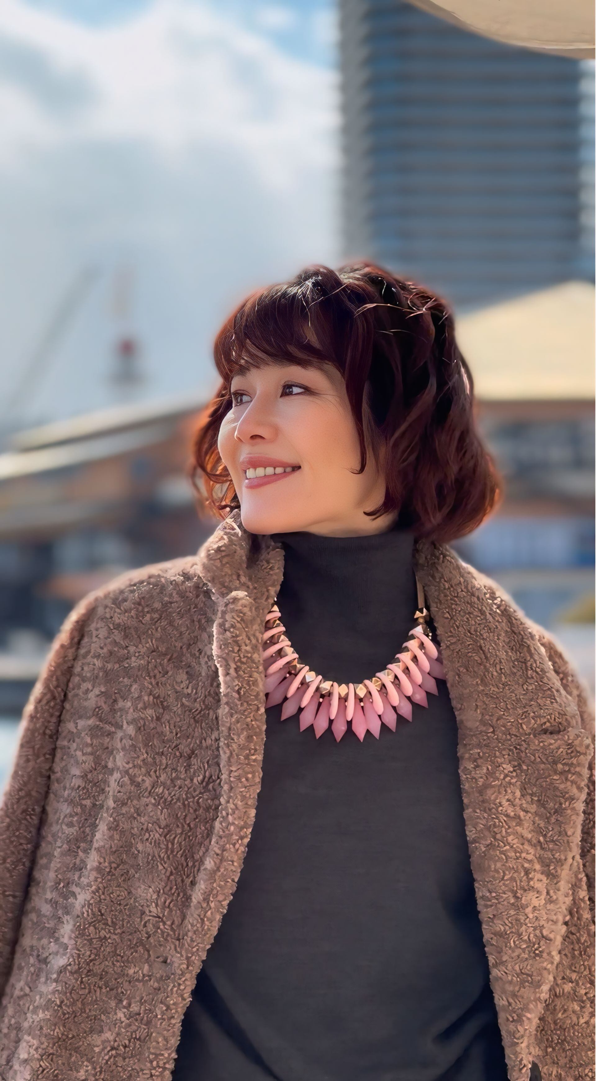ユニークなパーツがお首元でゴージャスに広がり華やかに映えます✨