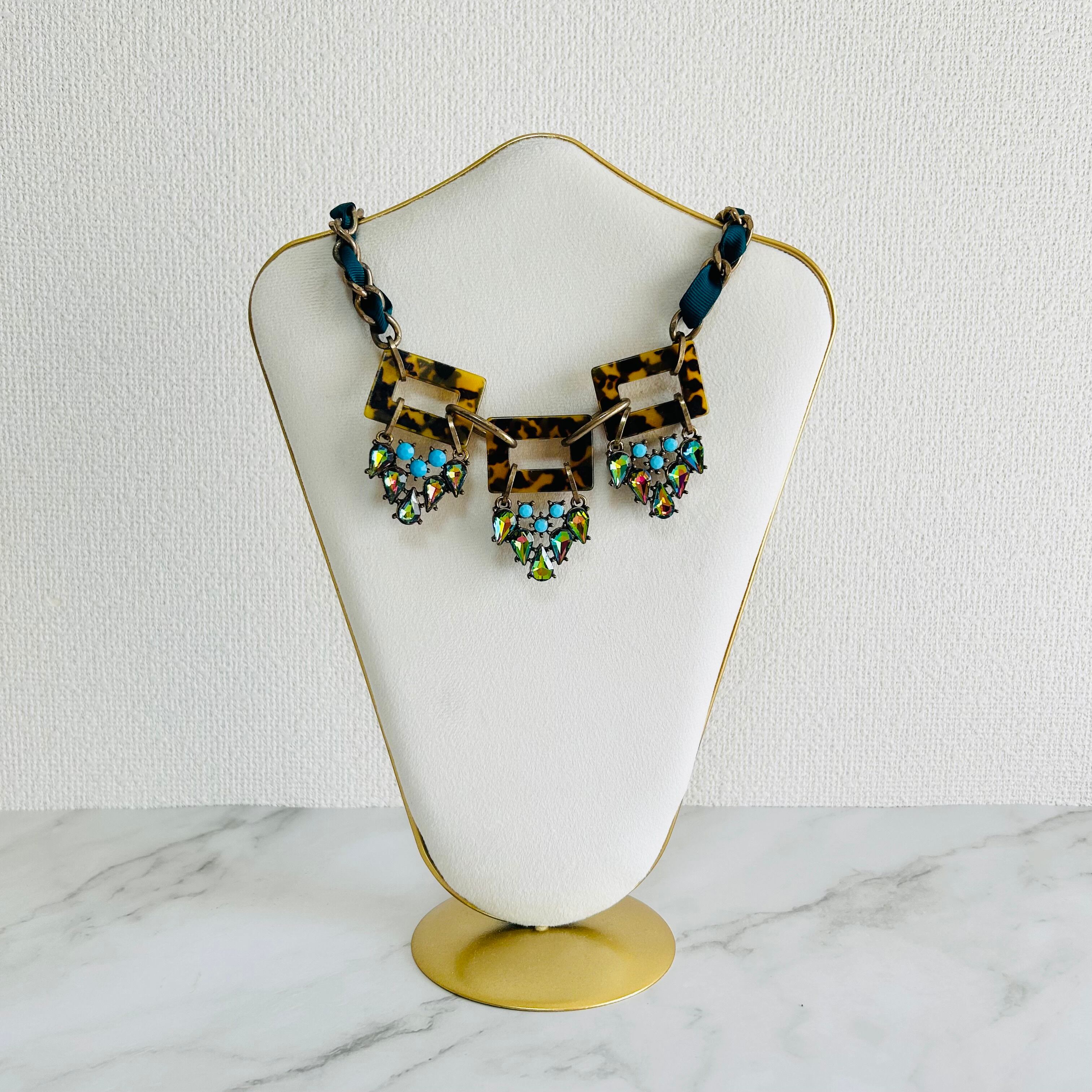 グリーン系、べっ甲✖️アンティークゴールドカラーのネックレスです。
