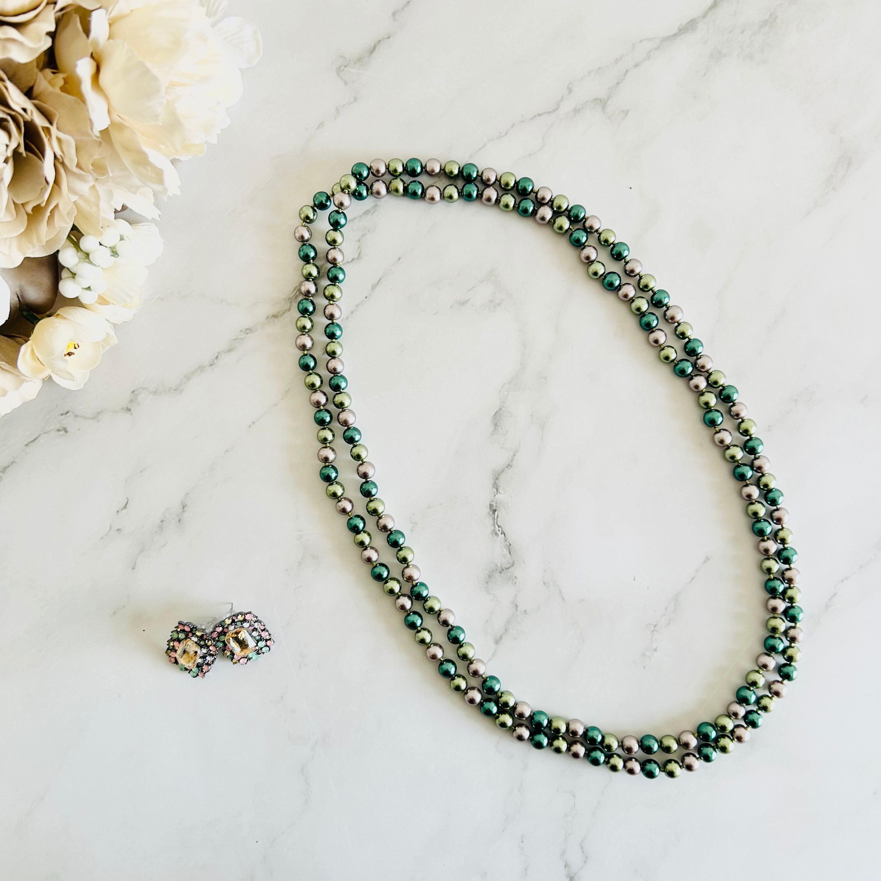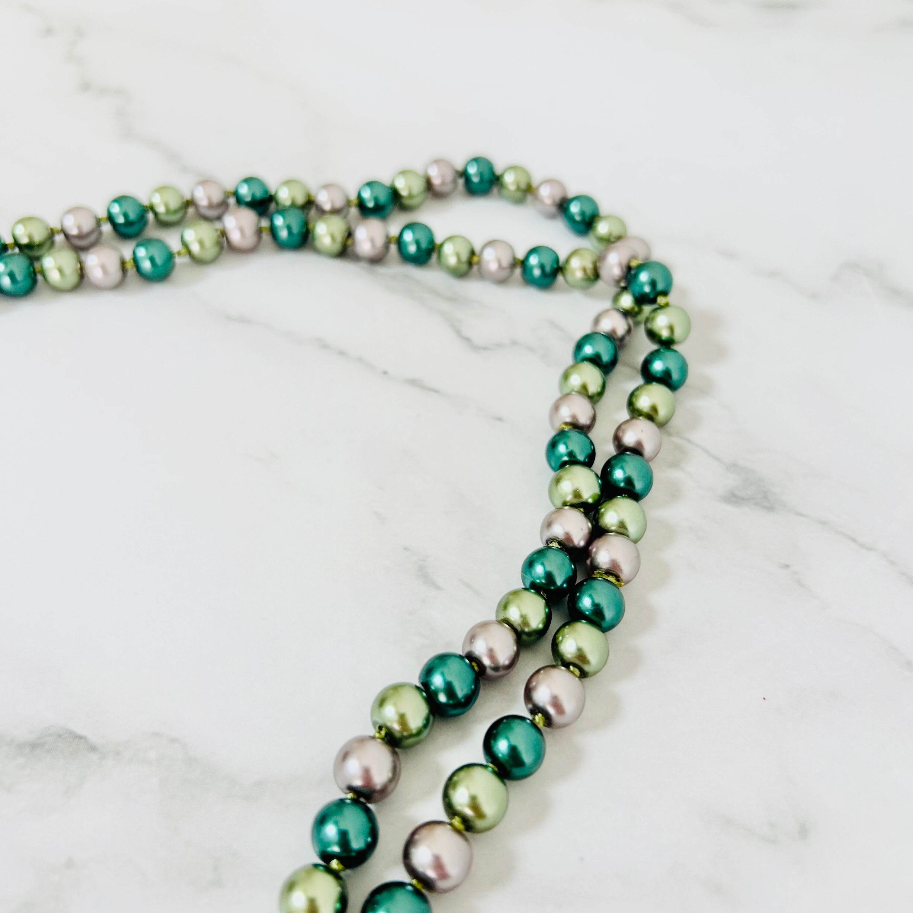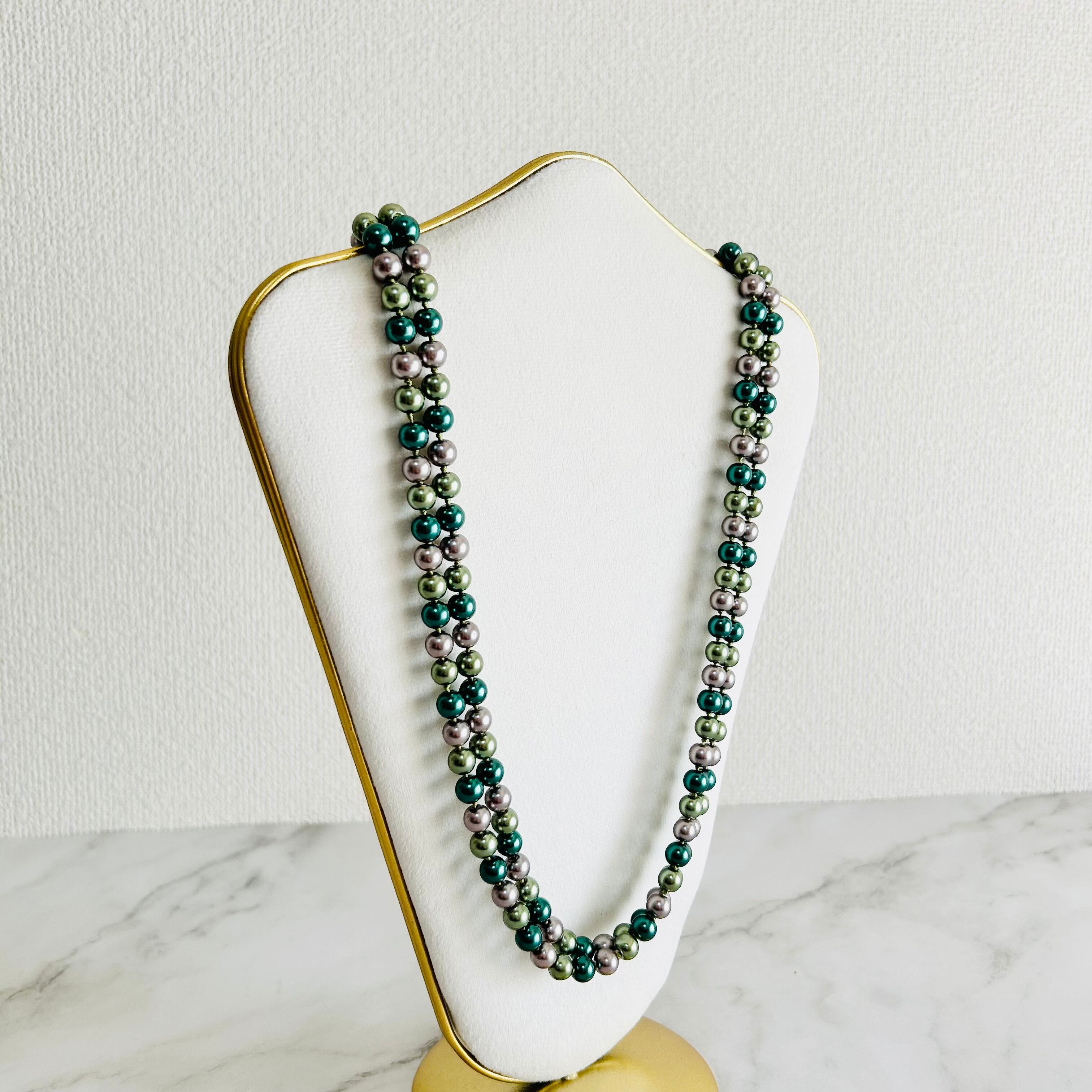 グリーン、ライトグリーン、シルバーグレーカラーのロングネックレスです。