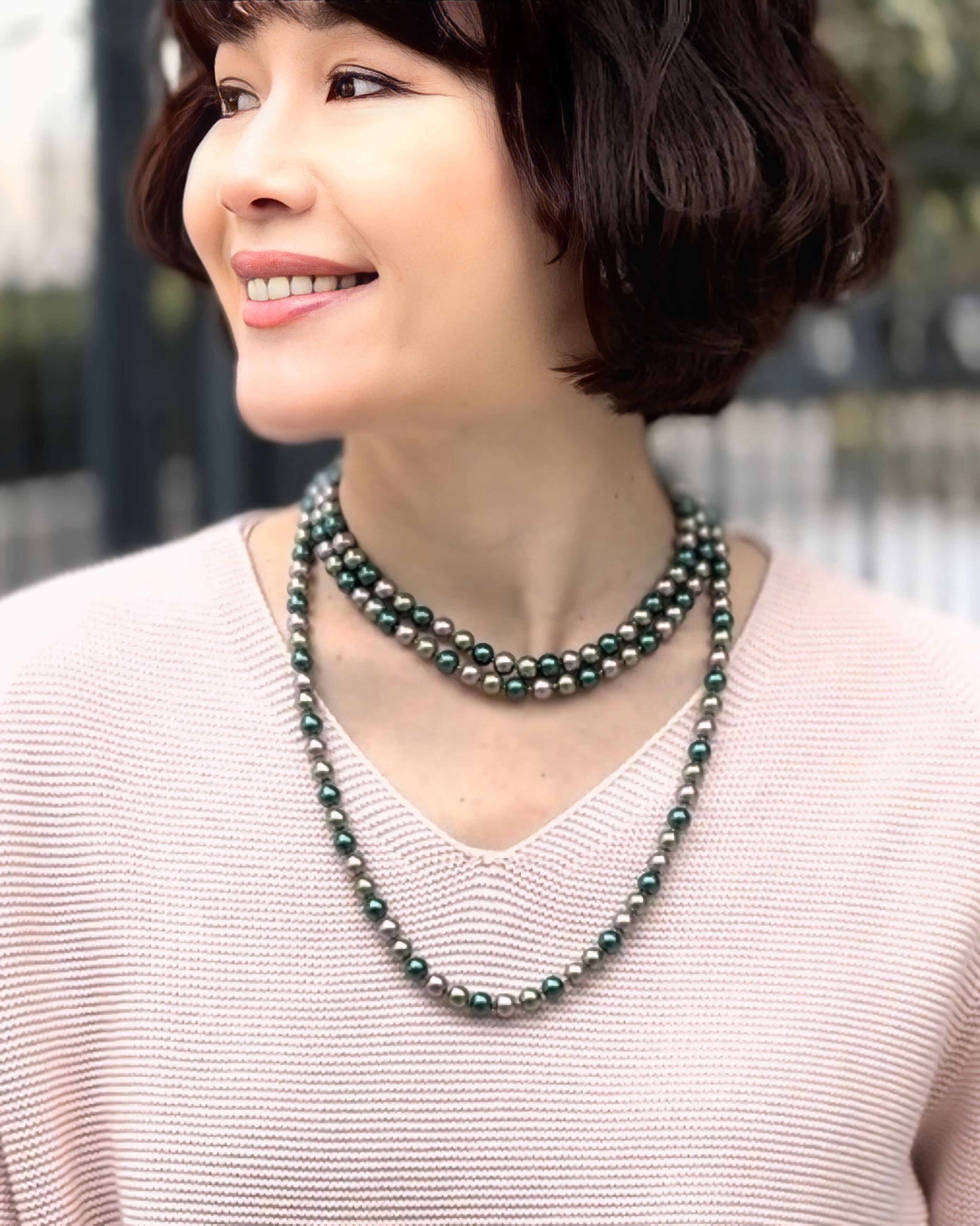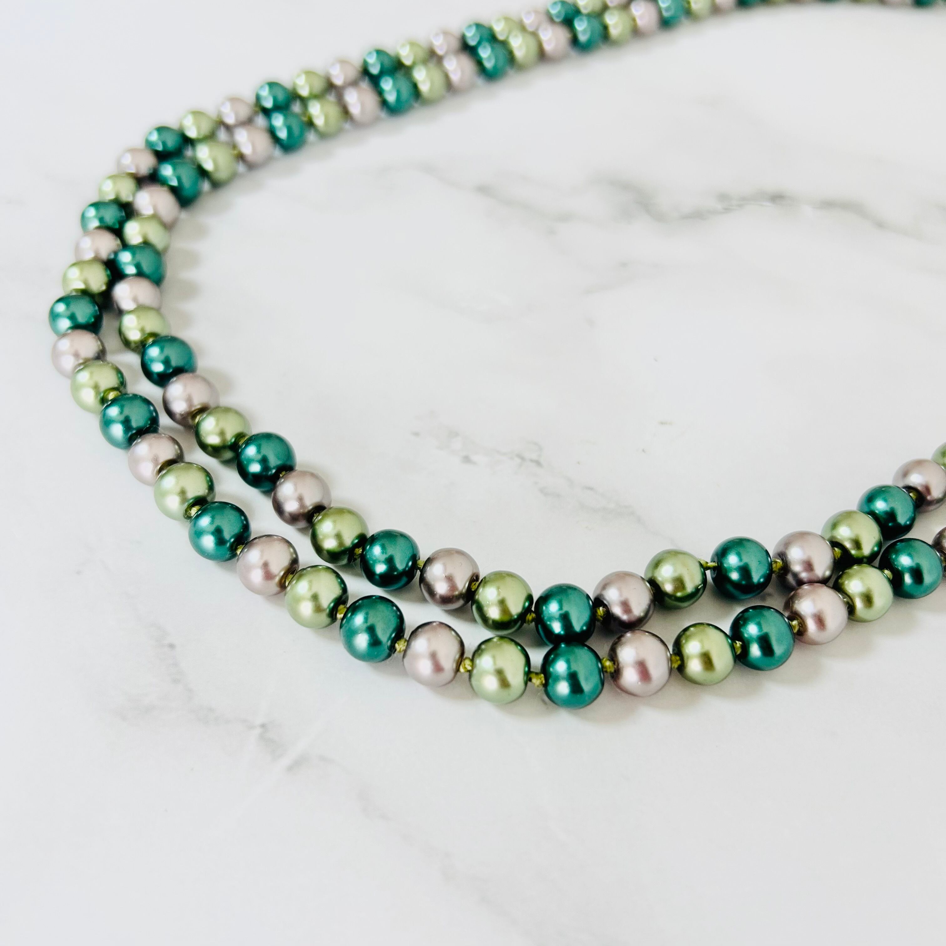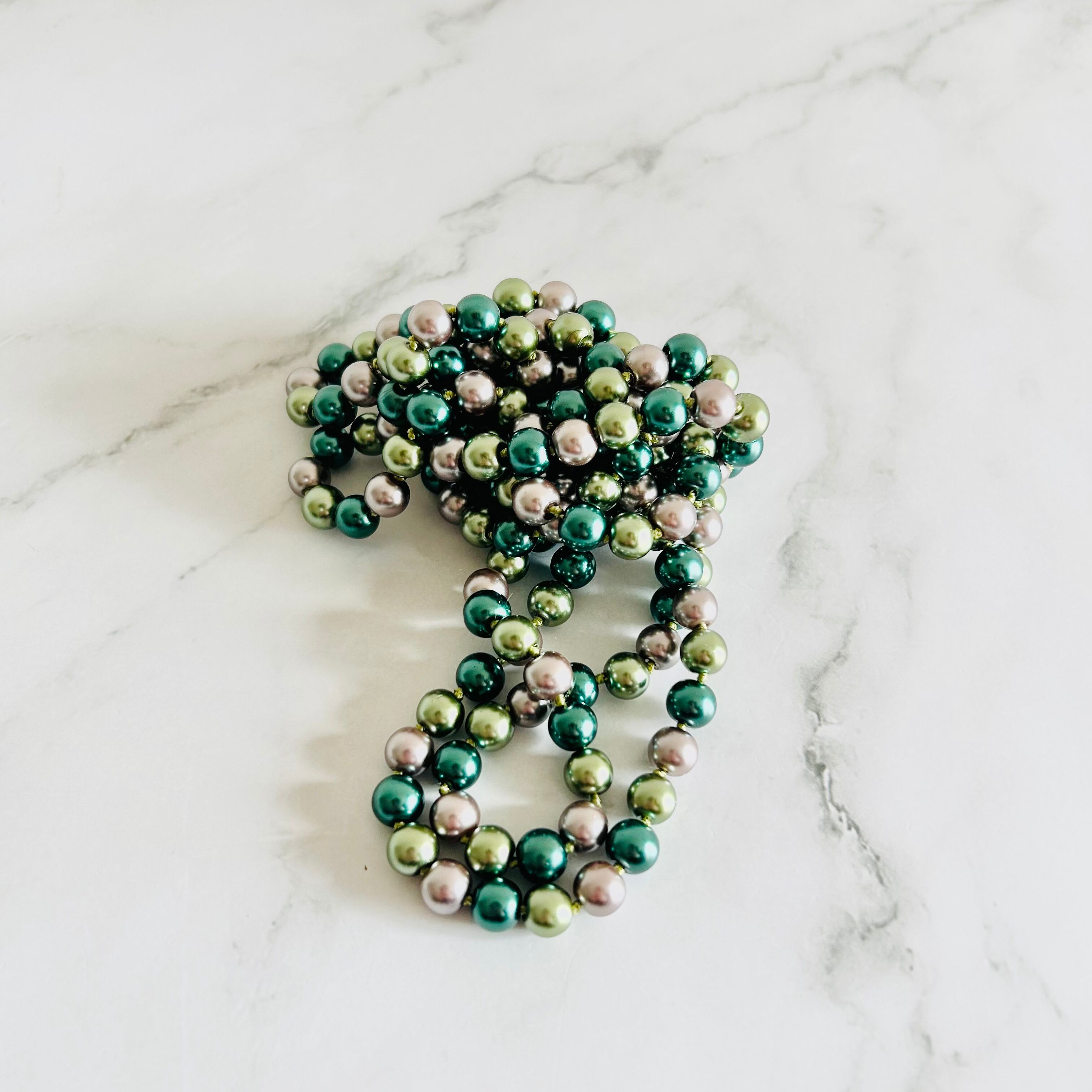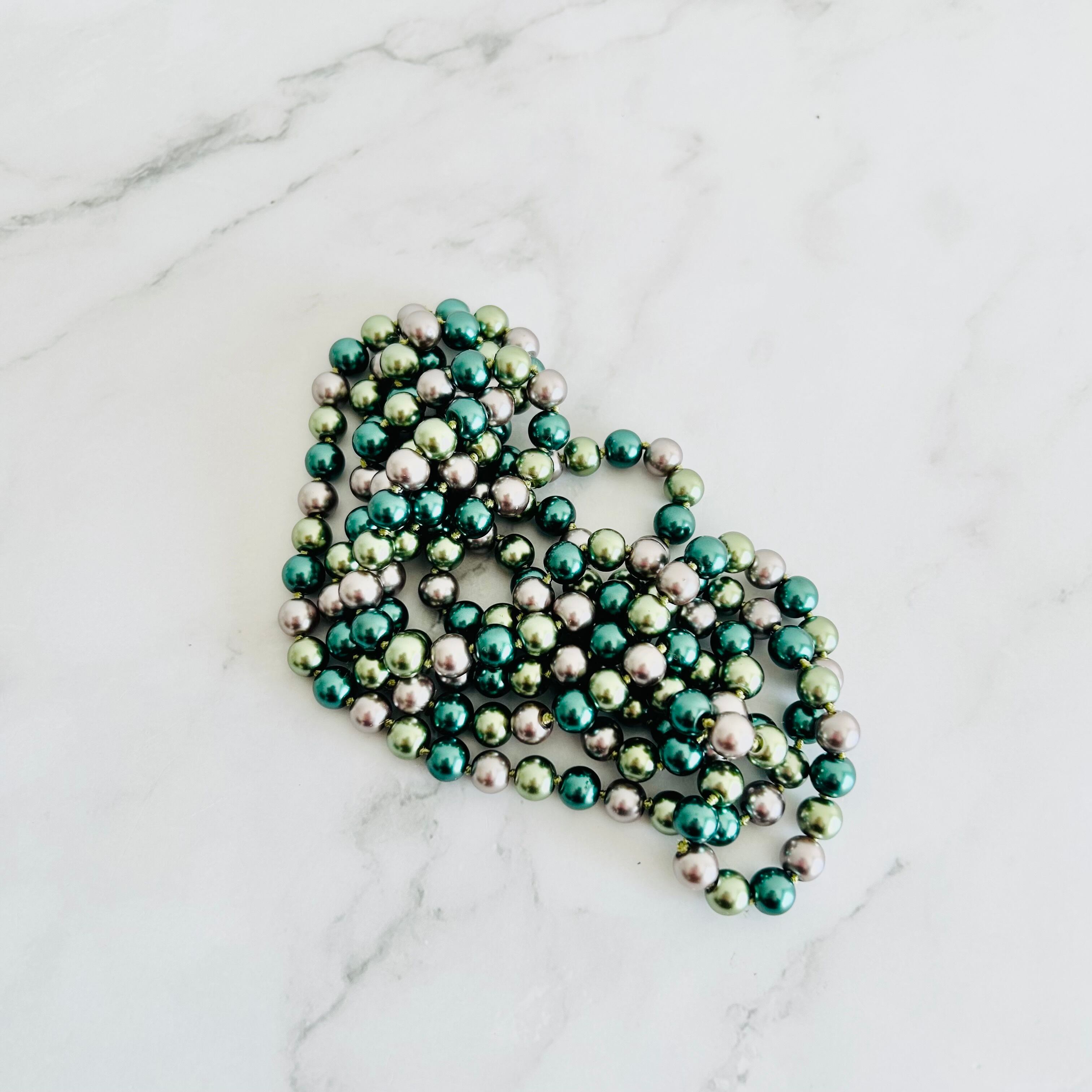 グリーン、ライトグリーン、シルバーグレーカラーのロングネックレスです。