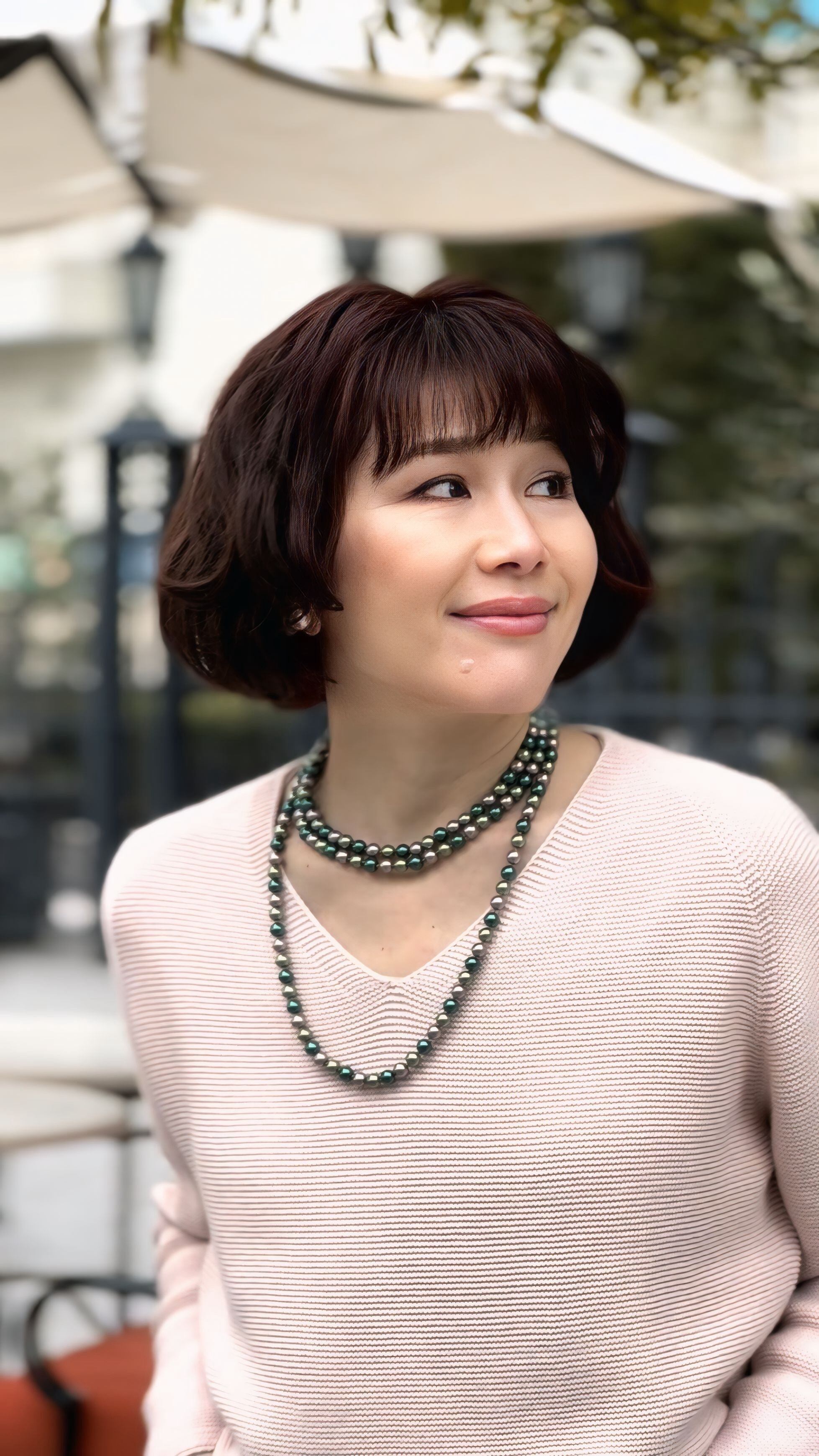 2重、3重にして活用できるロングタイプのデザインで首元にシックな輝きを加えてくれます⭐︎