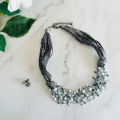 ブルーグレー✖️ブラックラメカラーのネックレスです。