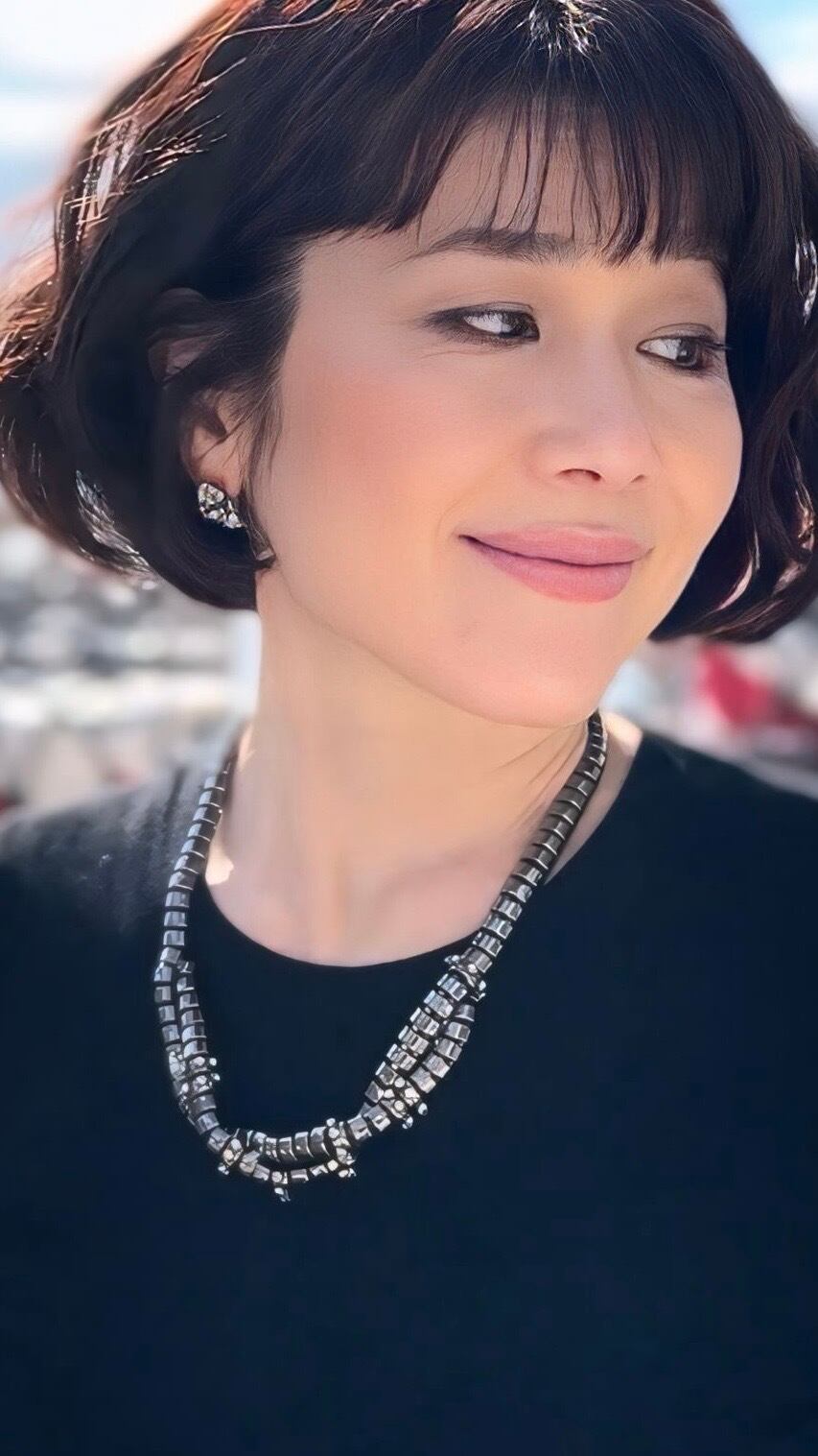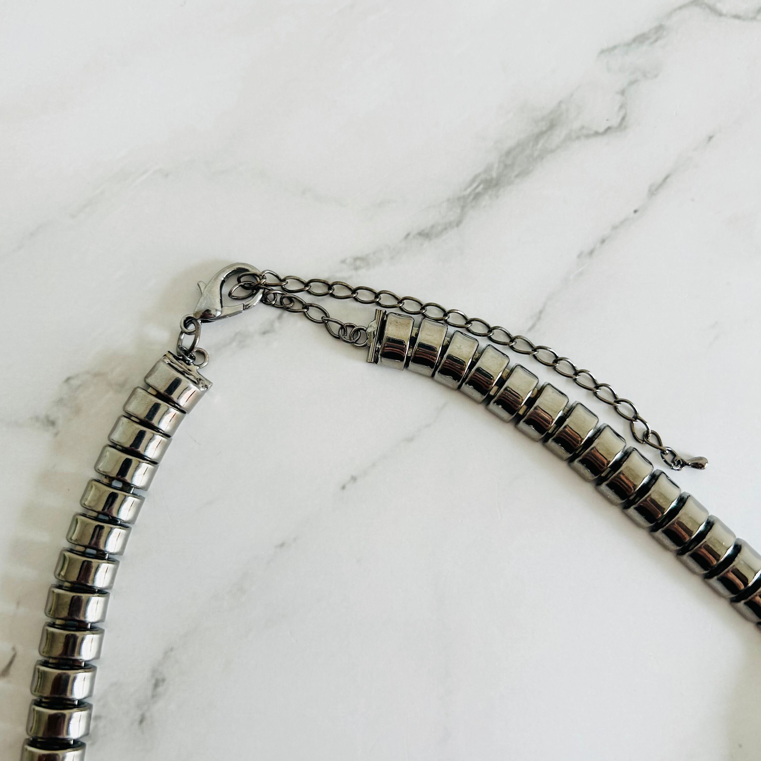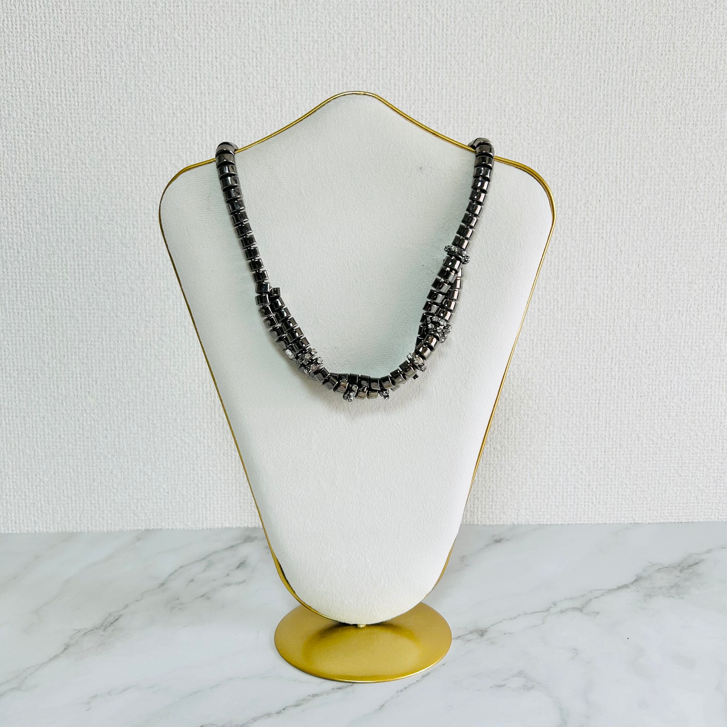 クリスタル✖️ブラックメタルカラーのネックレスです。