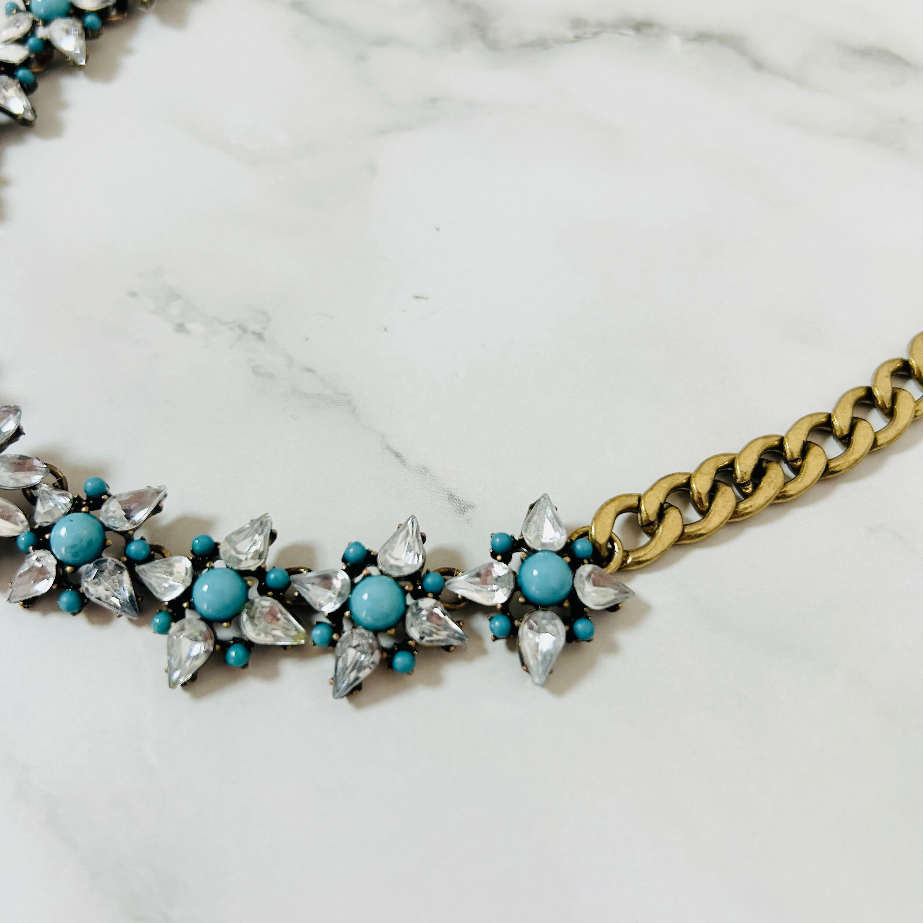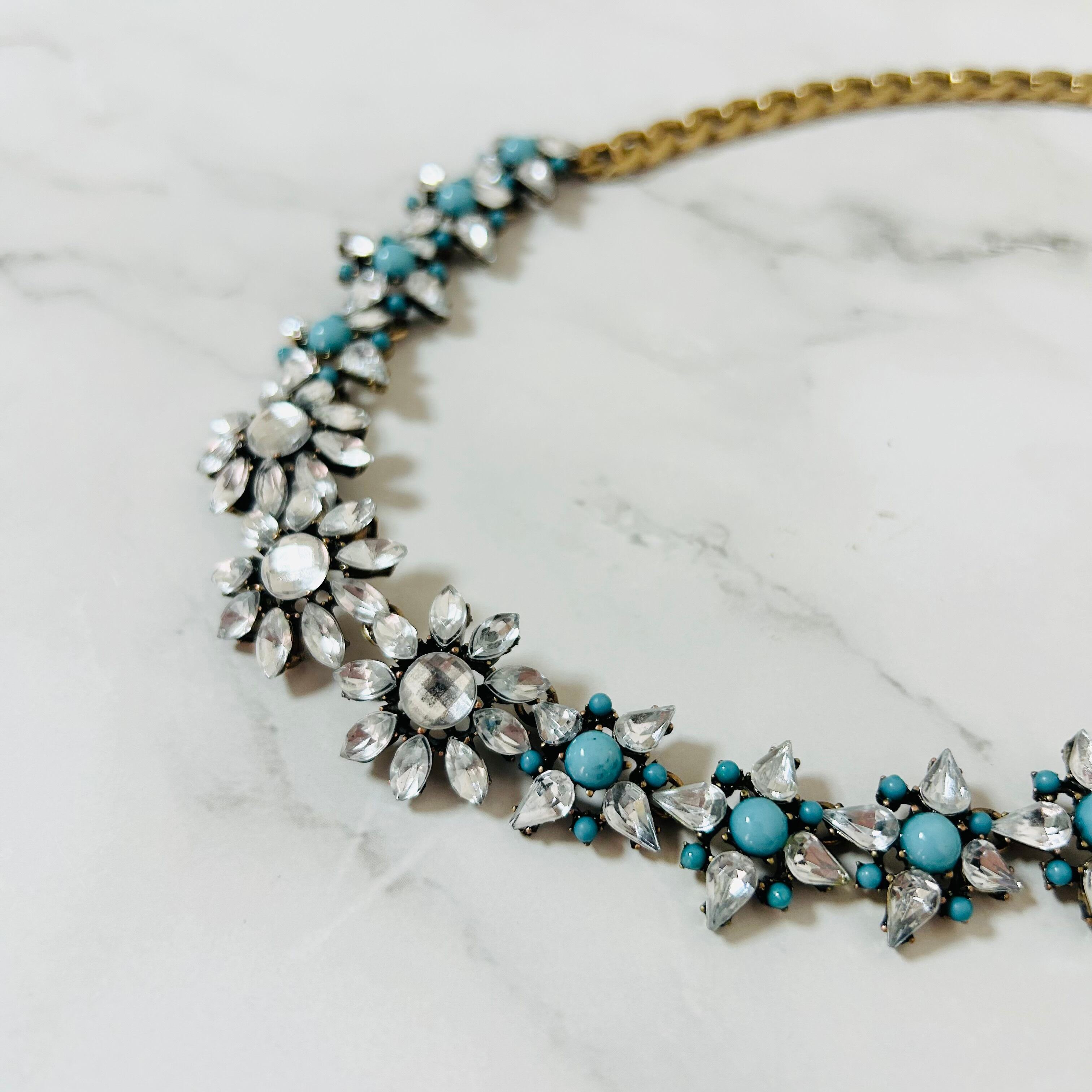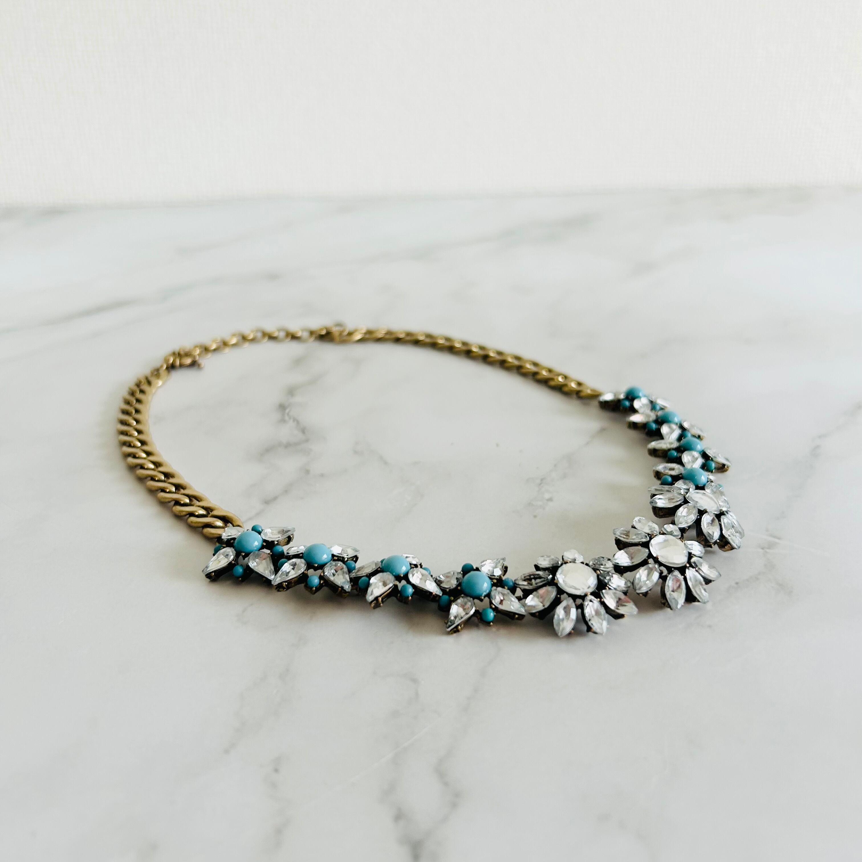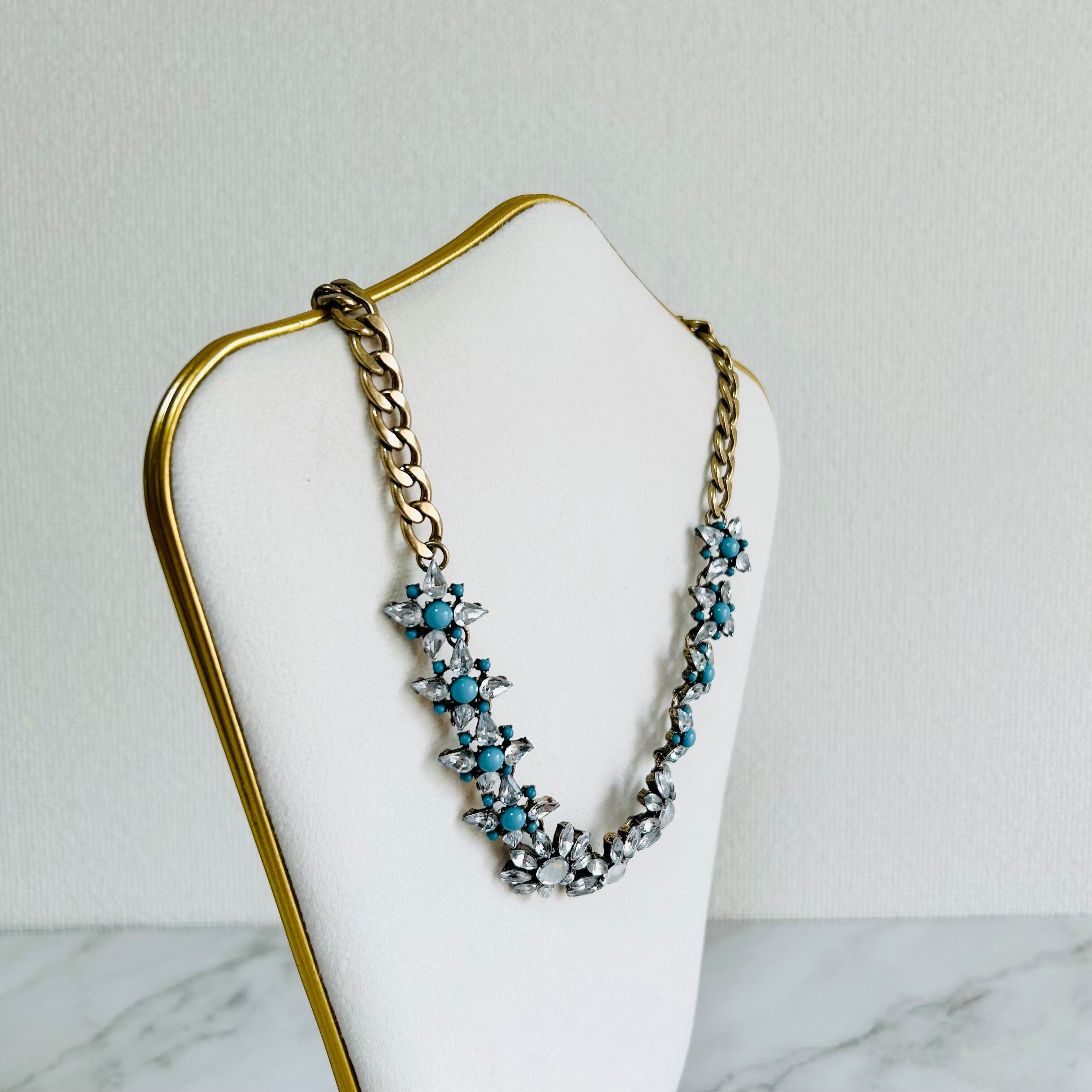 ライトブルー、クリスタル✖️アンティークゴールドカラーのネックレスです。