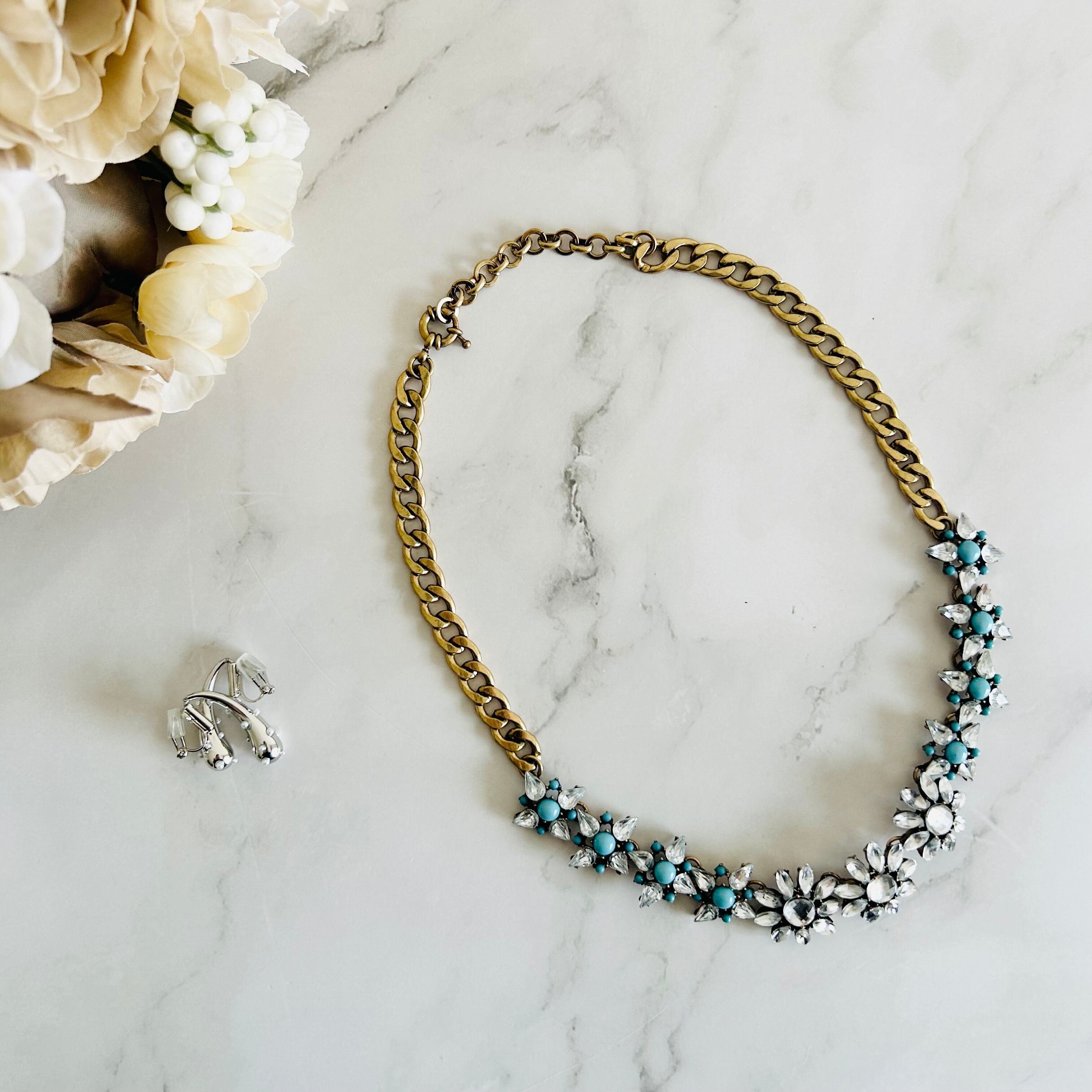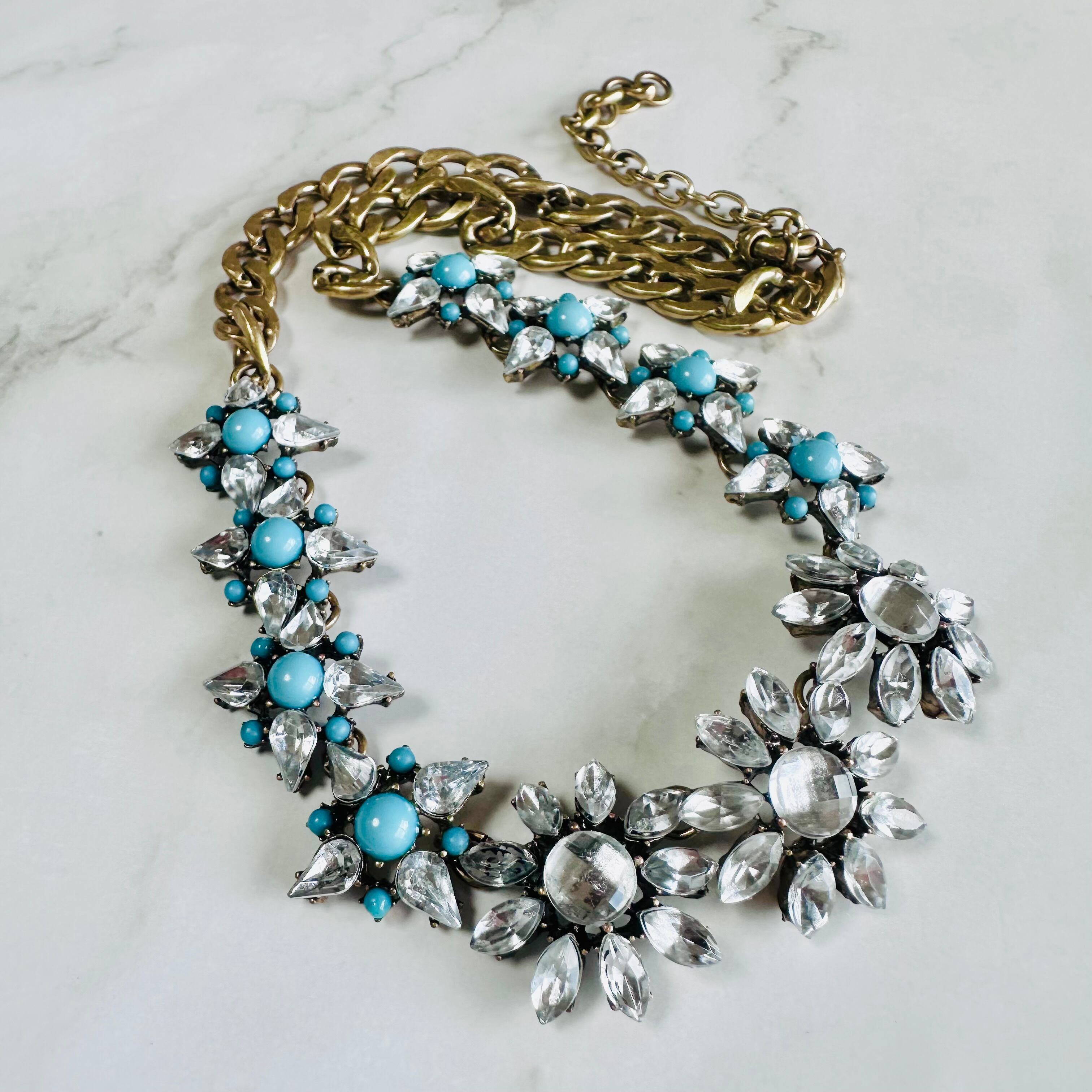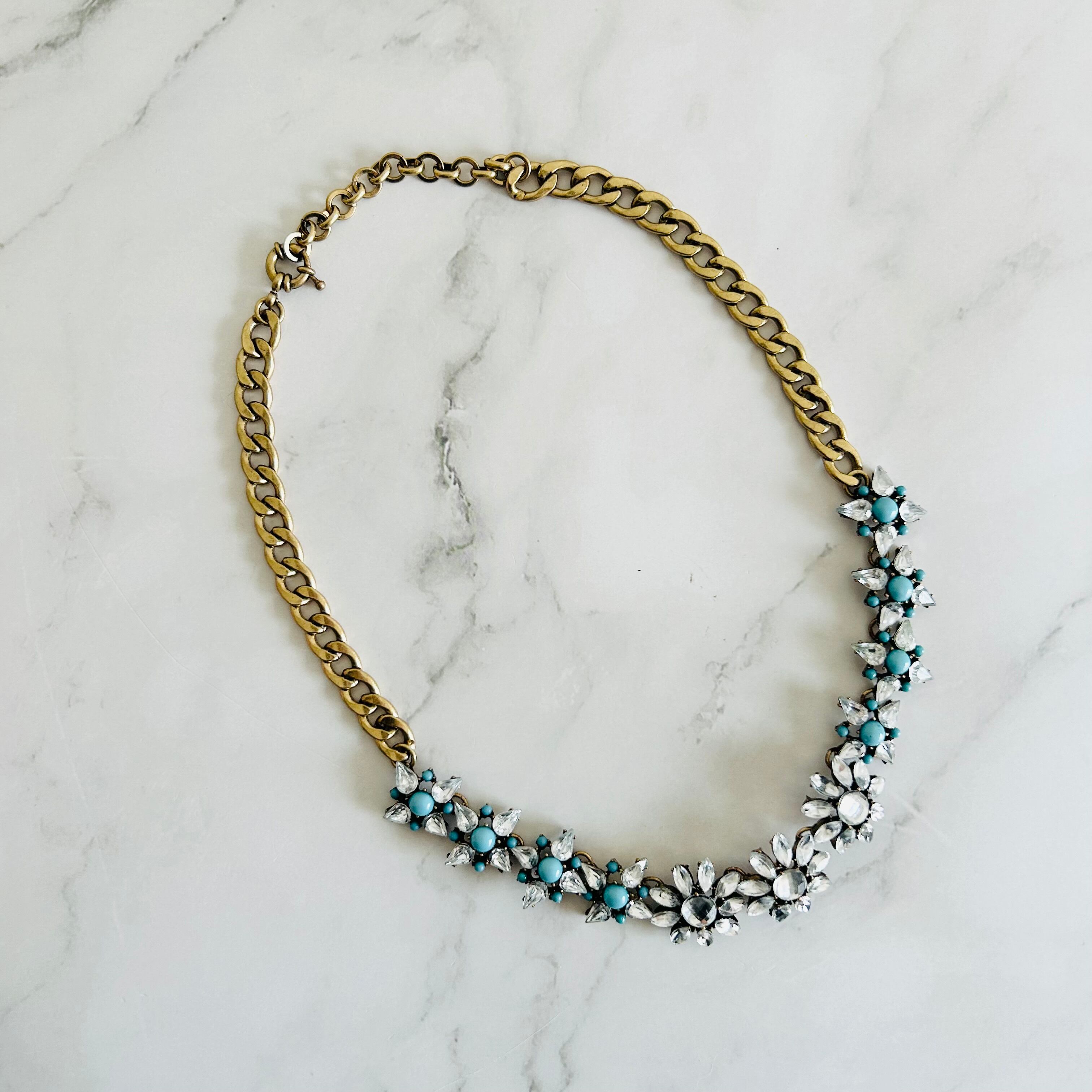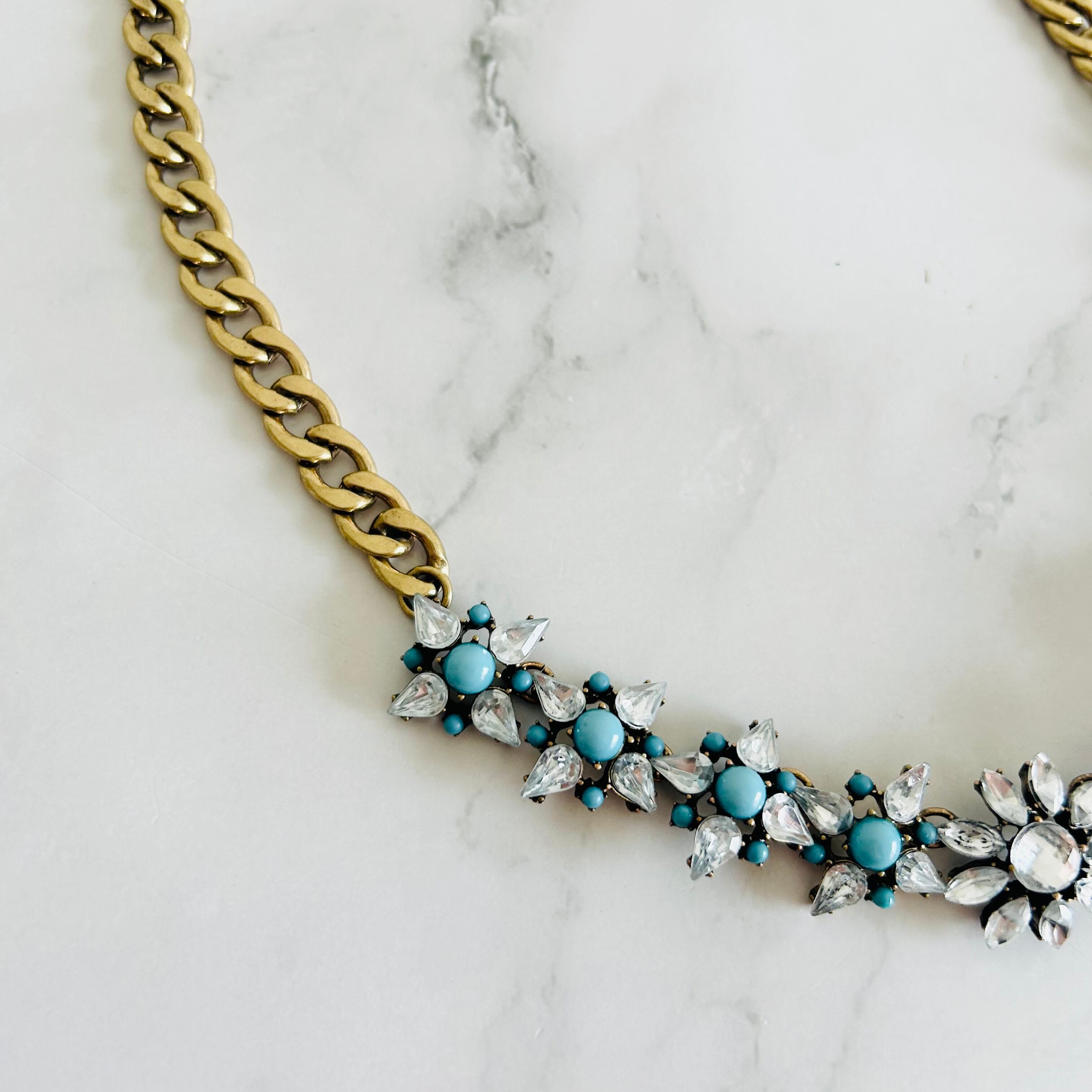 ライトブルー、クリスタル✖️アンティークゴールドカラーのネックレスです。