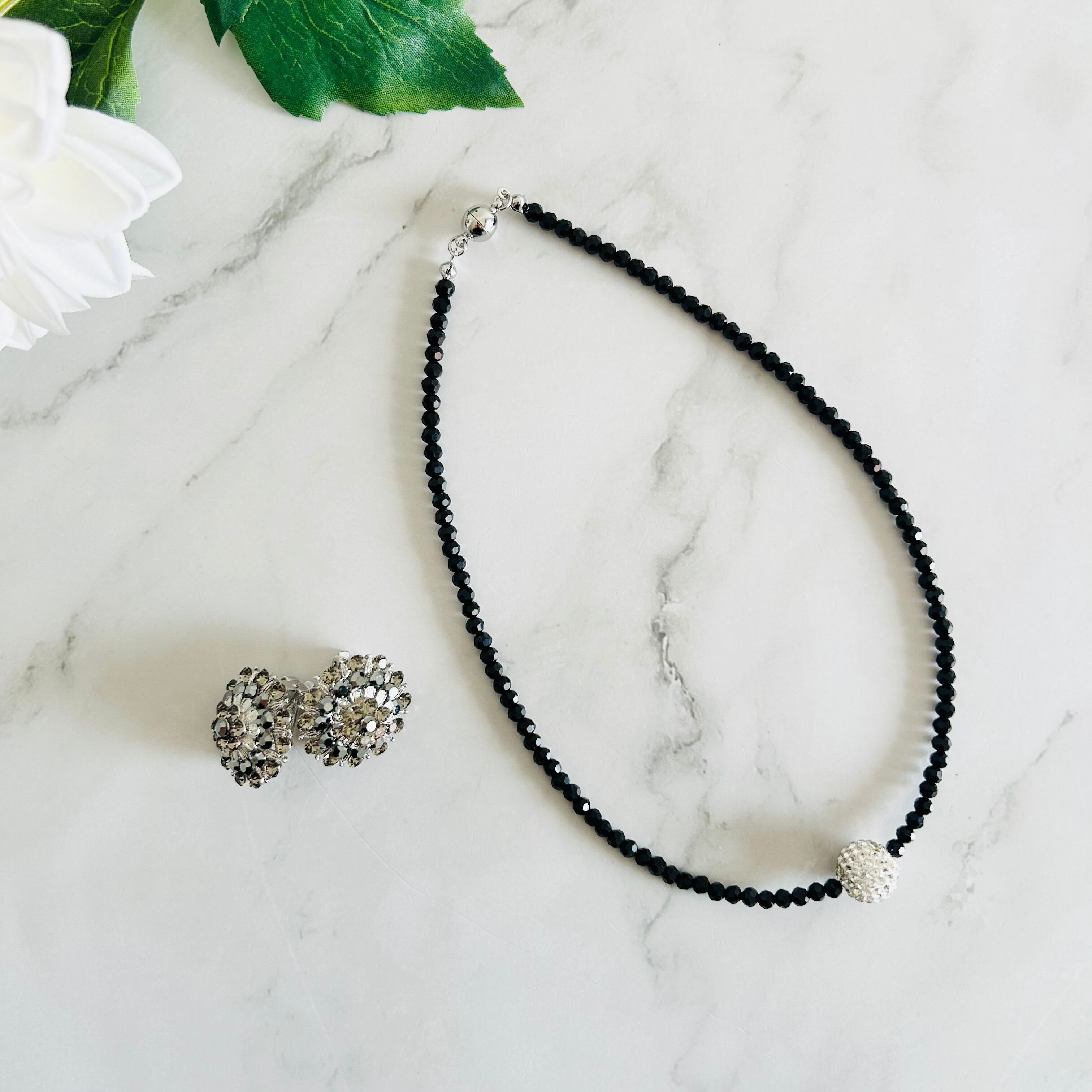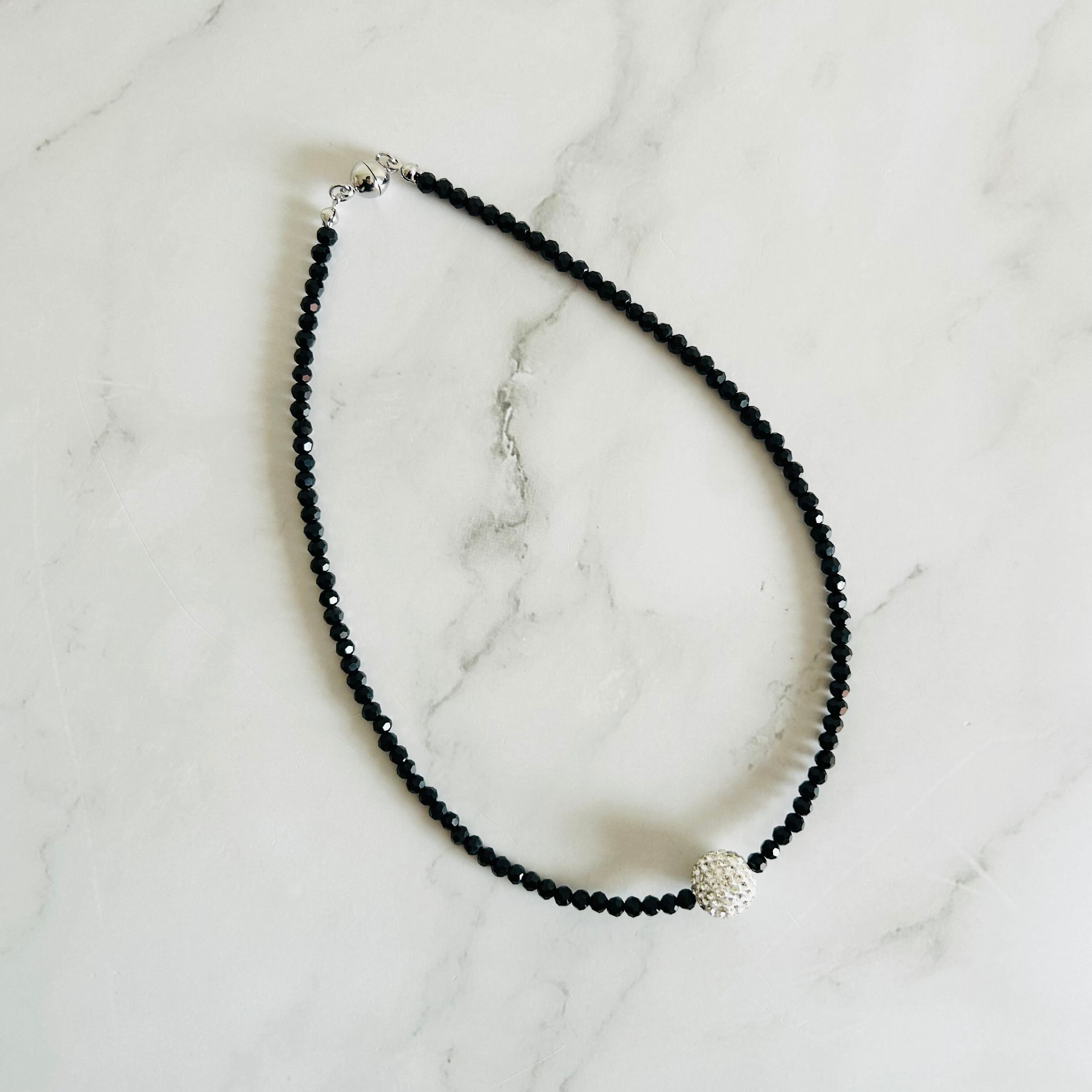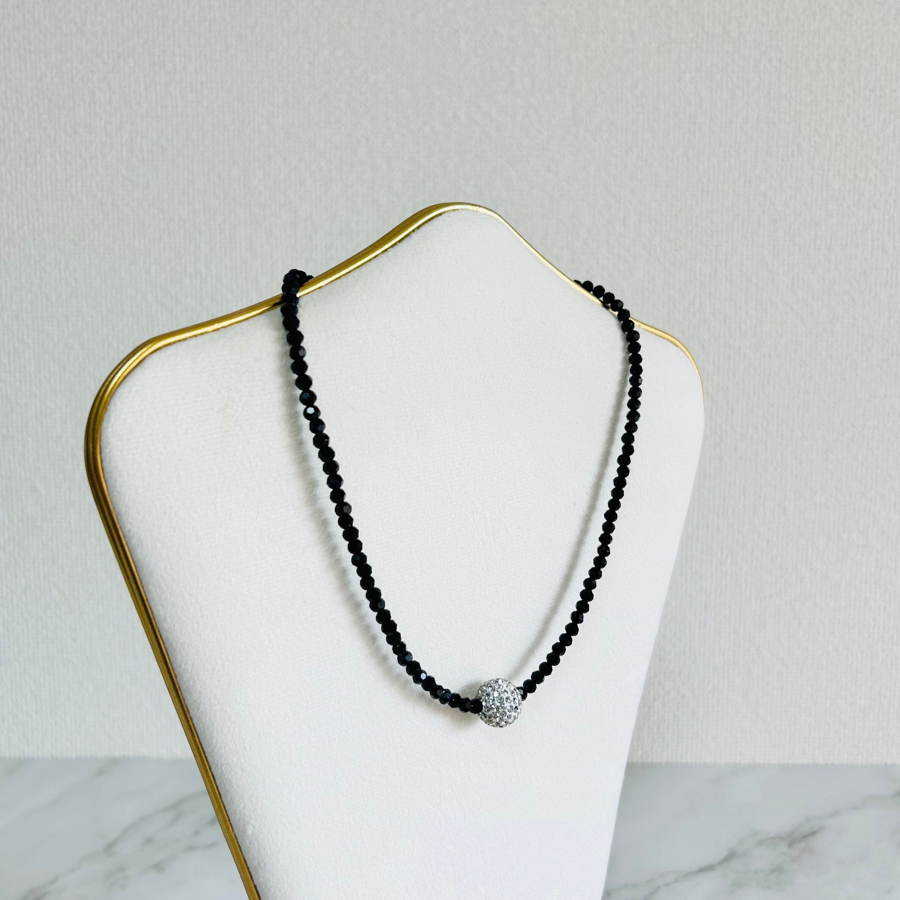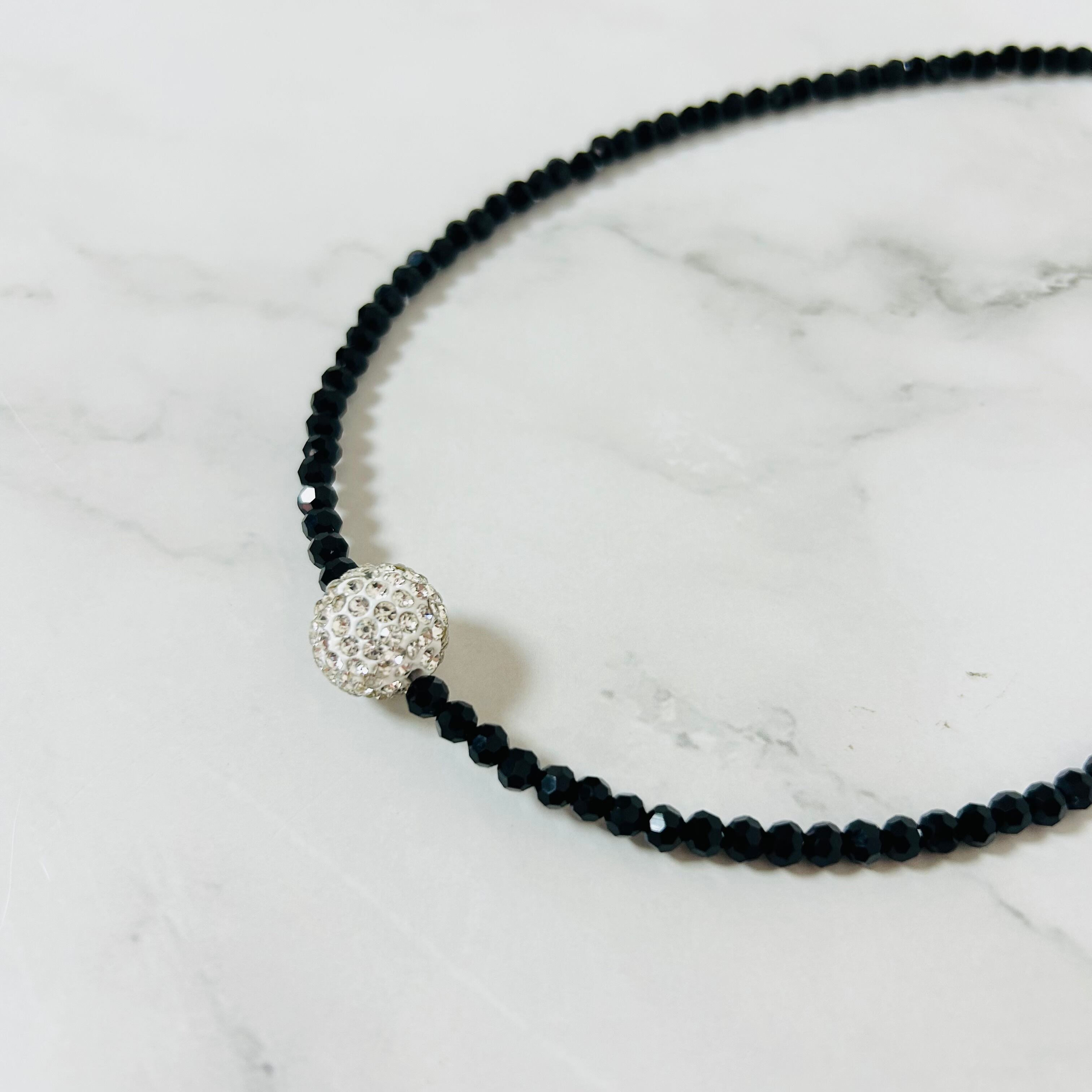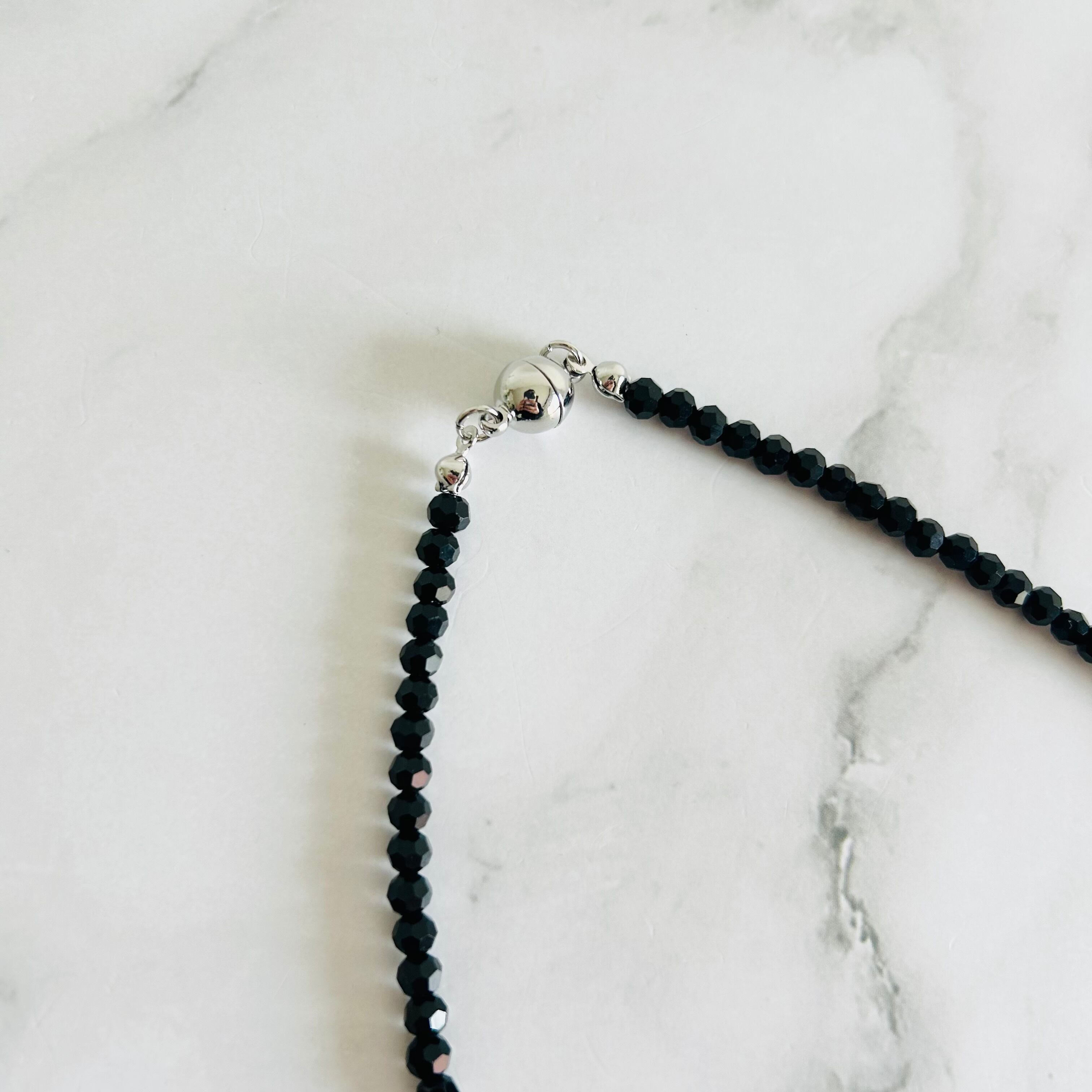 ブラック、クリスタル✖️シルバーカラーのネックレスです。